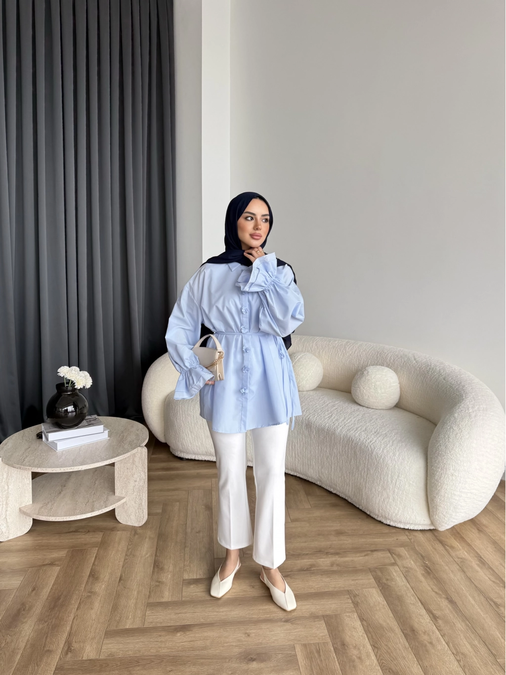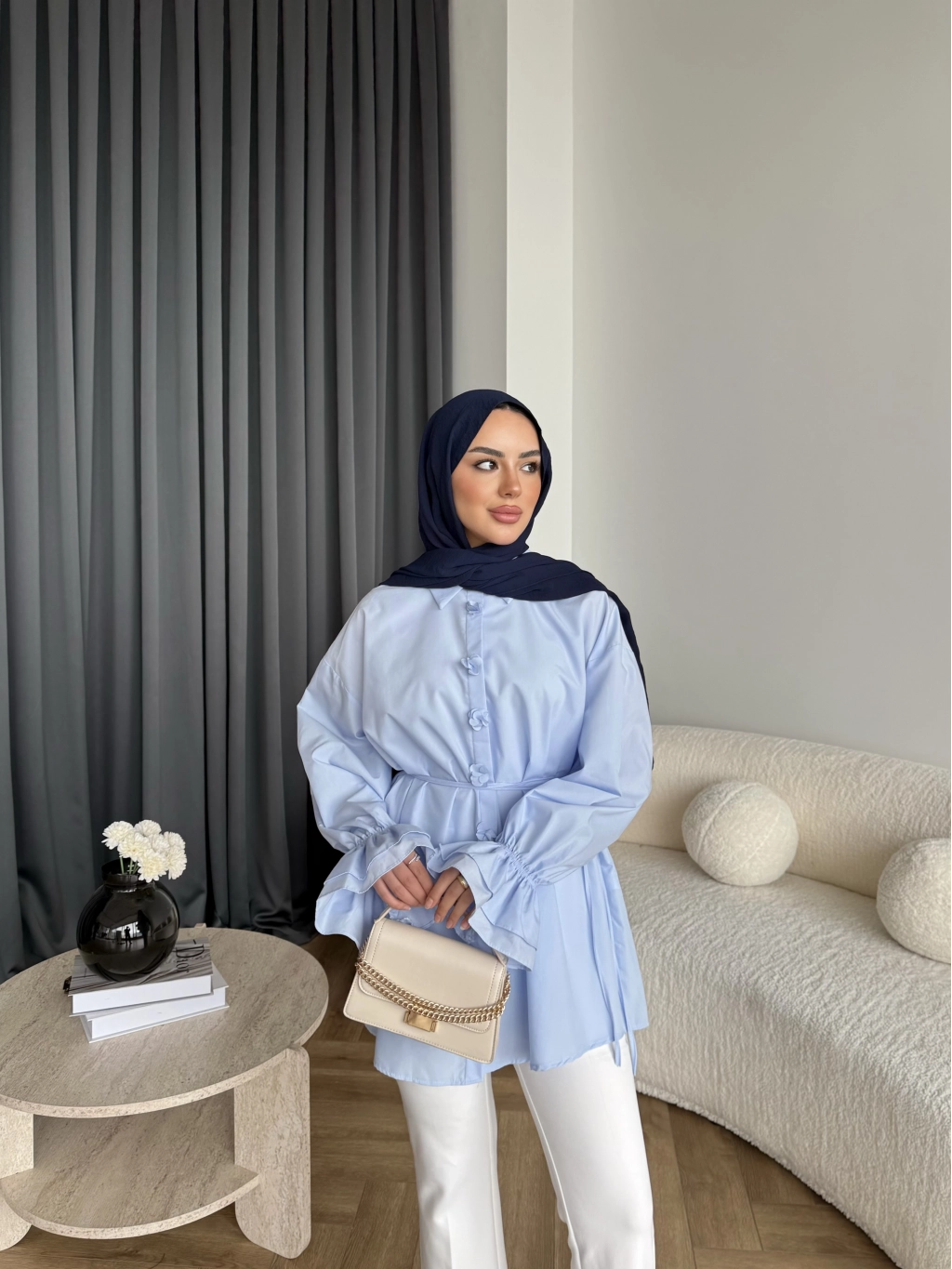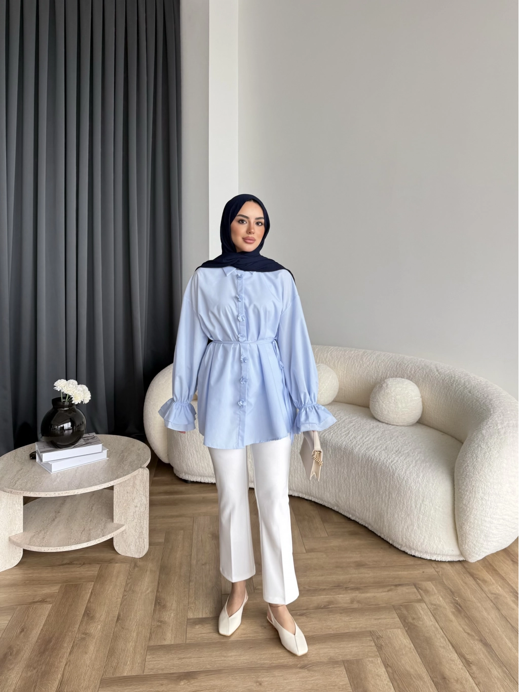 Hen - Sehaa Gül Detay Gömlek - Mavi