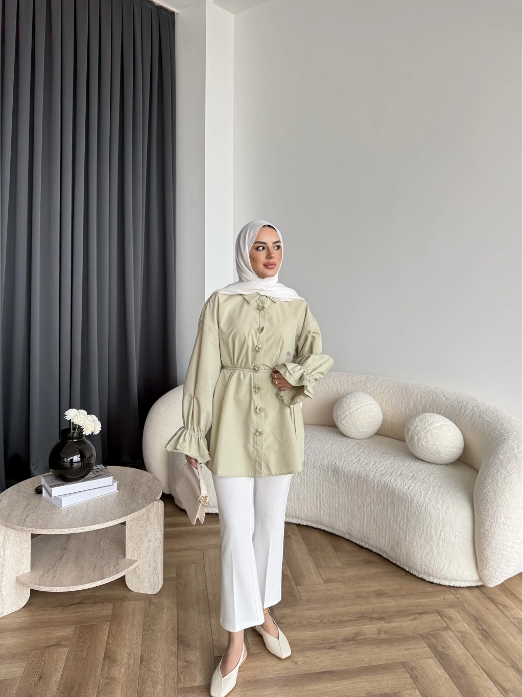 Hen - Sehaa Gül Detay Gömlek - Yeşil