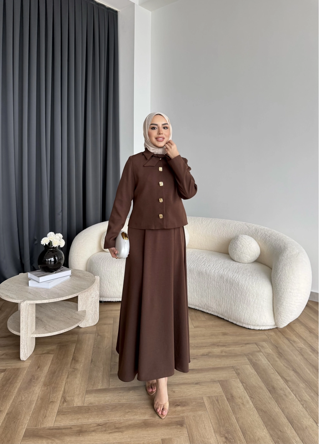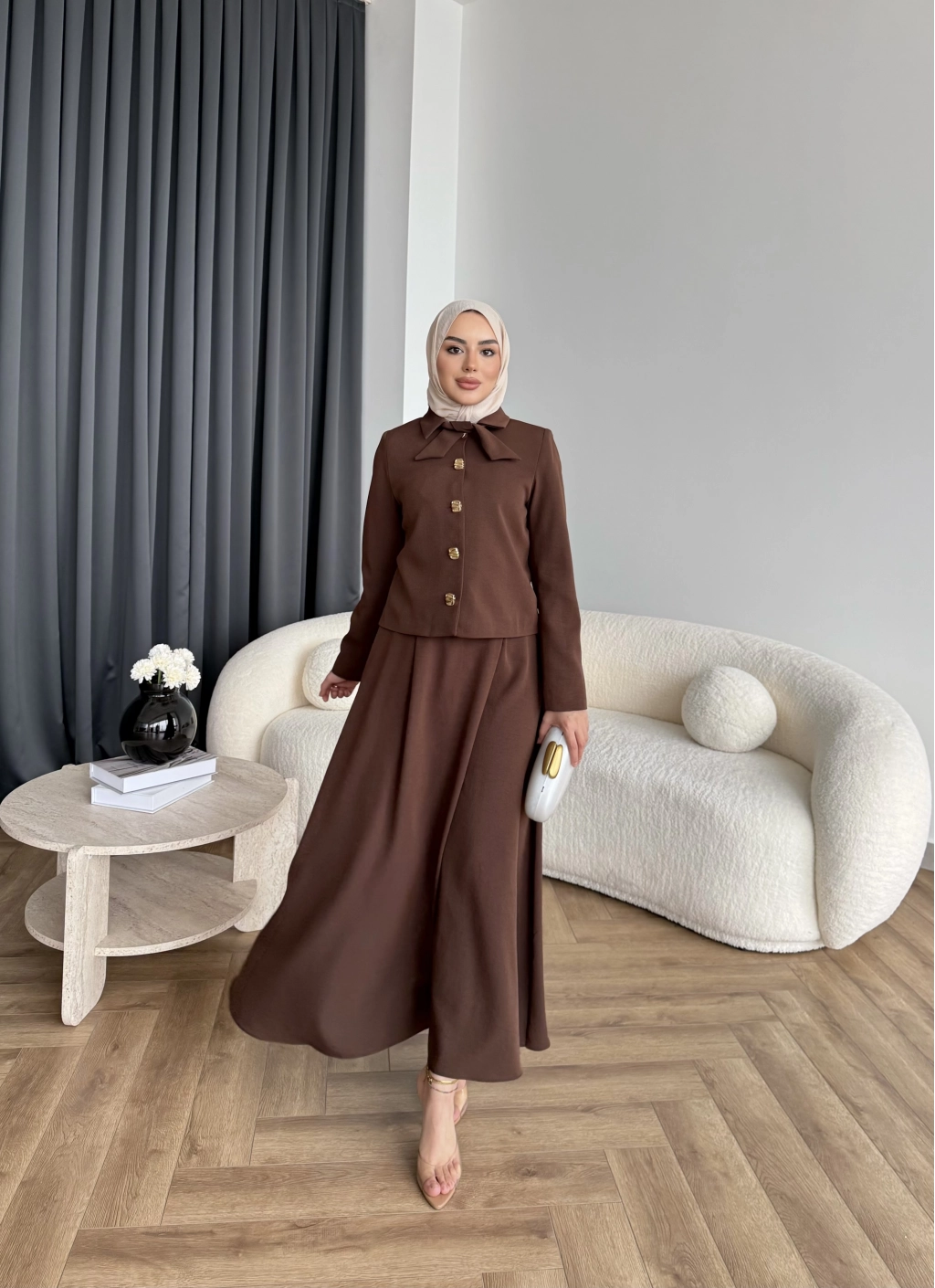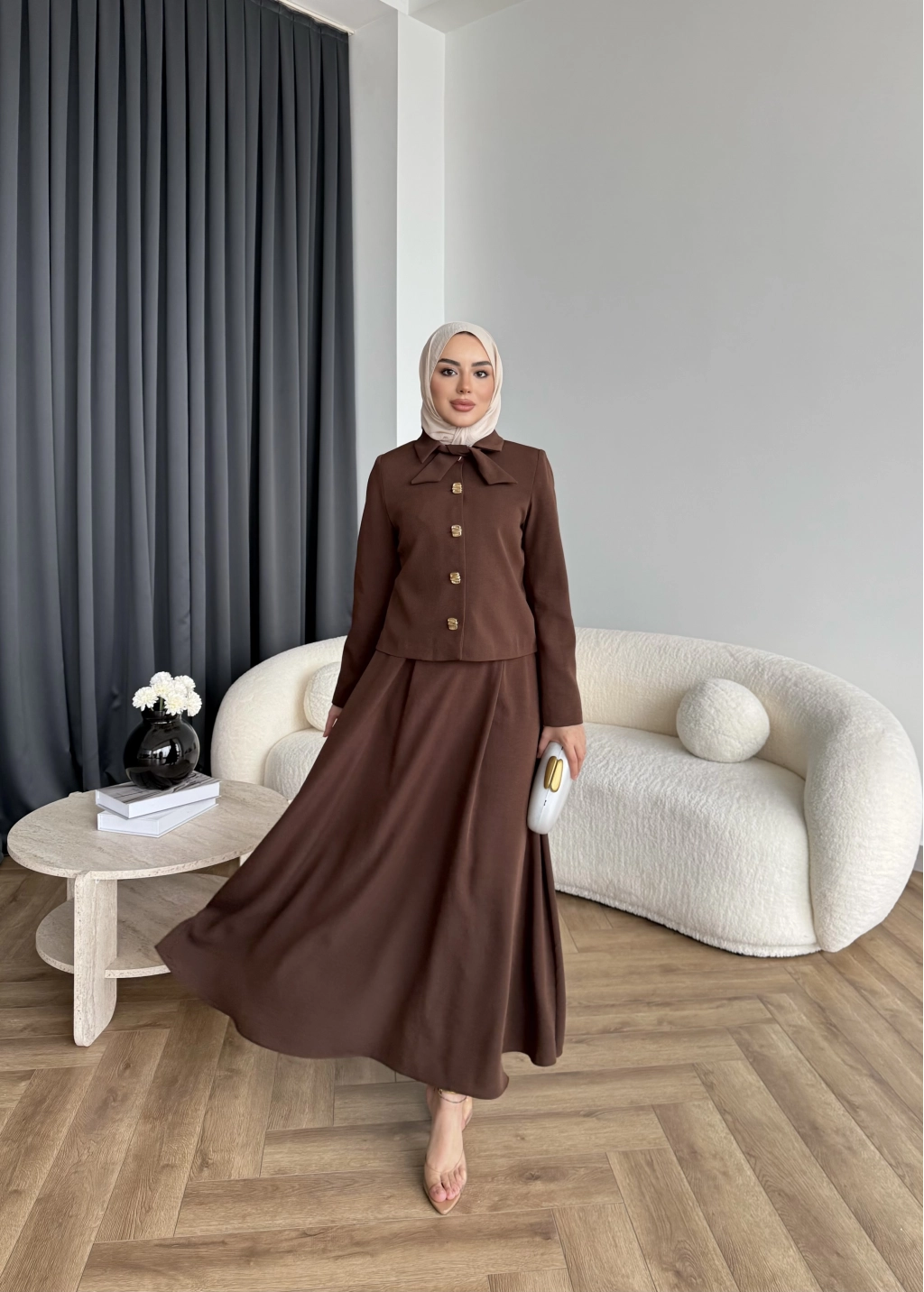 Hen - Visor Fiyonklu Etekli Takım - Kahve