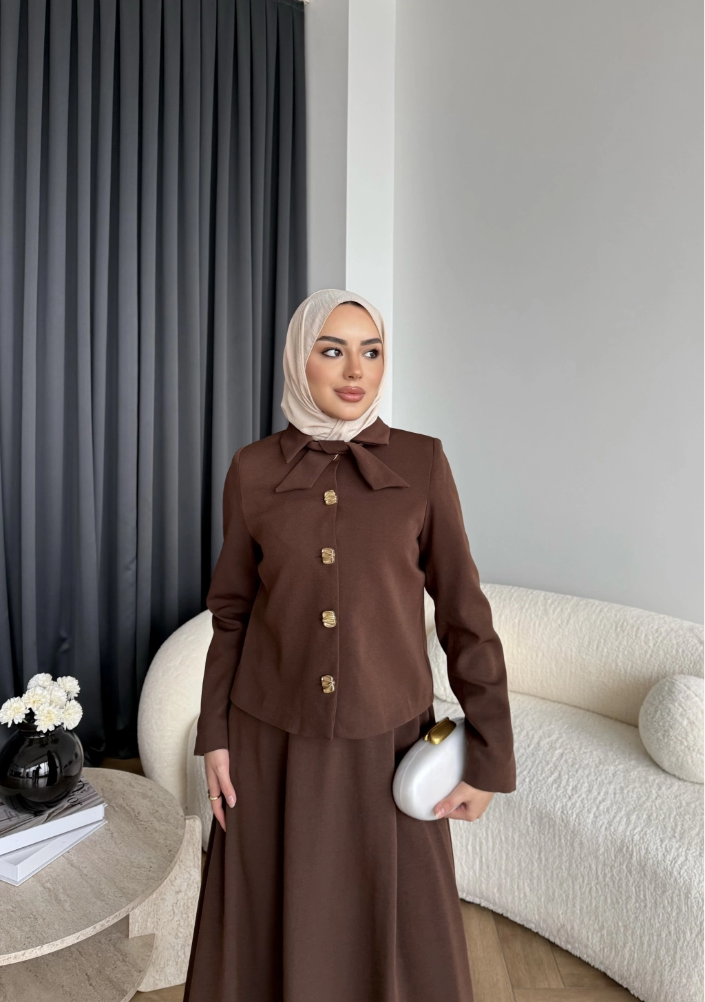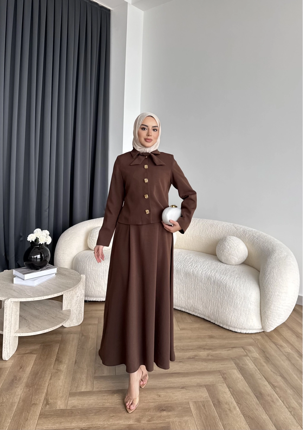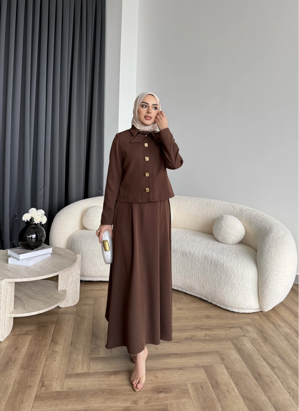 Hen - Visor Fiyonklu Etekli Takım - Kahve