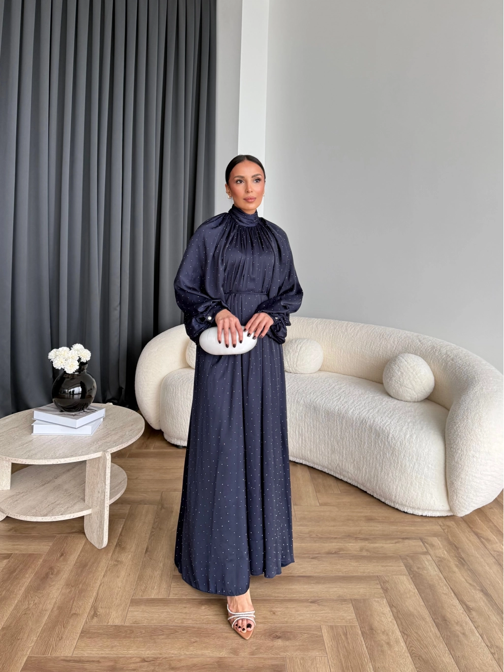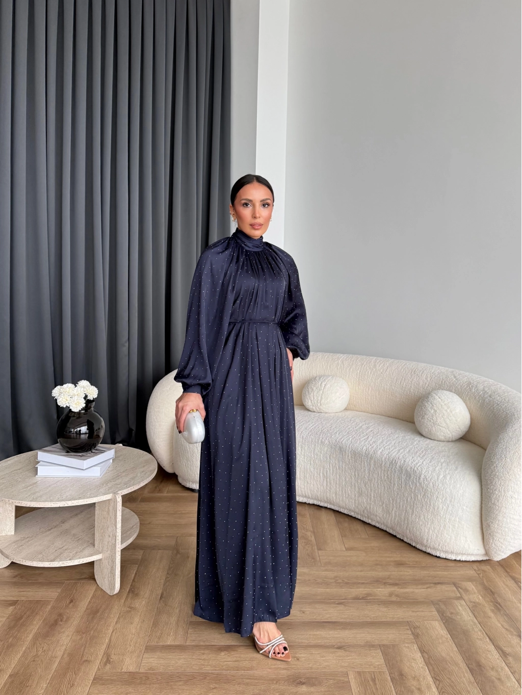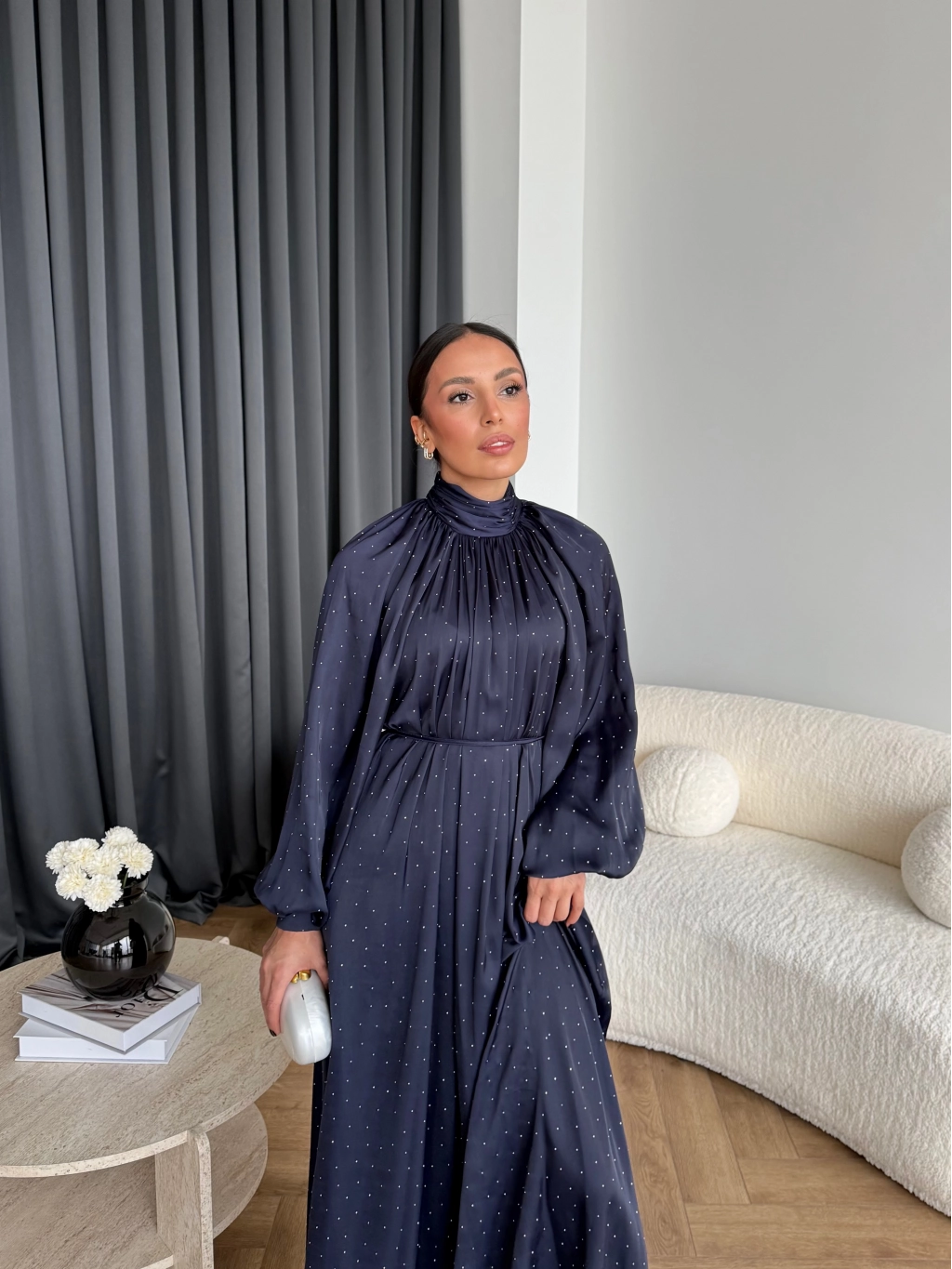 Hew - Gasto Taşlı Saten Elbise - Lacivert