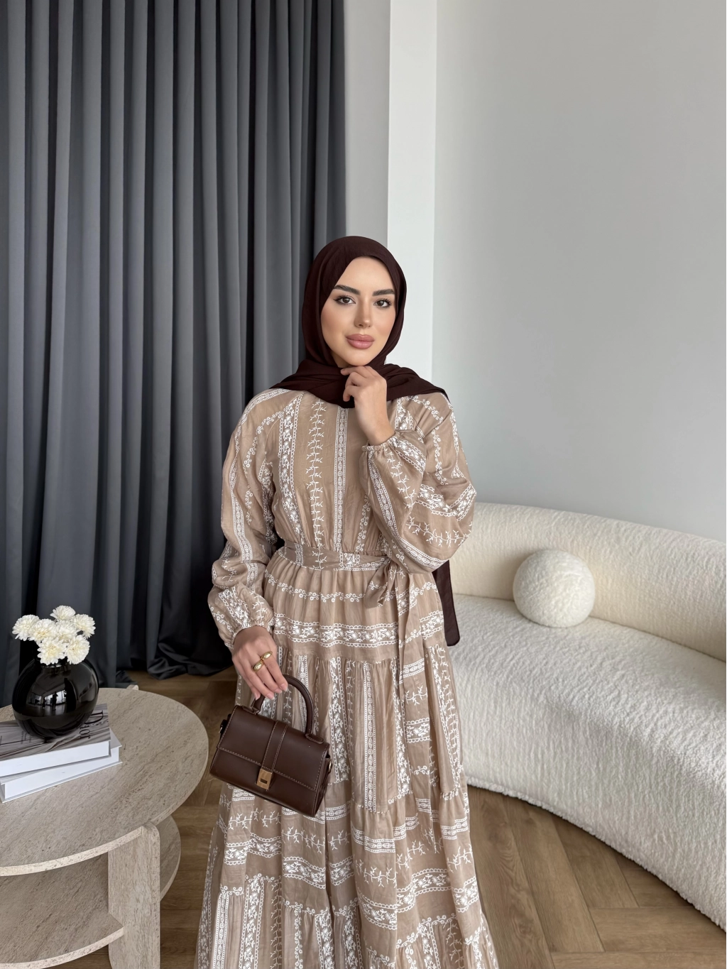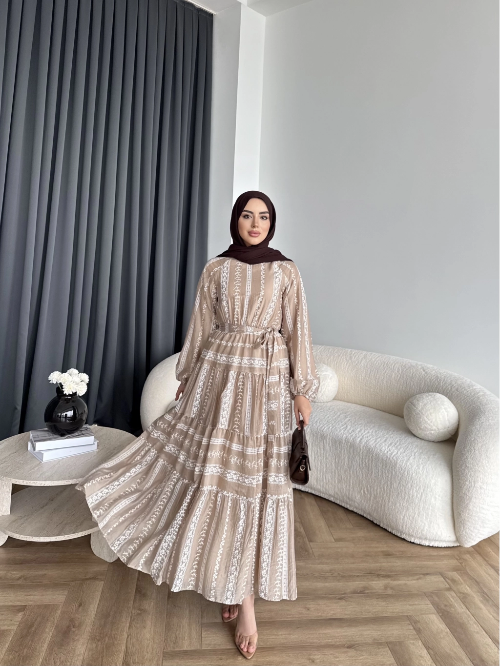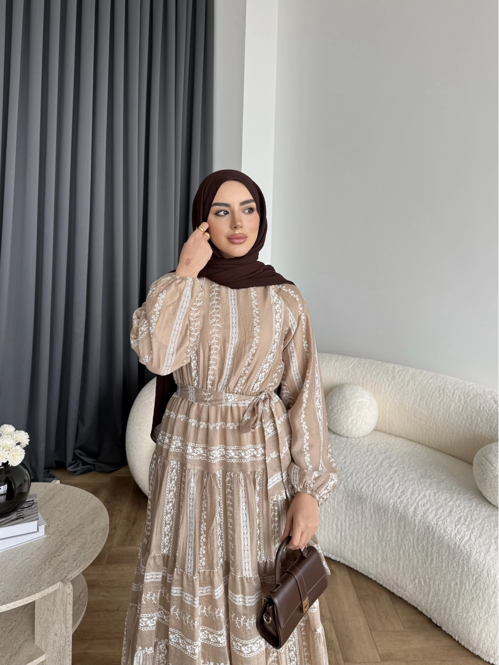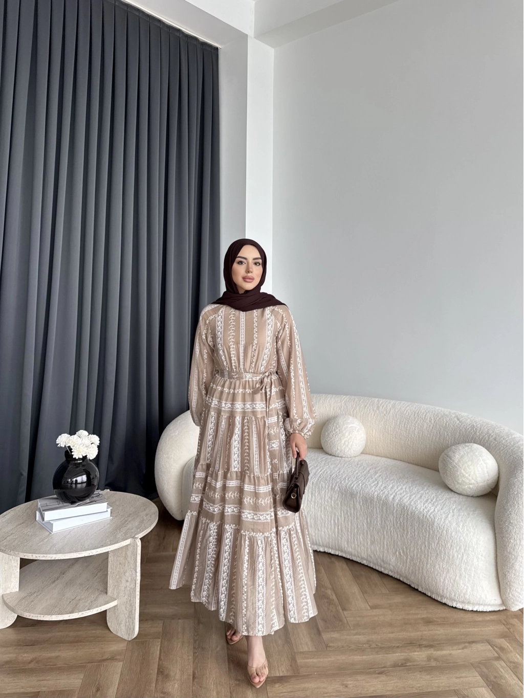 Hew - Warm Bağcıklı Deseneli Elbise - Vizon