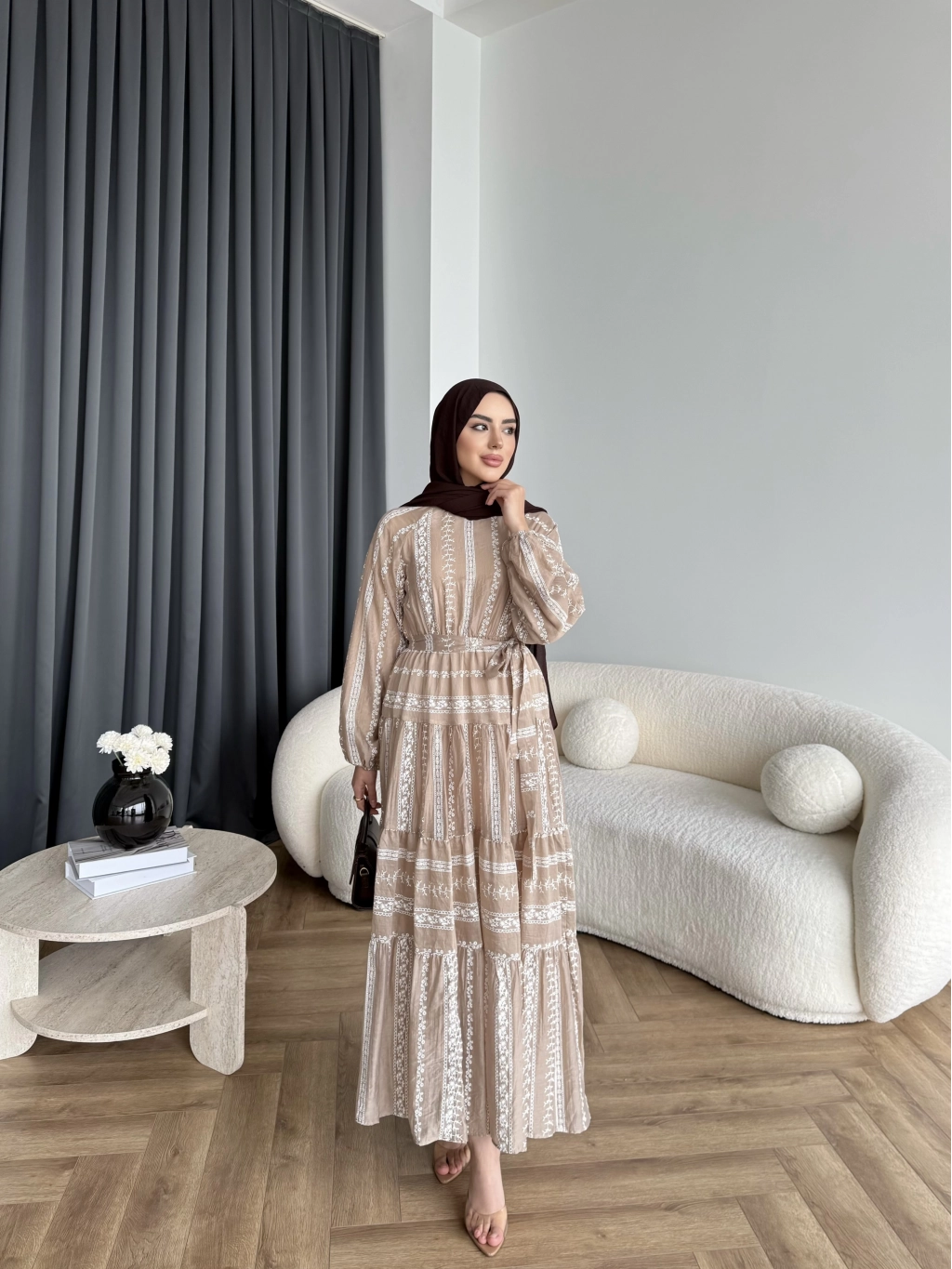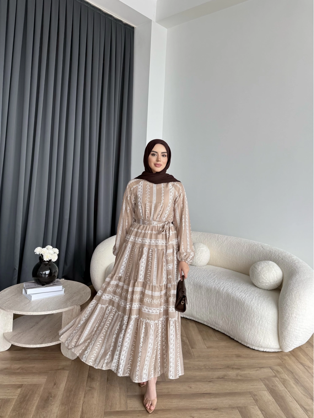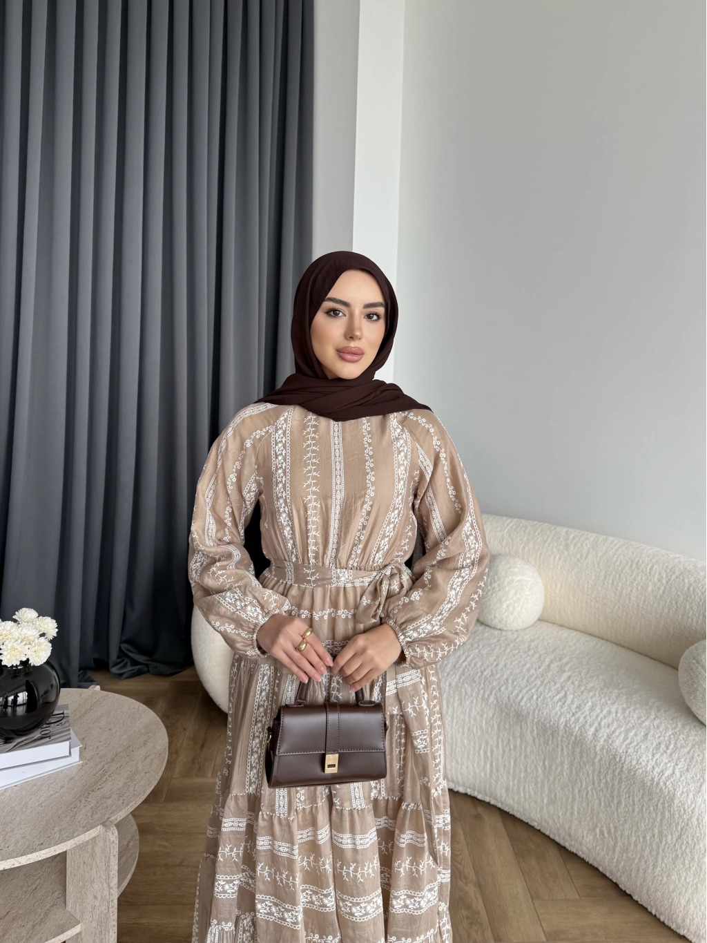 Hew - Warm Bağcıklı Deseneli Elbise - Vizon
