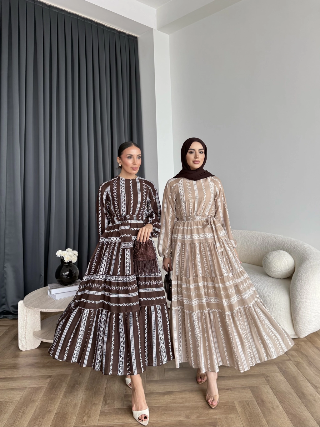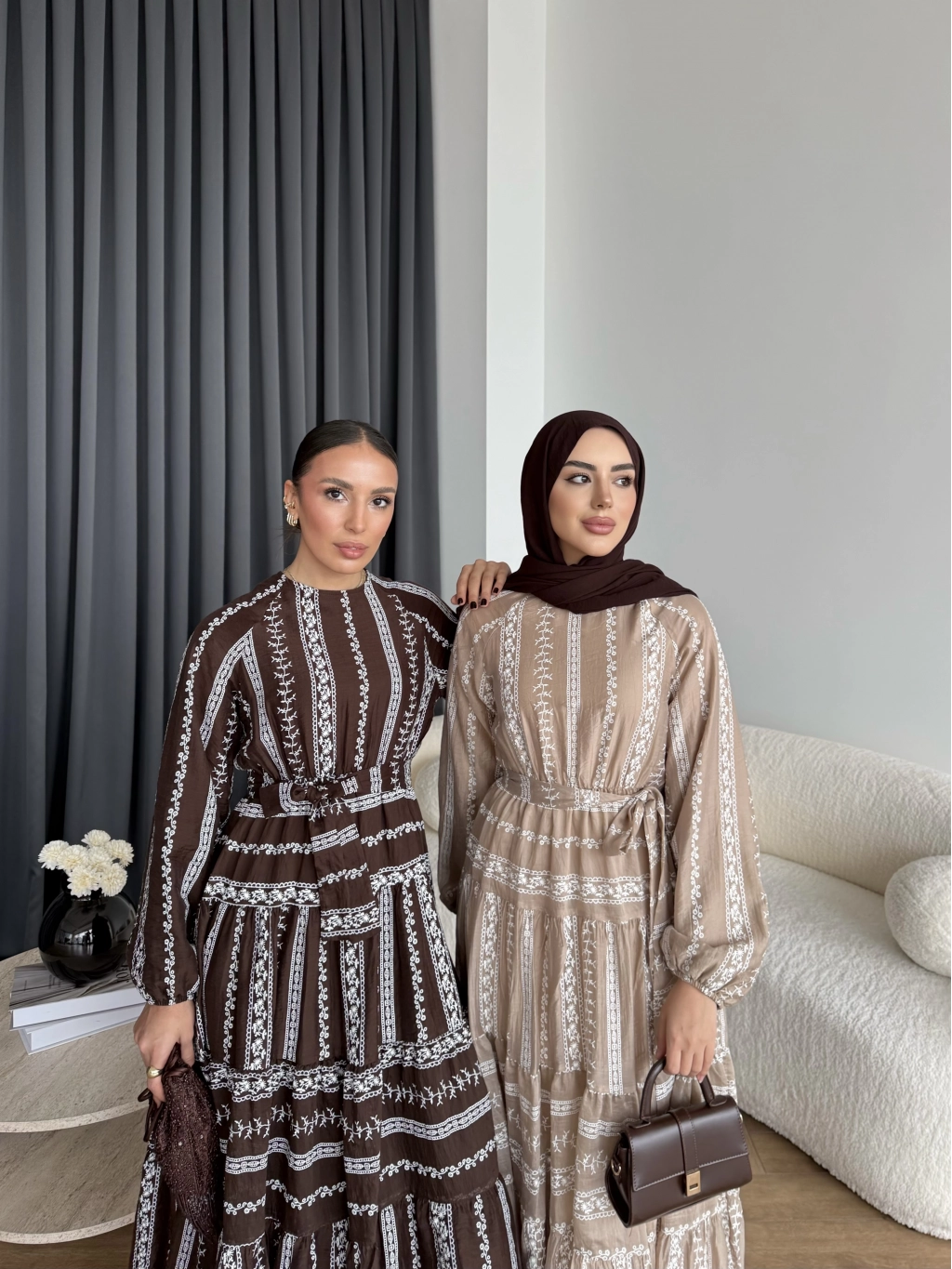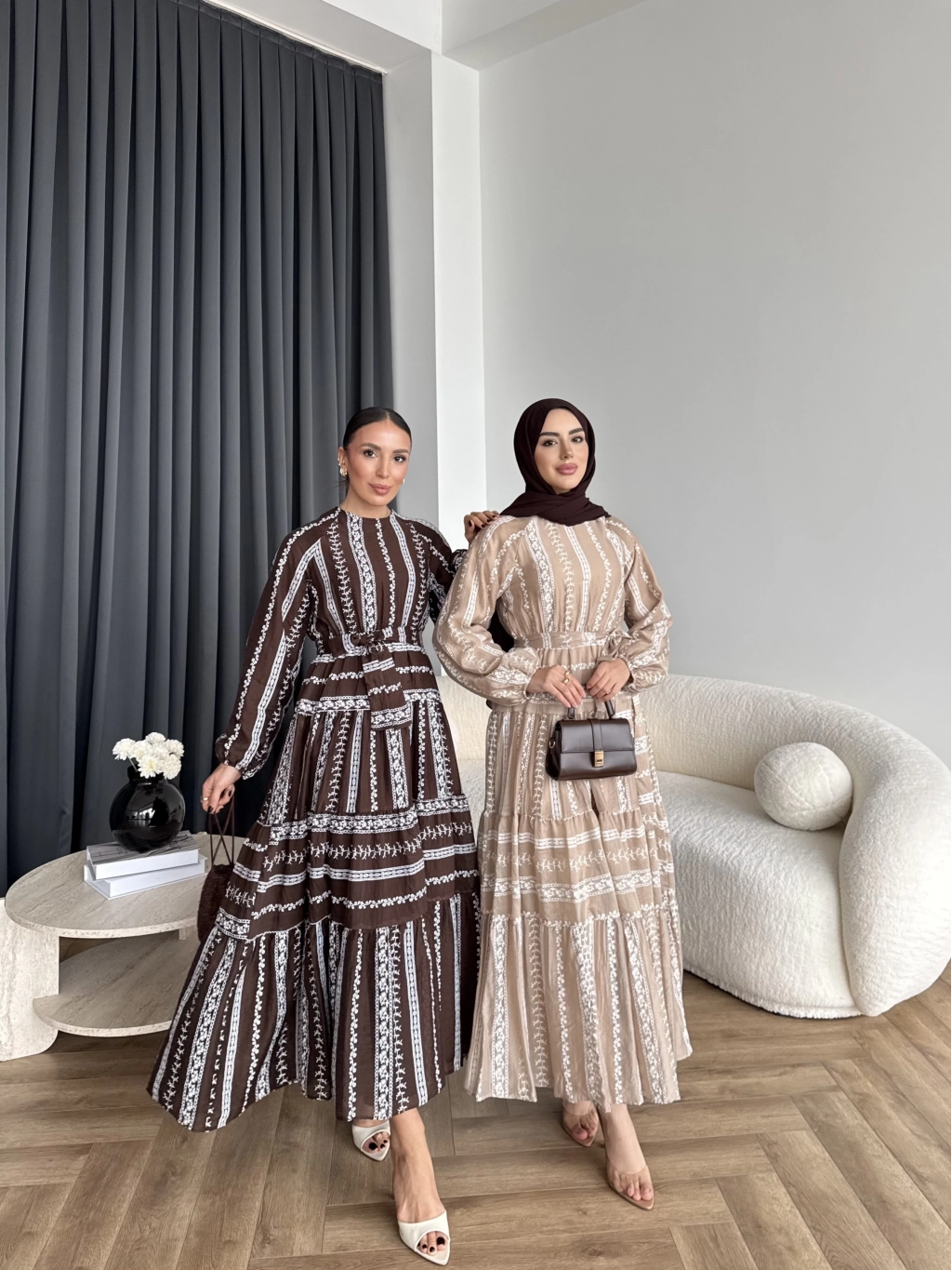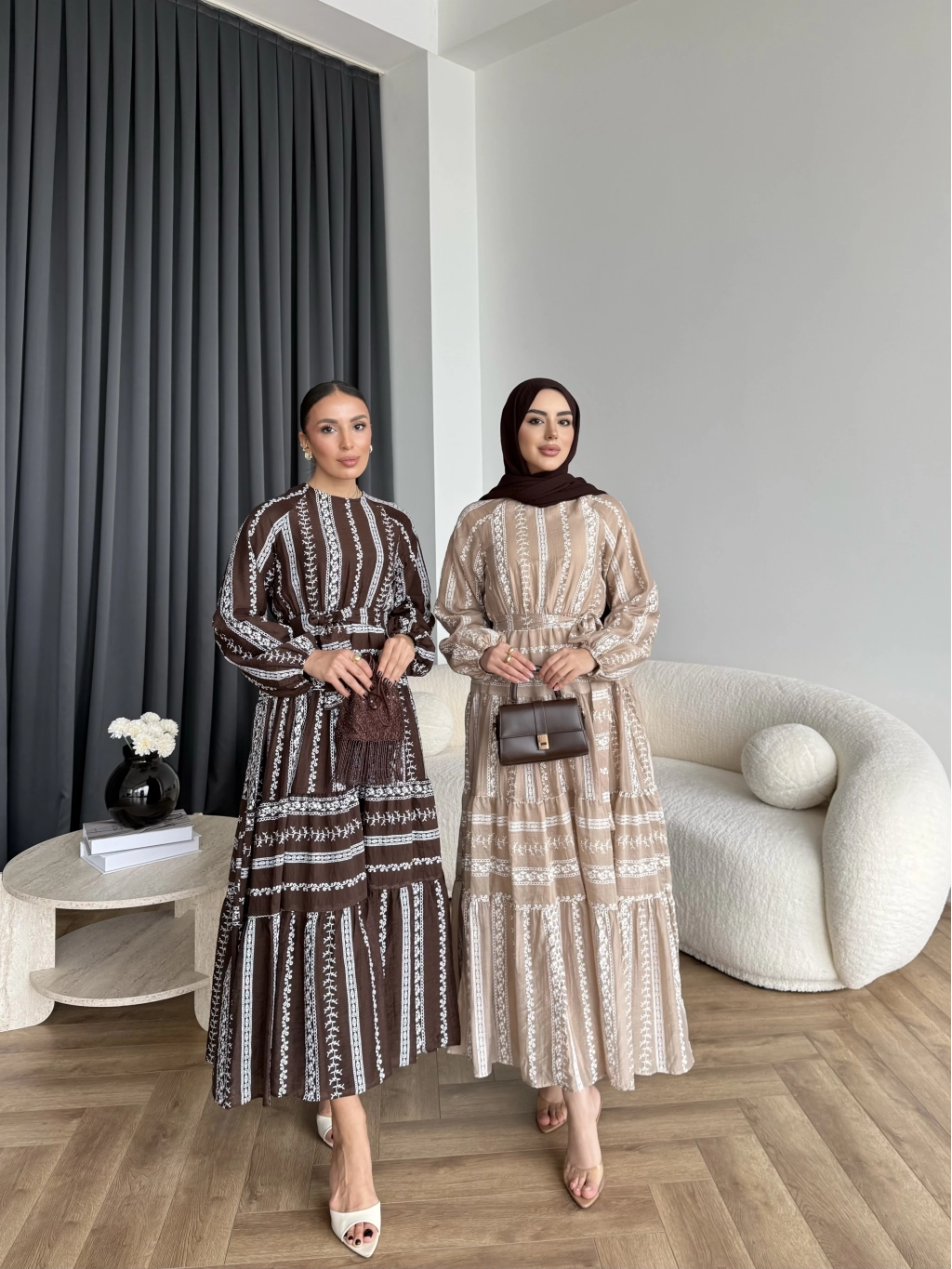 Hew - Warm Bağcıklı Deseneli Elbise - Vizon
