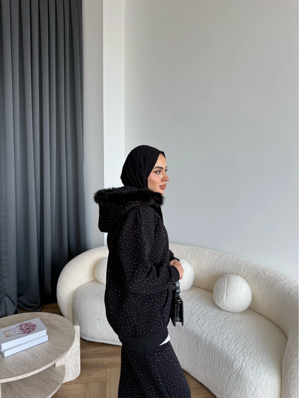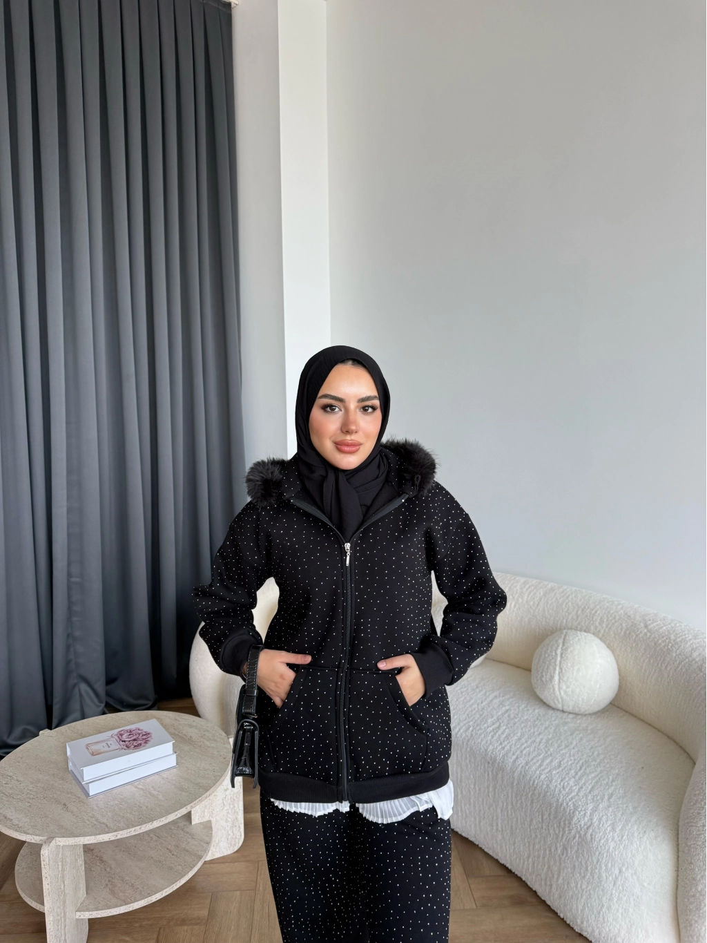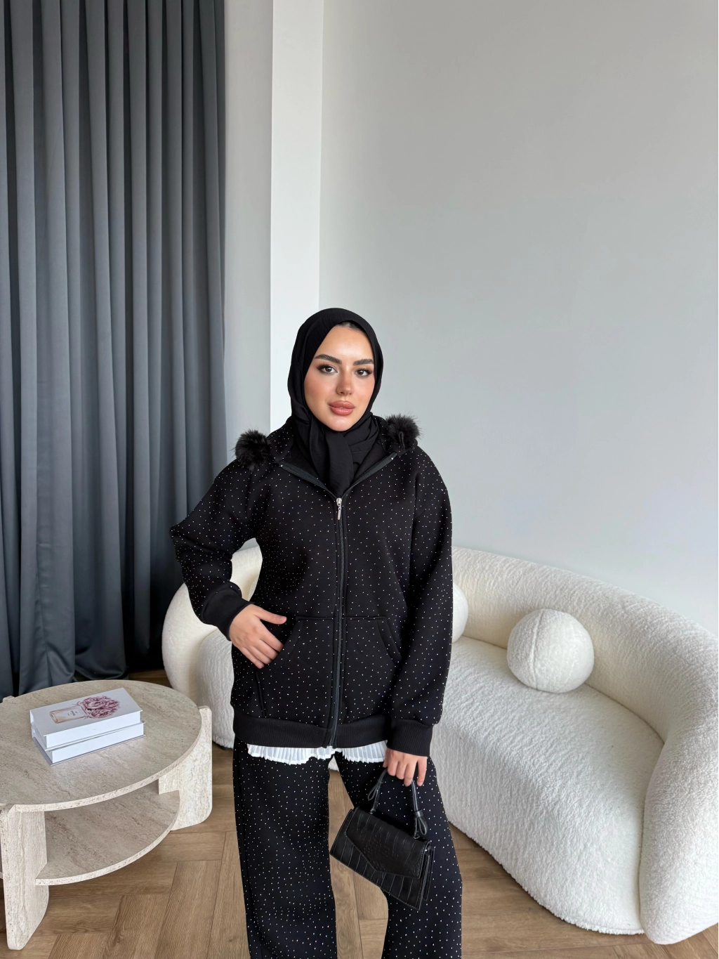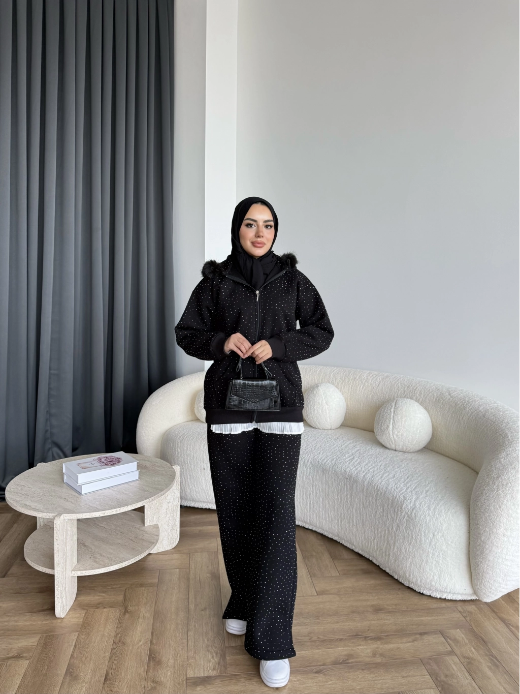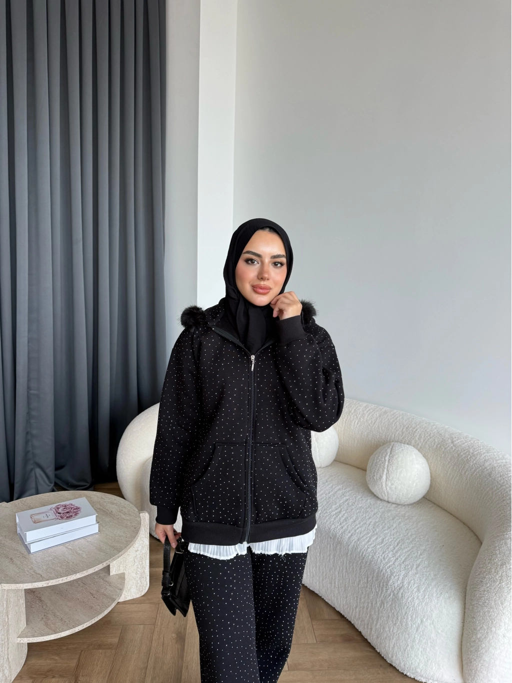Hps-Taşlı Kürk Detay Takım - Siyah