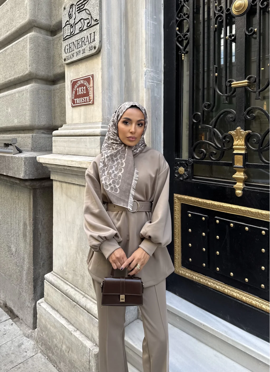 Polo Yaka Örgü Triko Takım - Acı Kahve