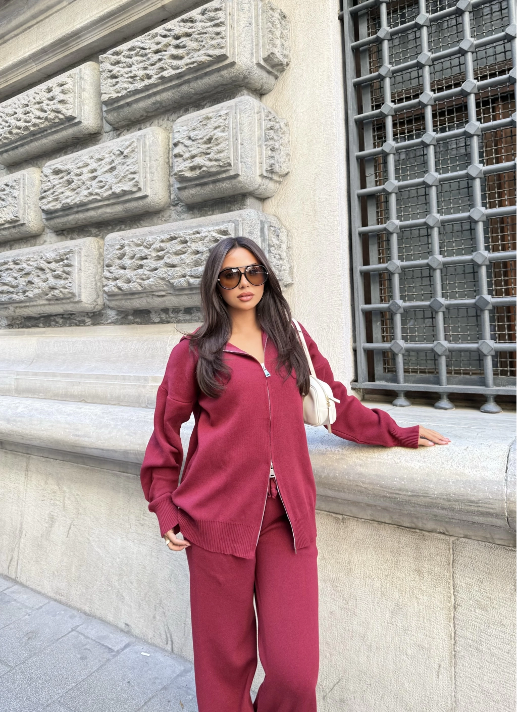 Julia Fermuarlı Takım - Bordo