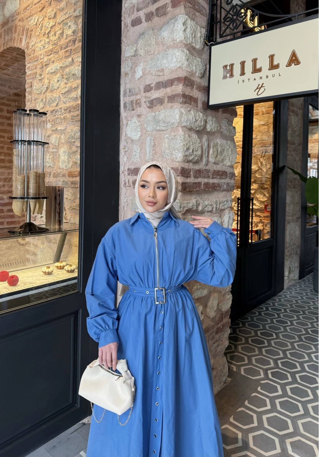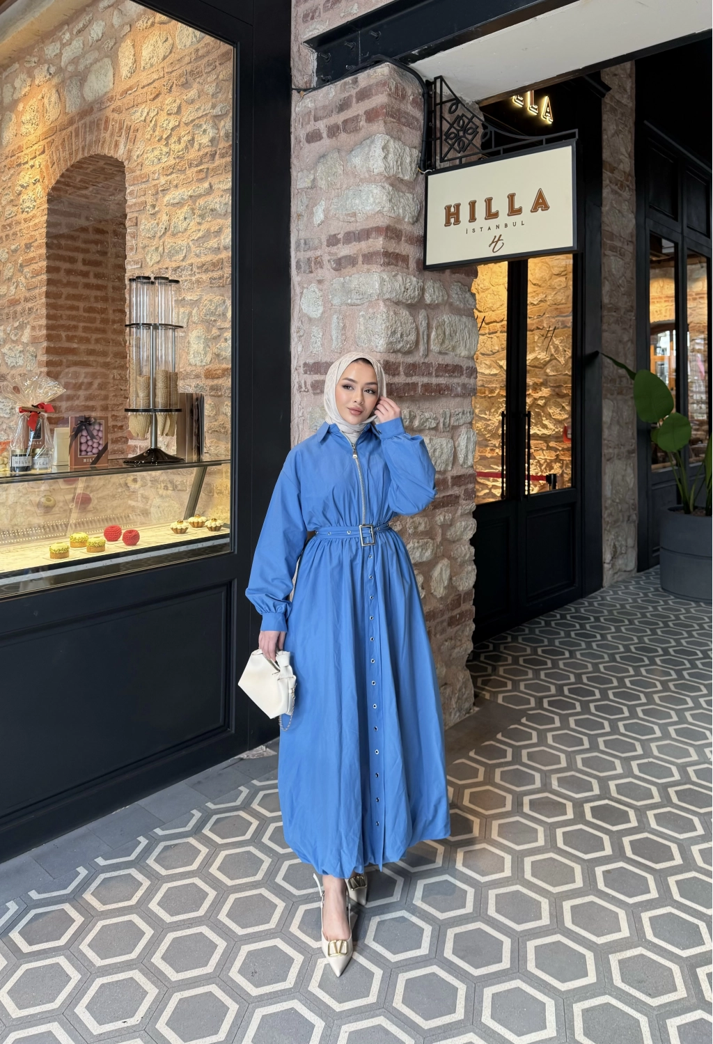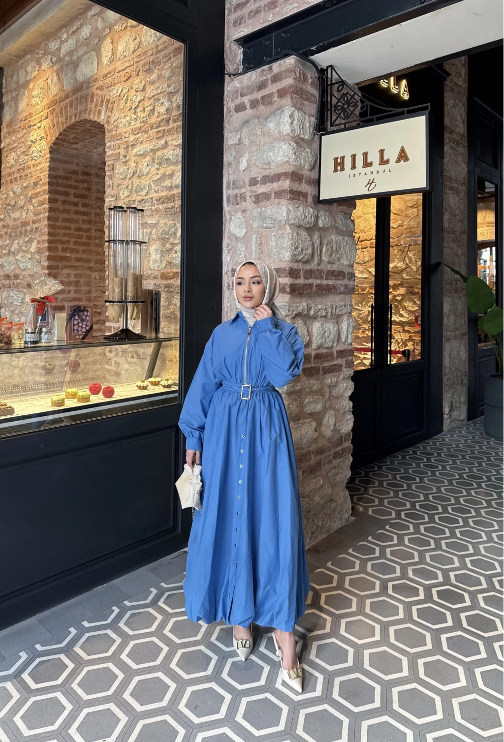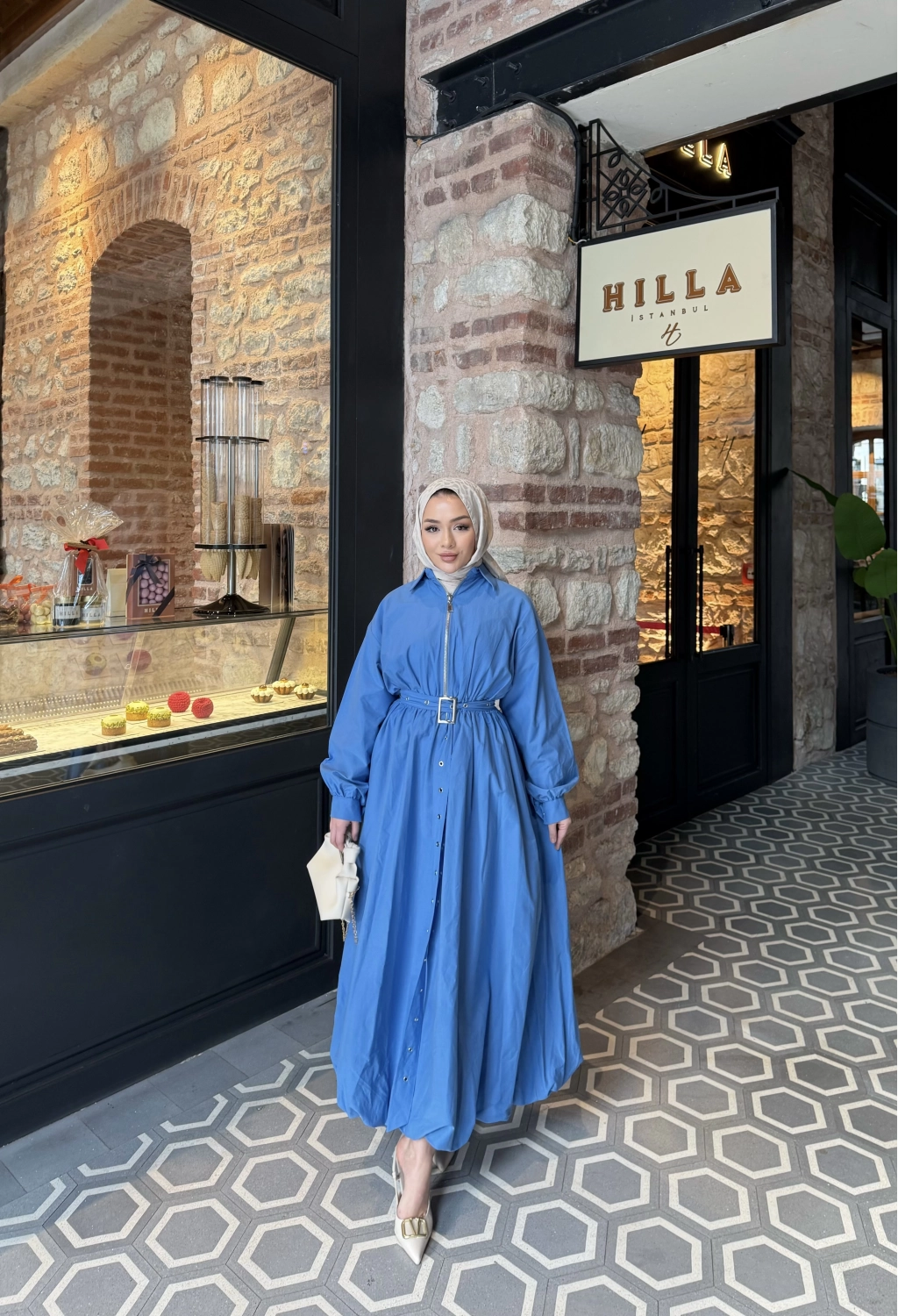 Üst : Klasik yaka , önden fermuarlı , balon kollu , manşet kol detaylı , beli lastikli , balon kesime sahip , seyyar kemerlidir .