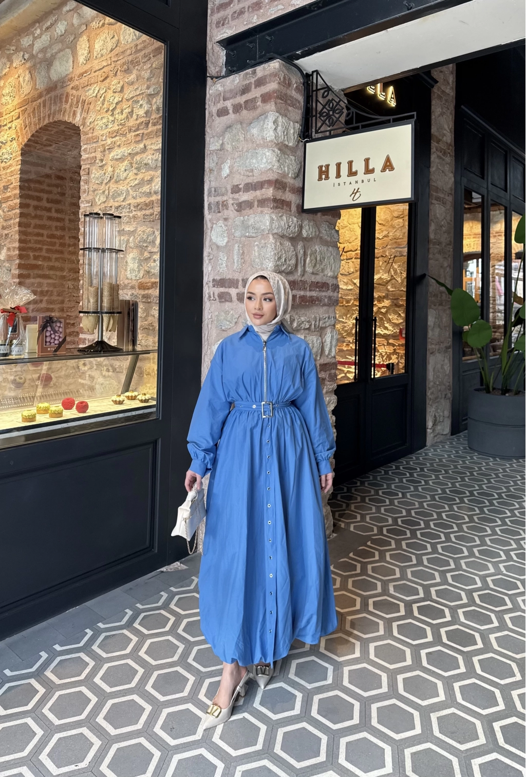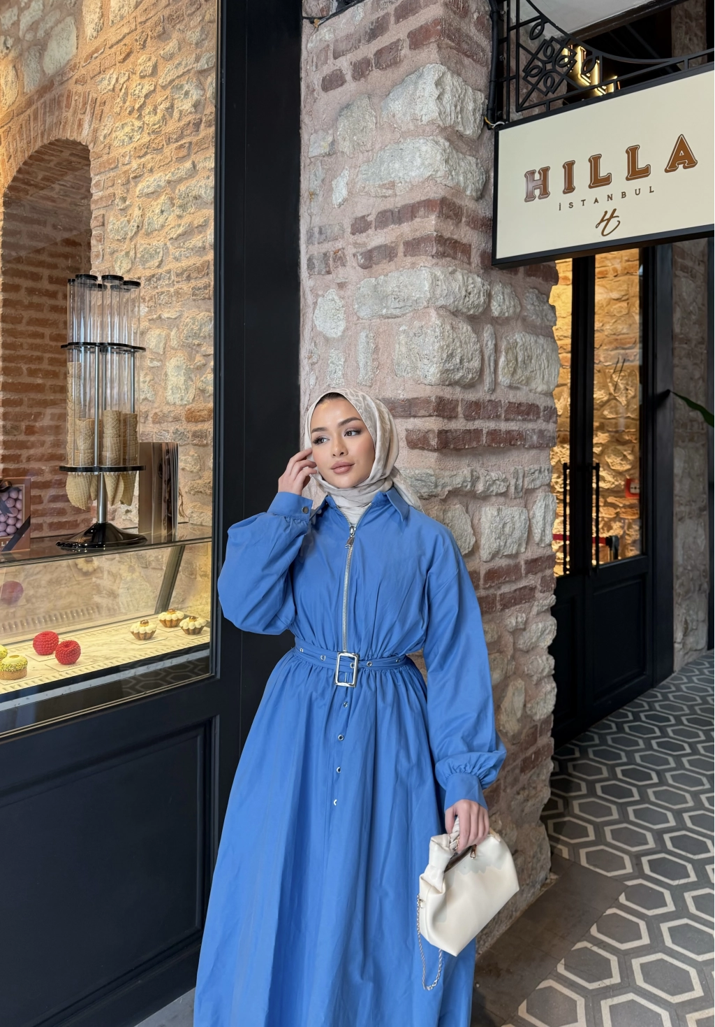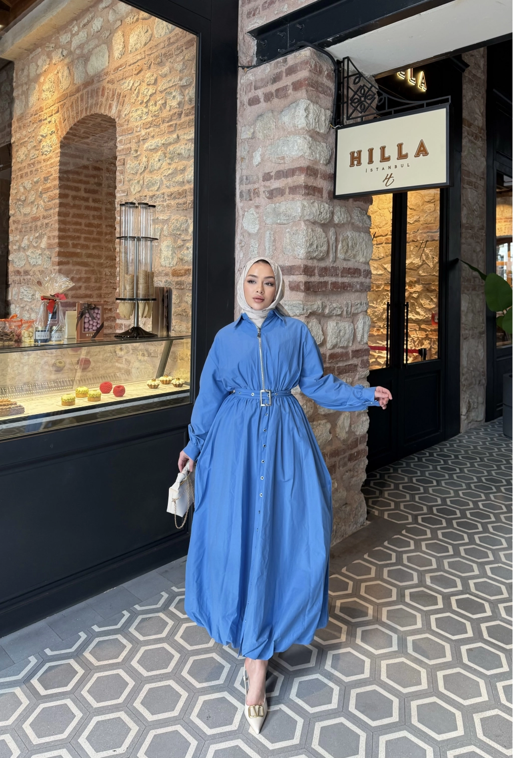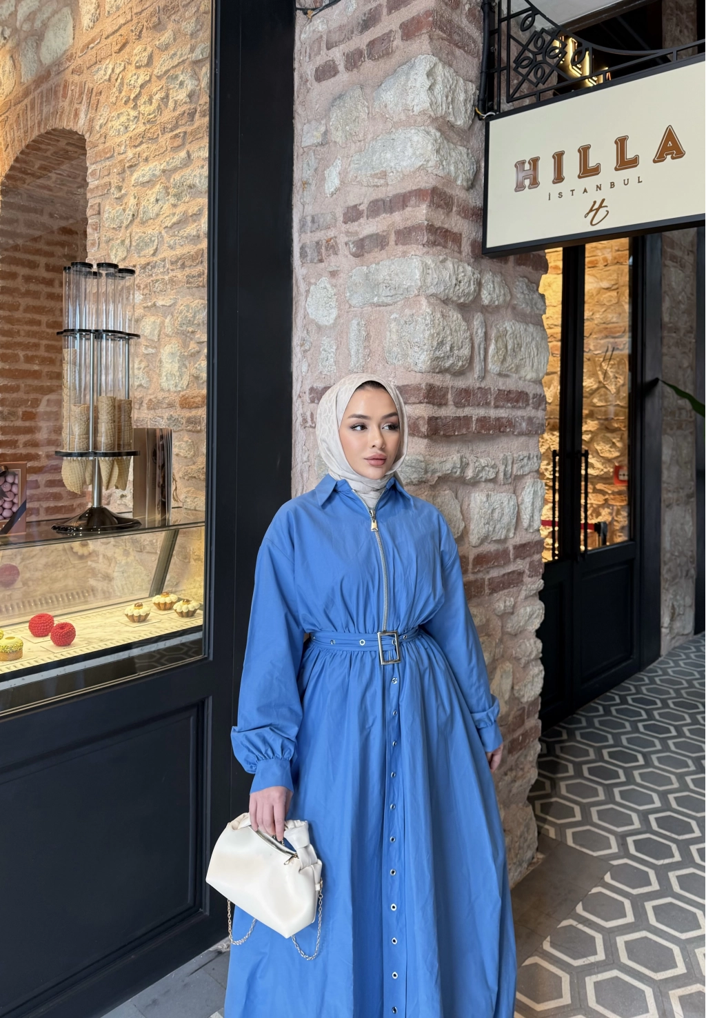 Üst : Klasik yaka , önden fermuarlı , balon kollu , manşet kol detaylı , beli lastikli , balon kesime sahip , seyyar kemerlidir .