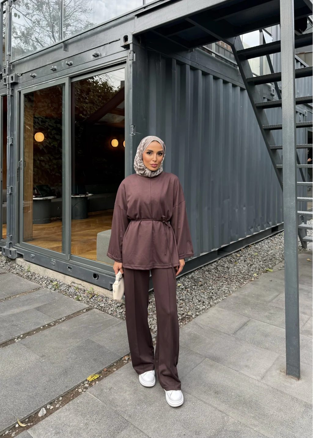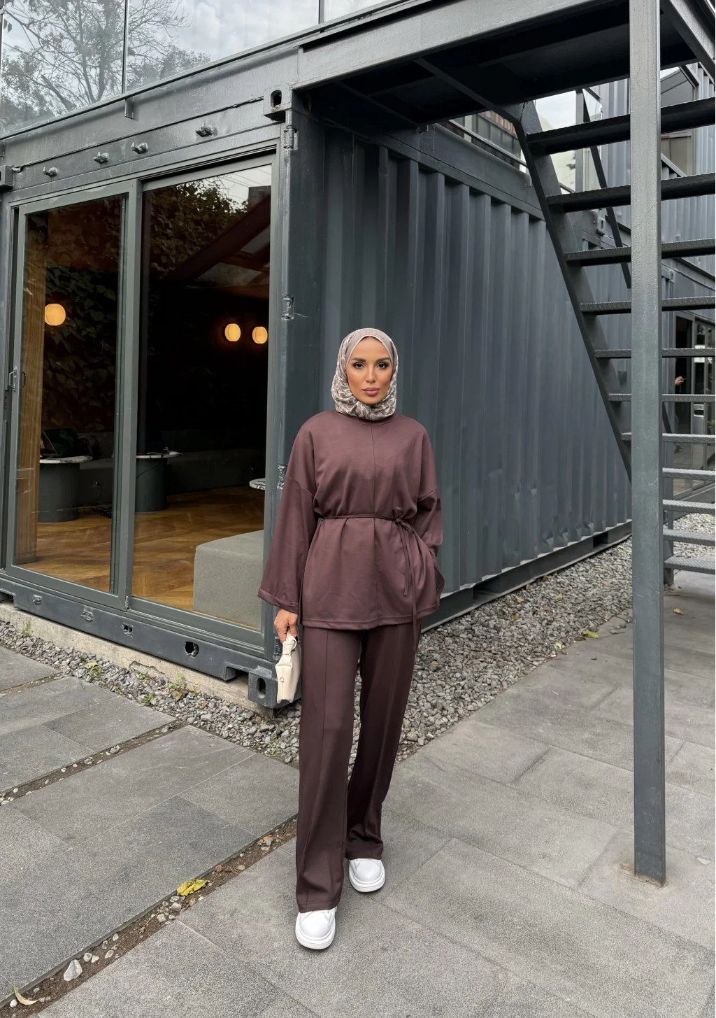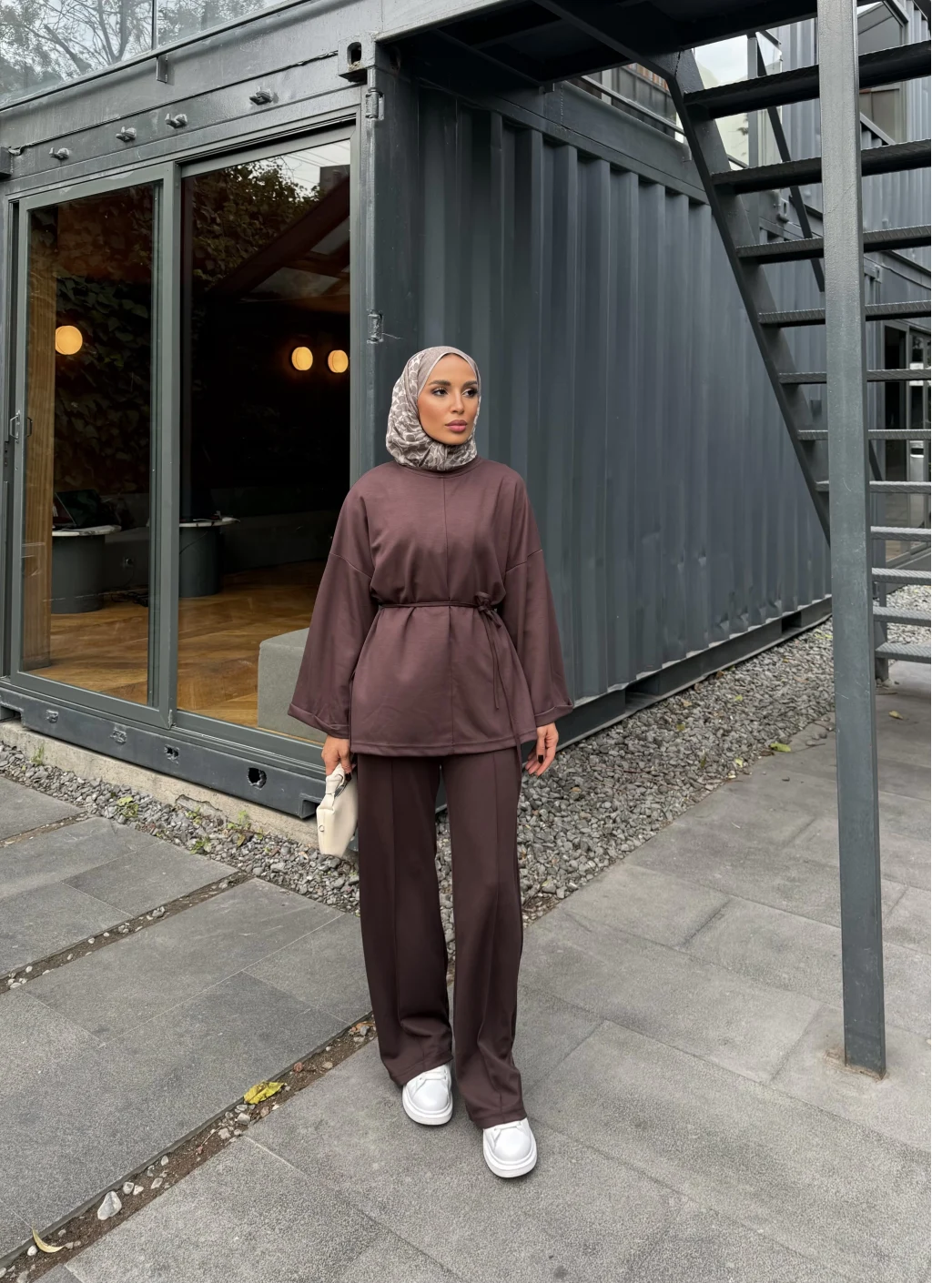 Kimmy Ön Çizgili Takım - Kahve