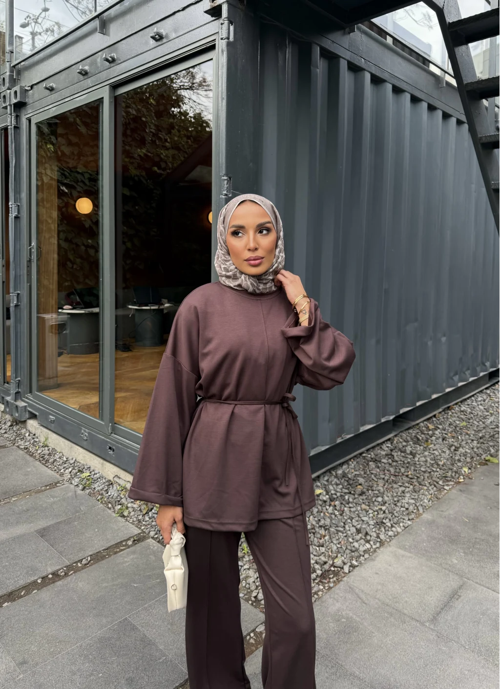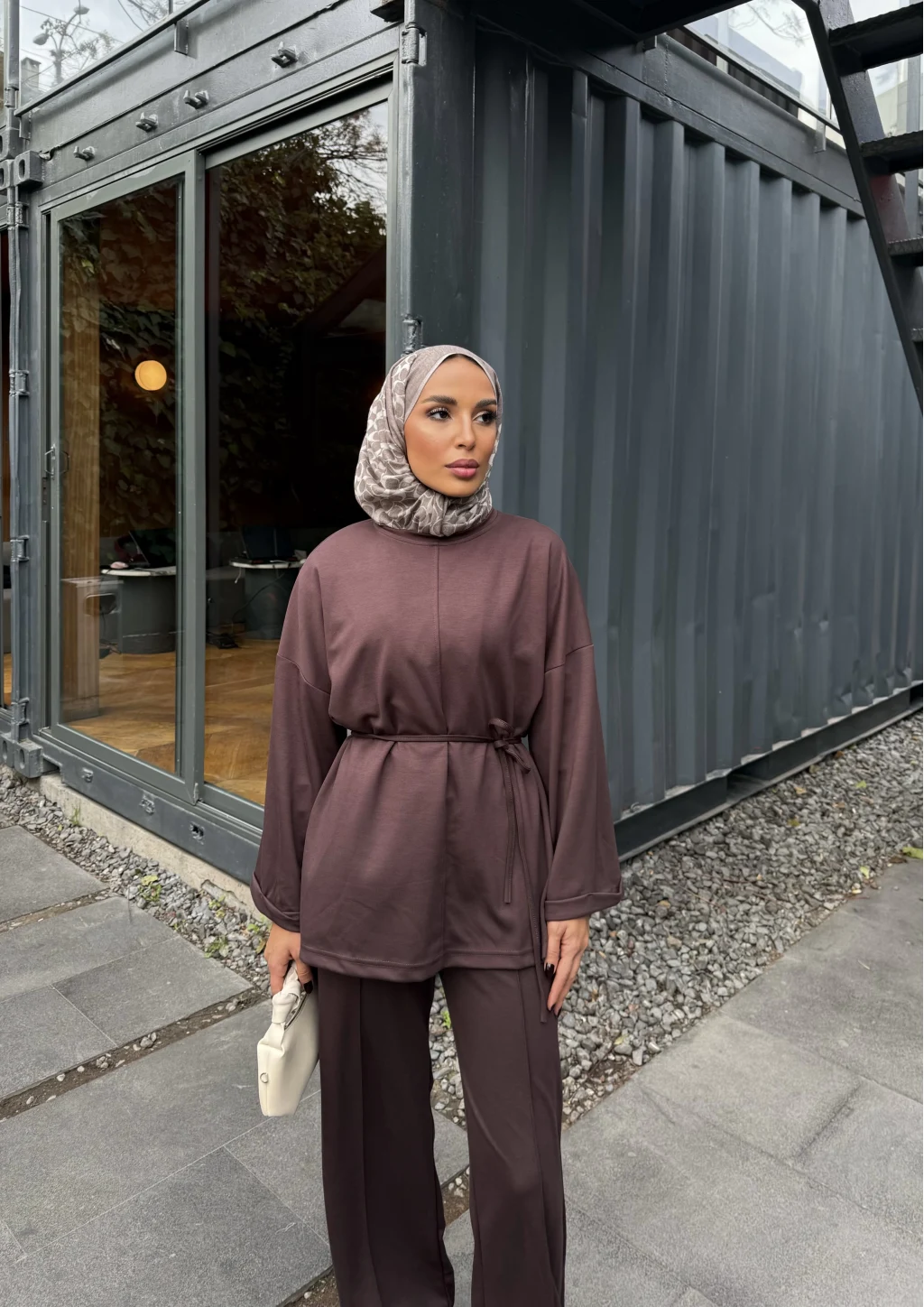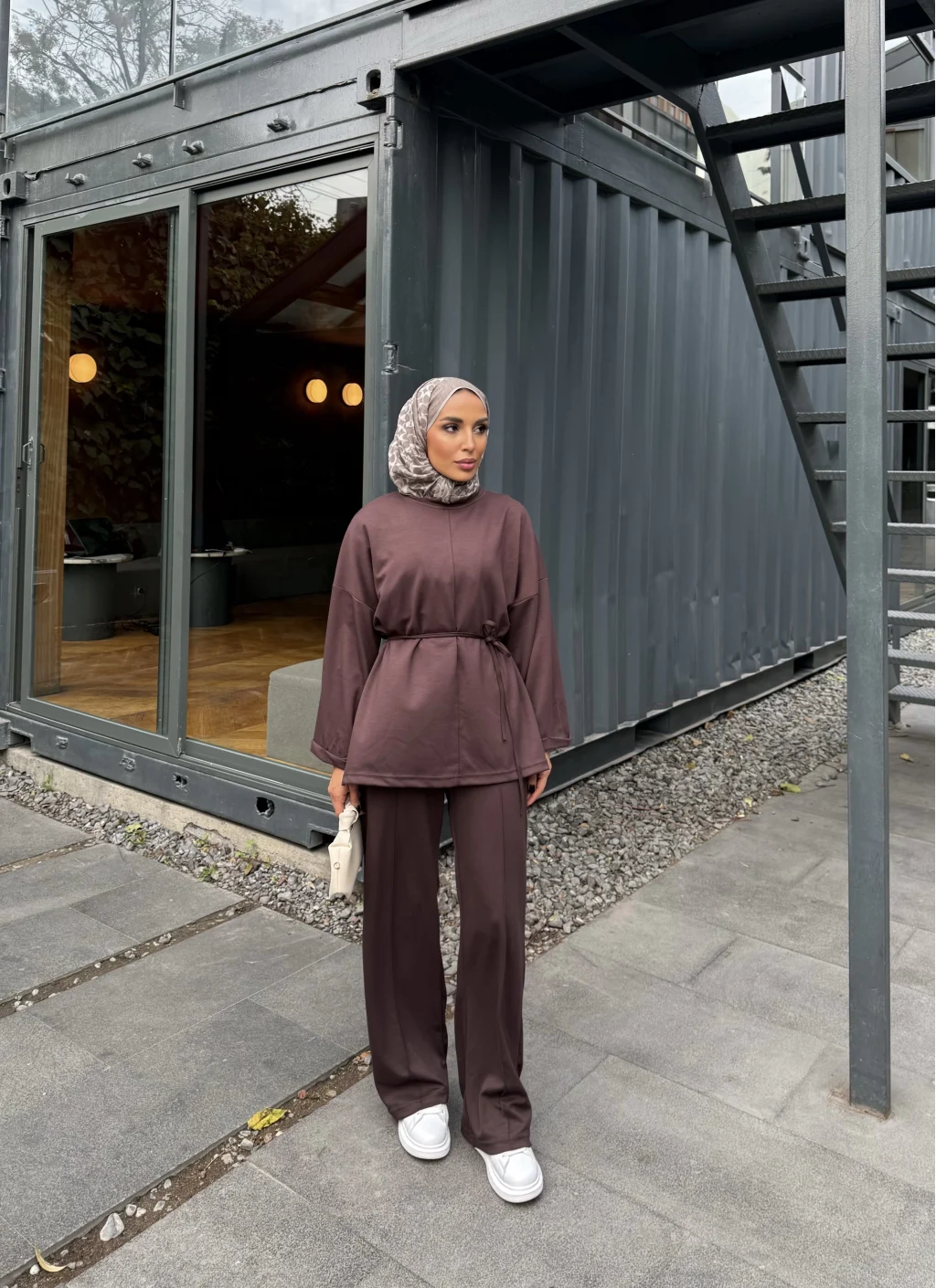 Kimmy Ön Çizgili Takım - Kahve