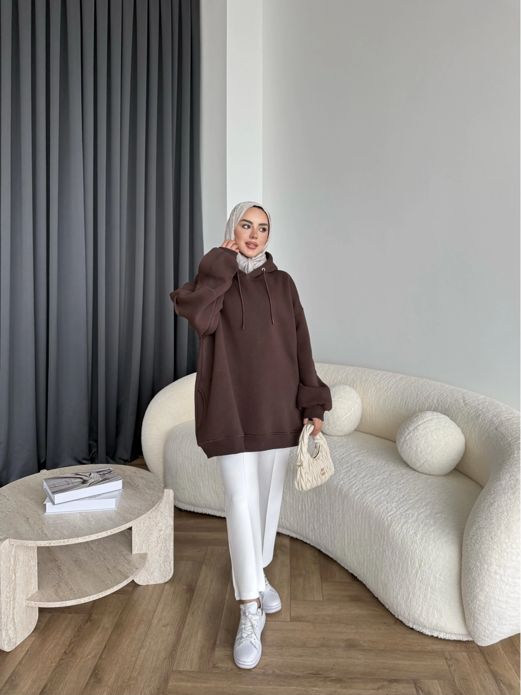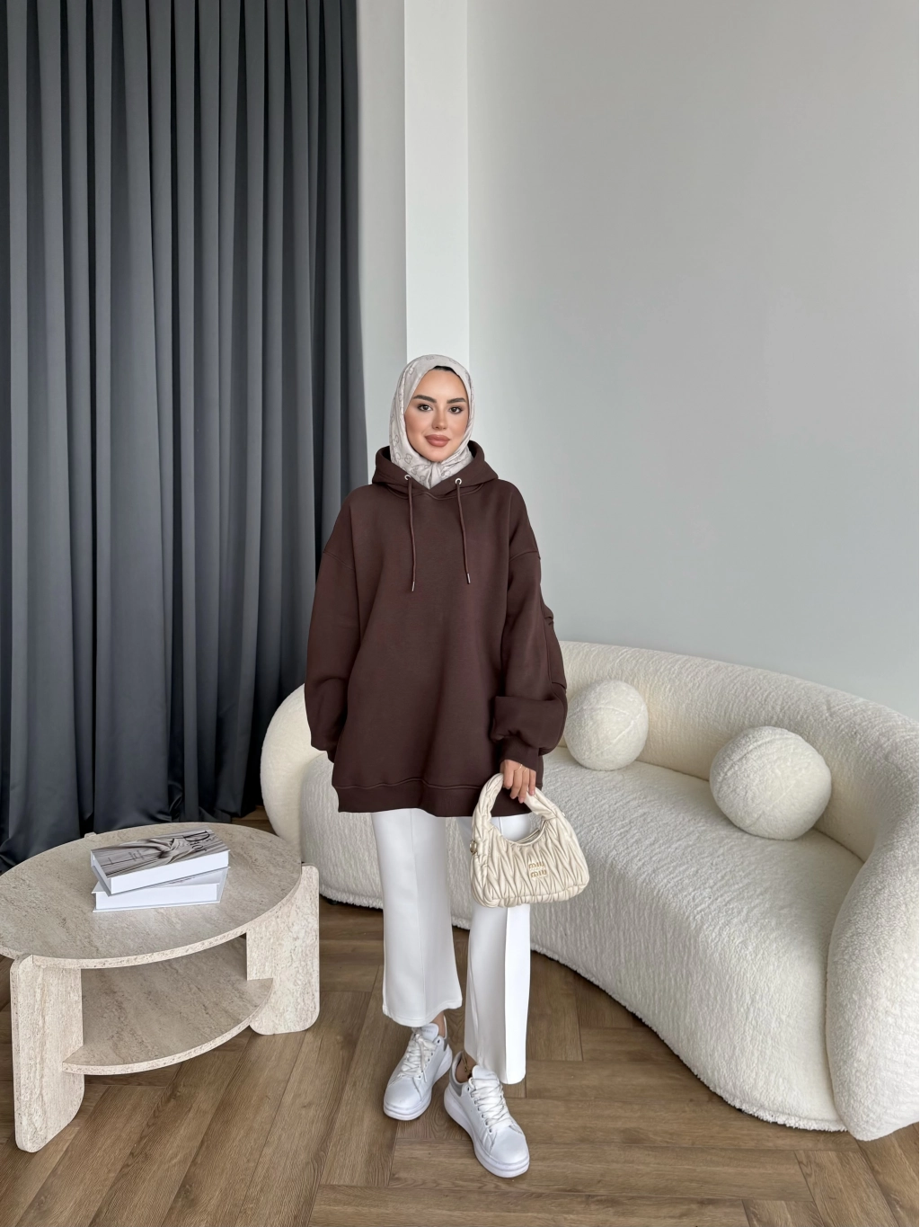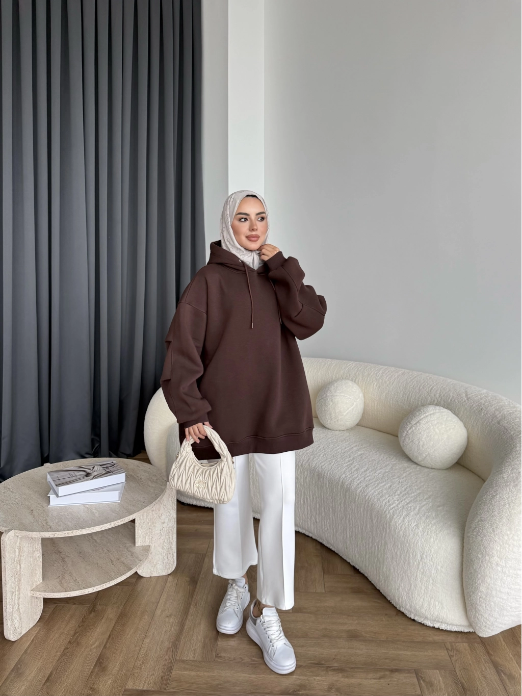 Kolu Piliseli 3 İplik Sweat - Acı Kahve