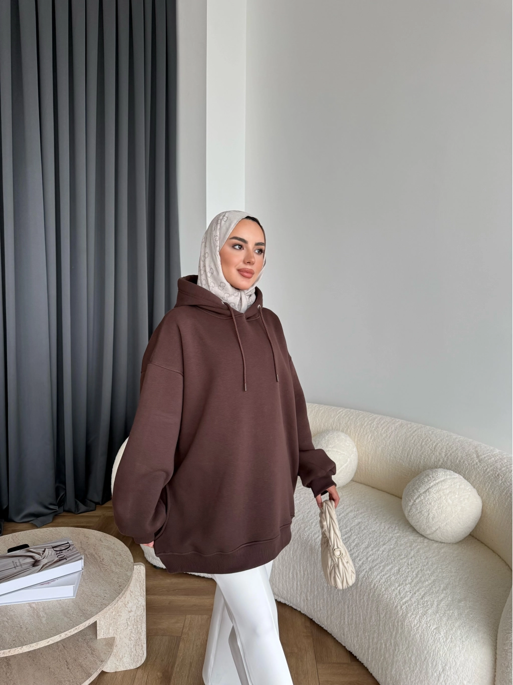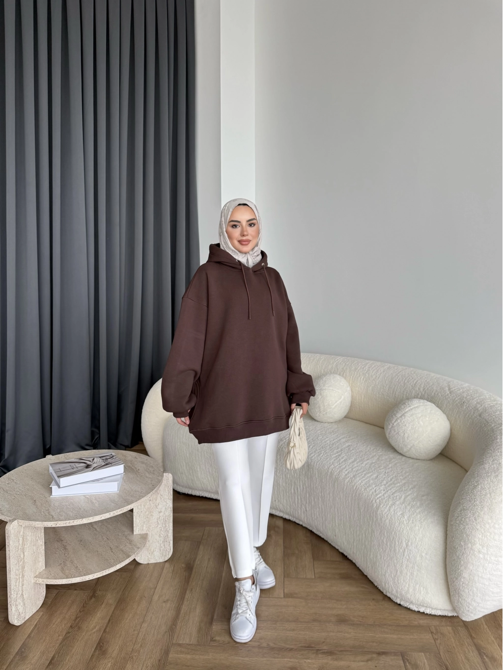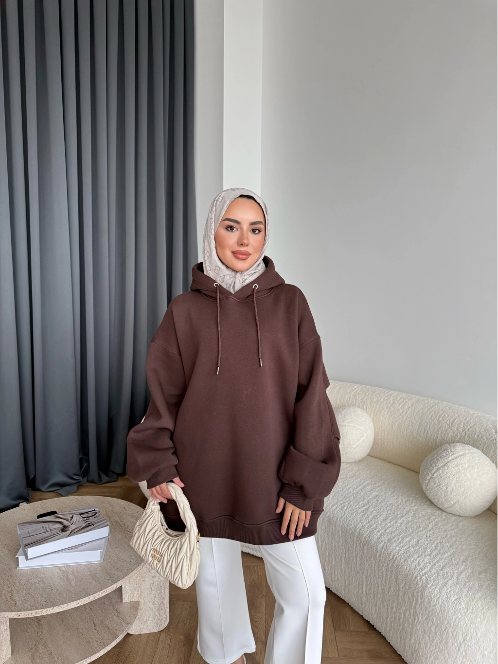 Kolu Piliseli 3 İplik Sweat - Acı Kahve