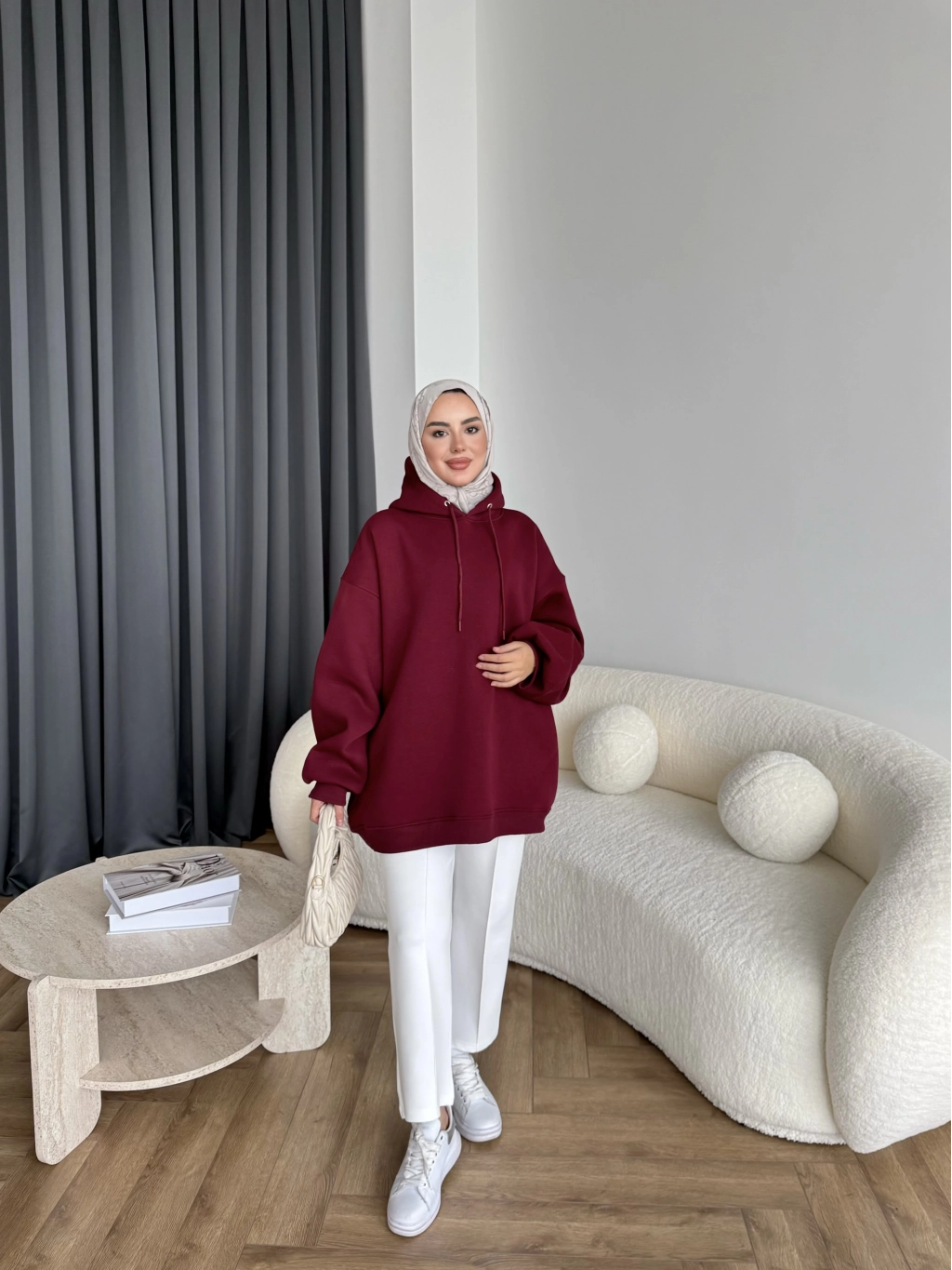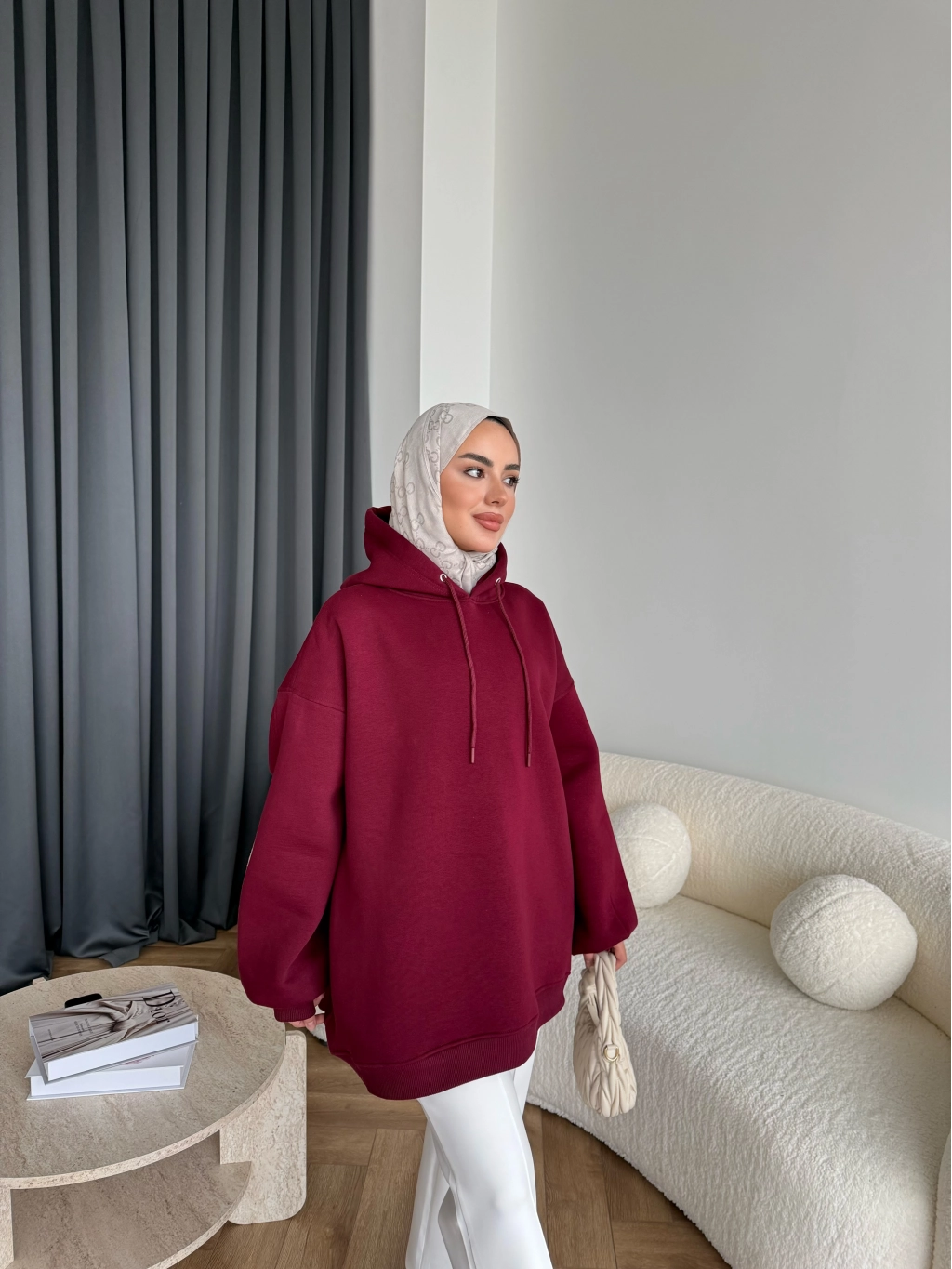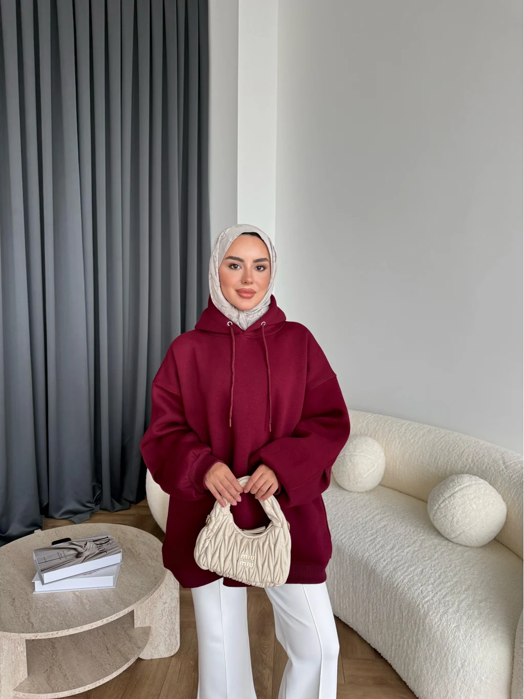 Kolu Piliseli 3 İplik Sweat - Bordo