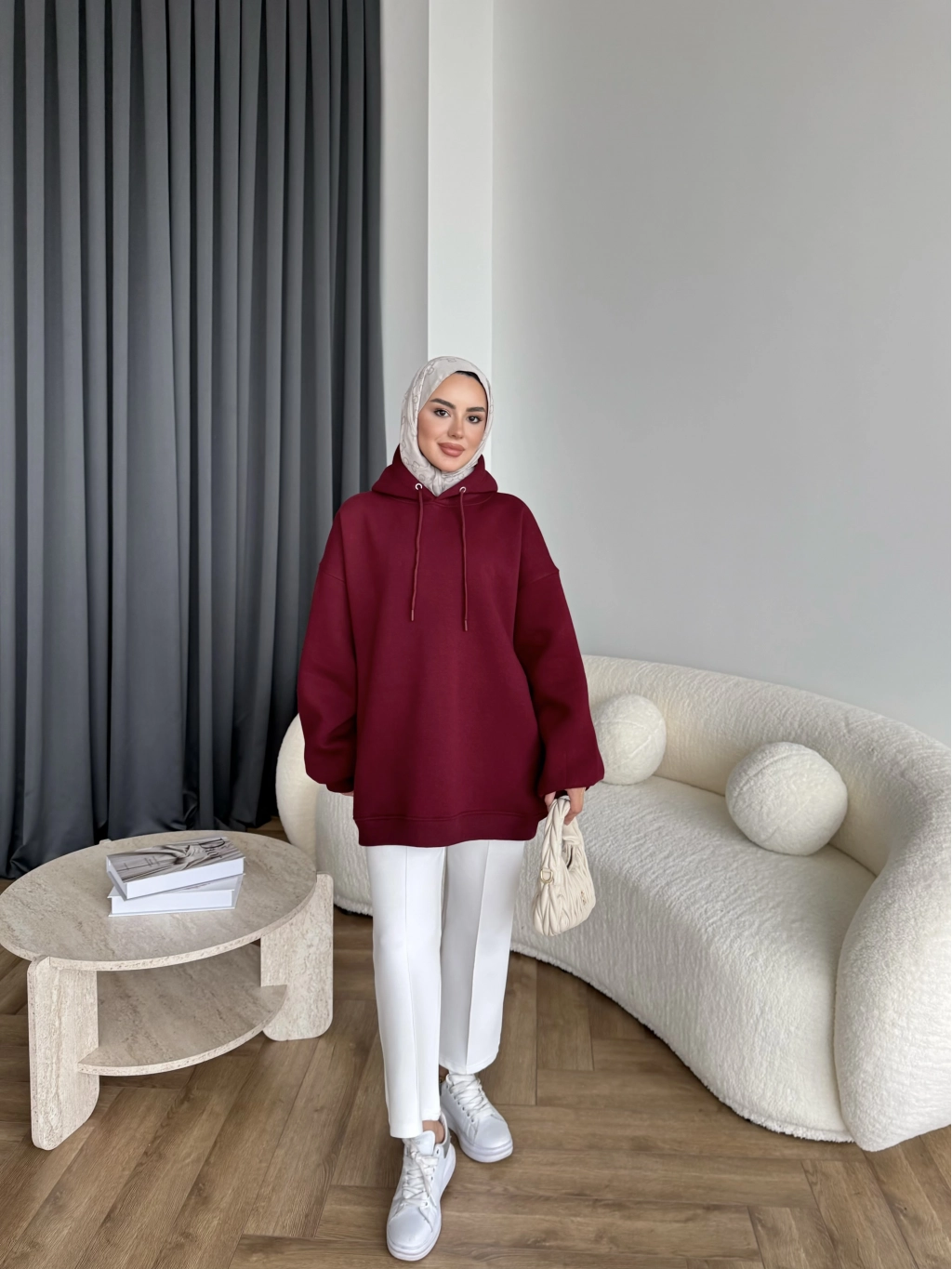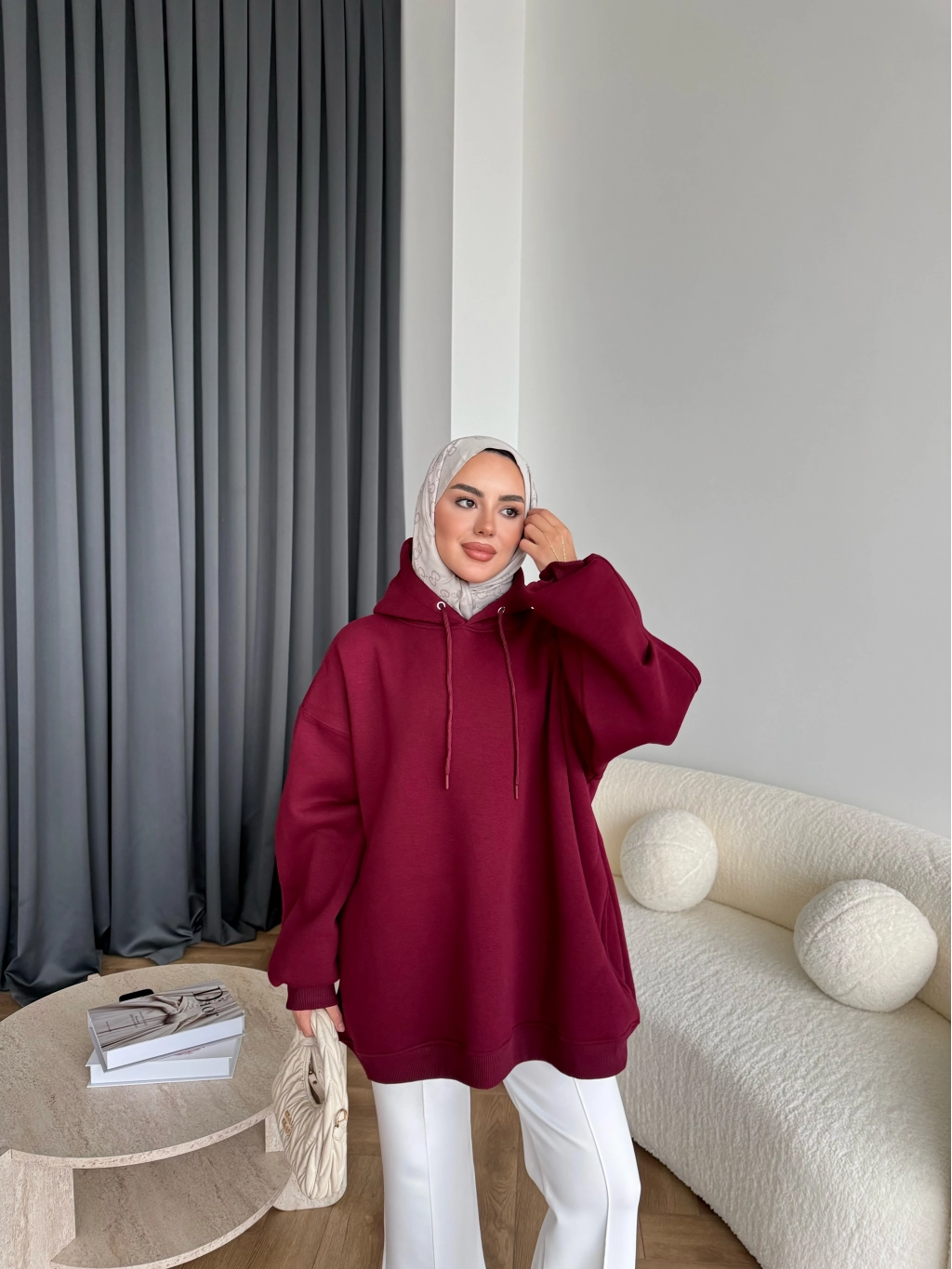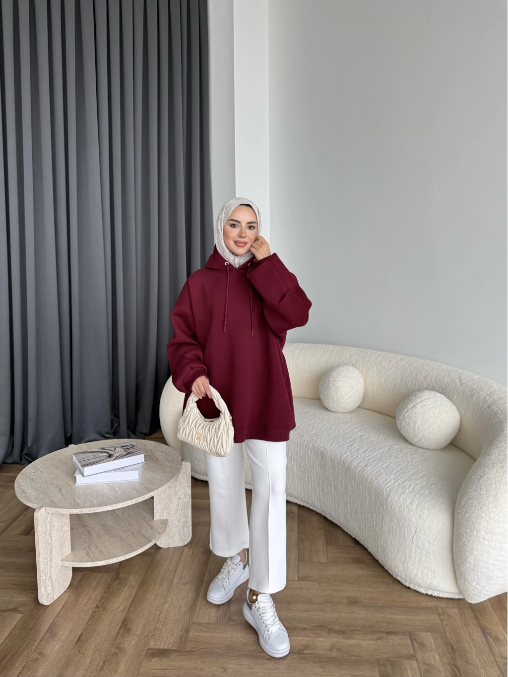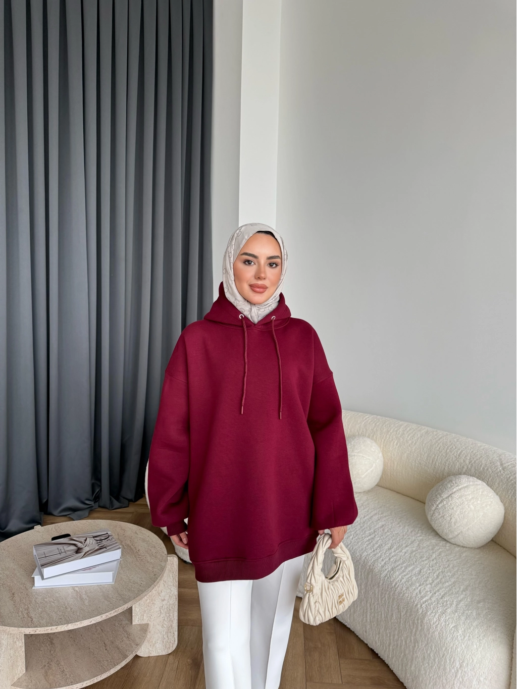Kolu Piliseli 3 İplik Sweat - Bordo