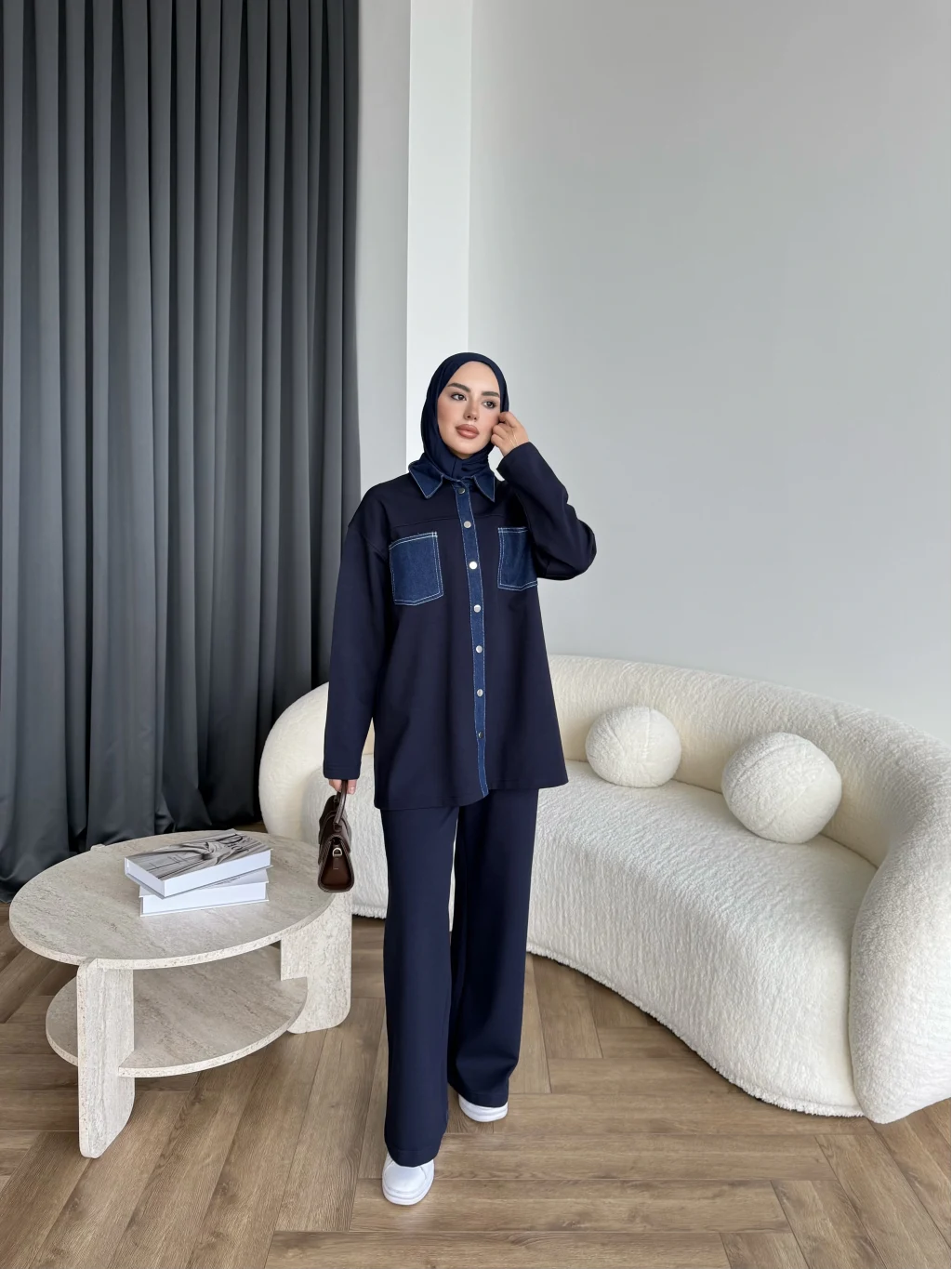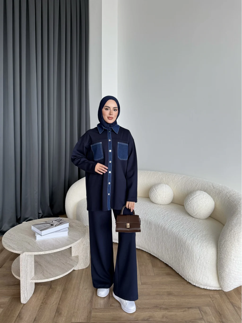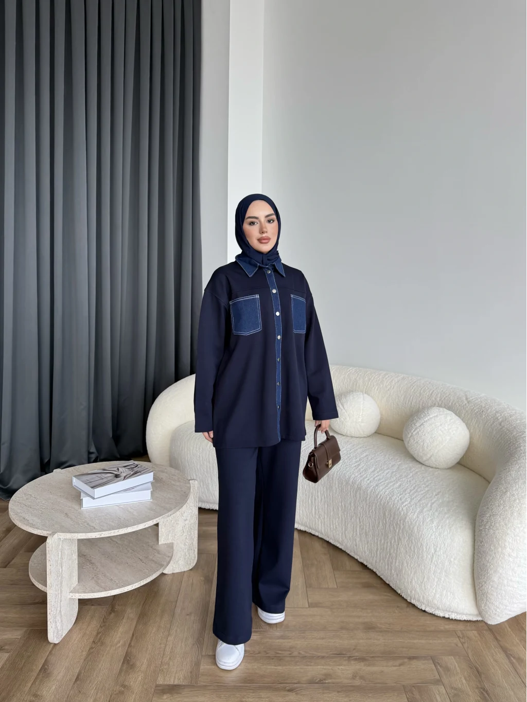 Yanı Kesik Paça Scuba Pantolon - Lacivert
