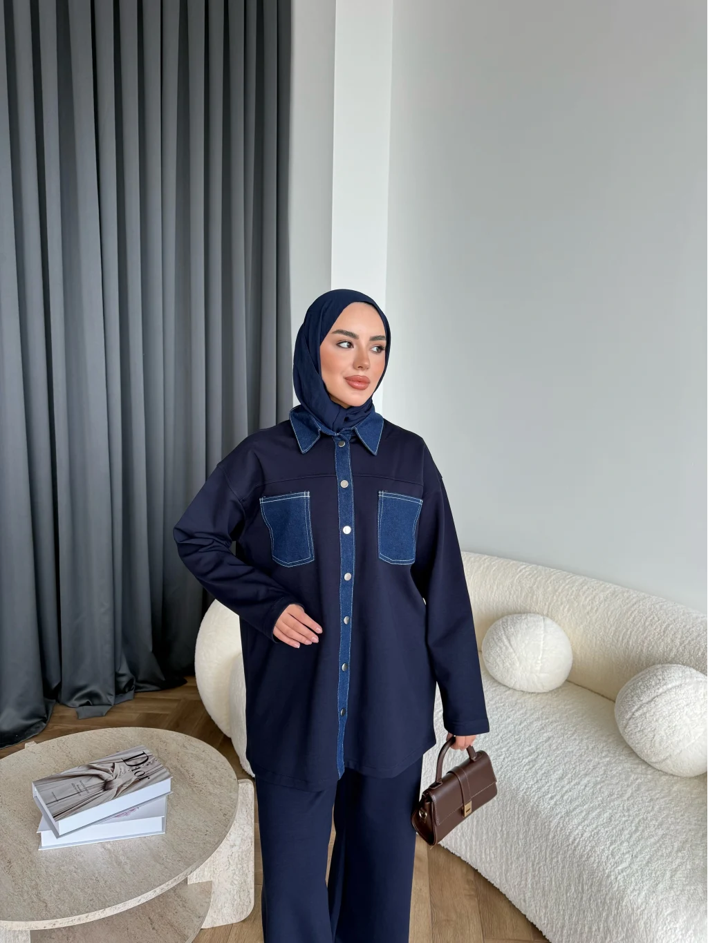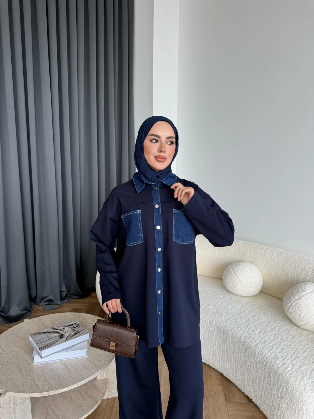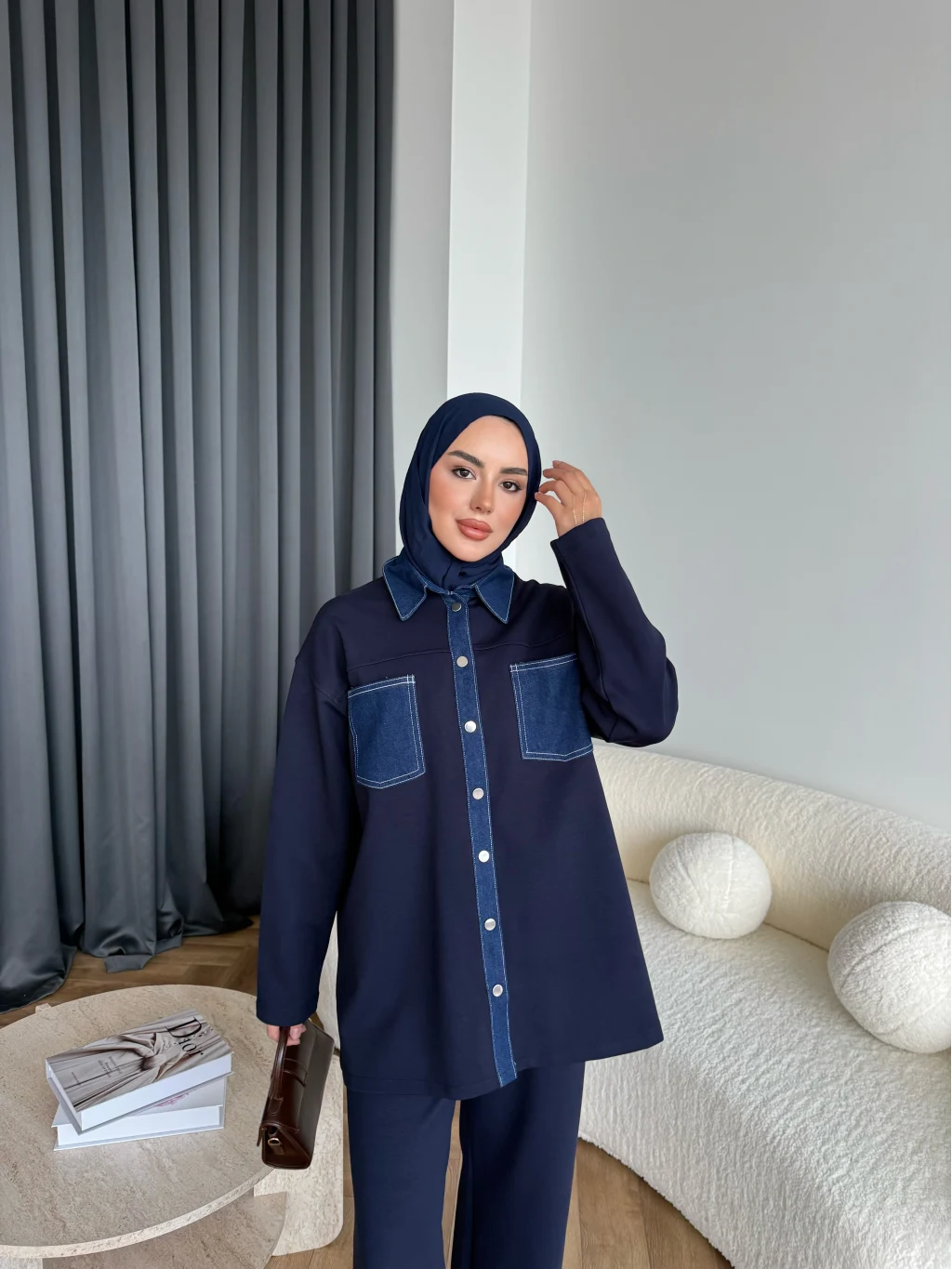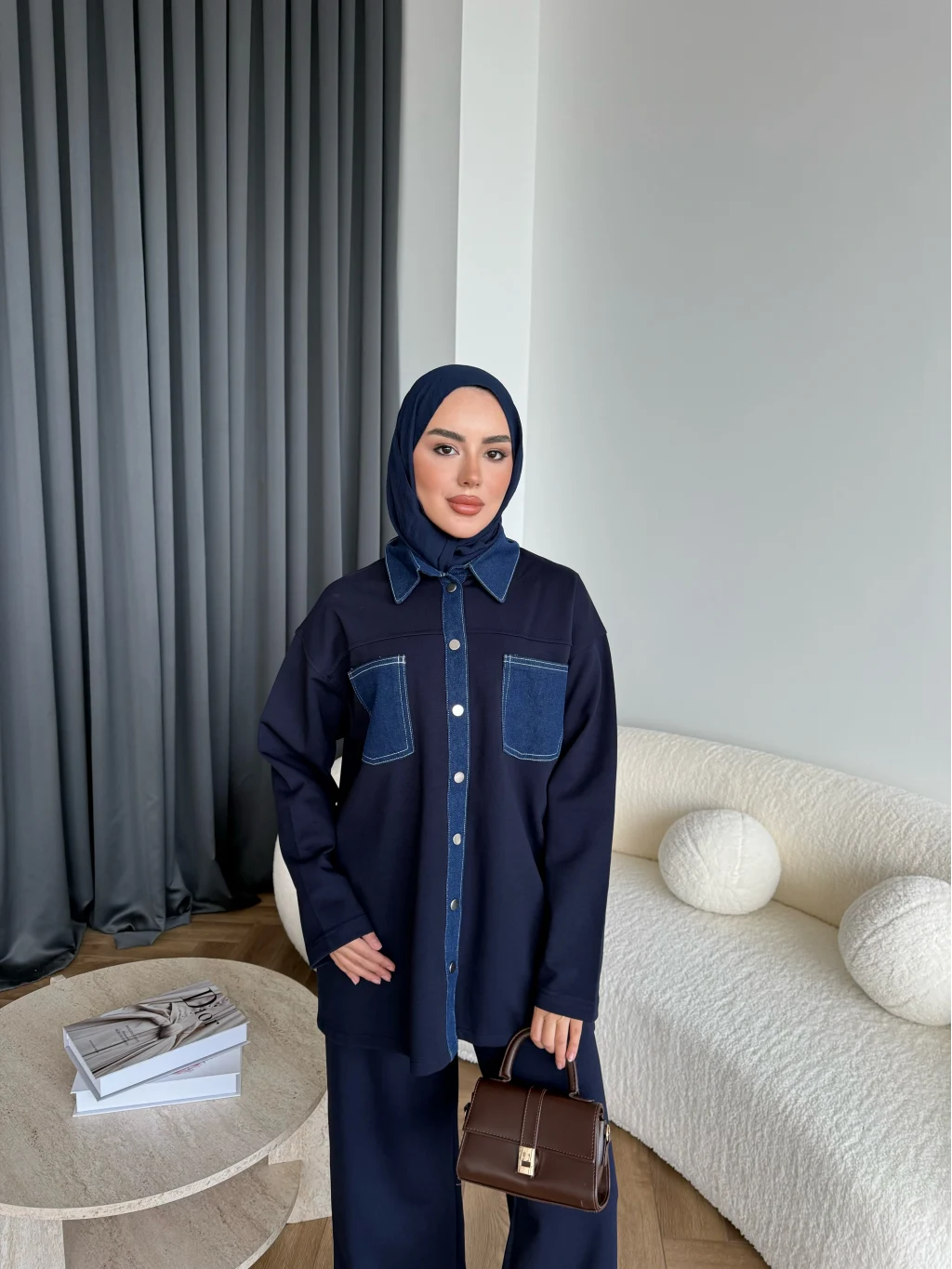 Yanı Kesik Paça Scuba Pantolon - Lacivert