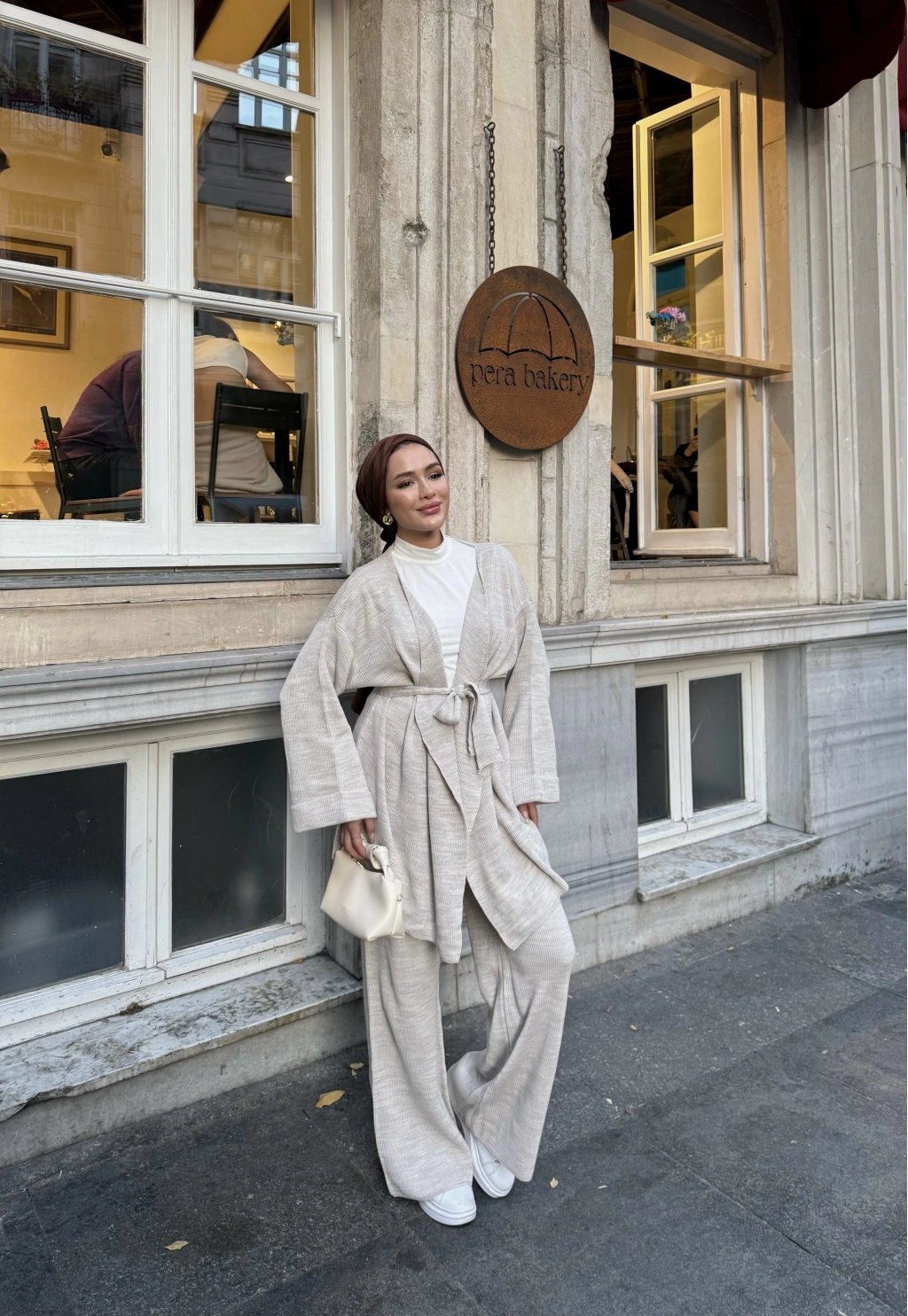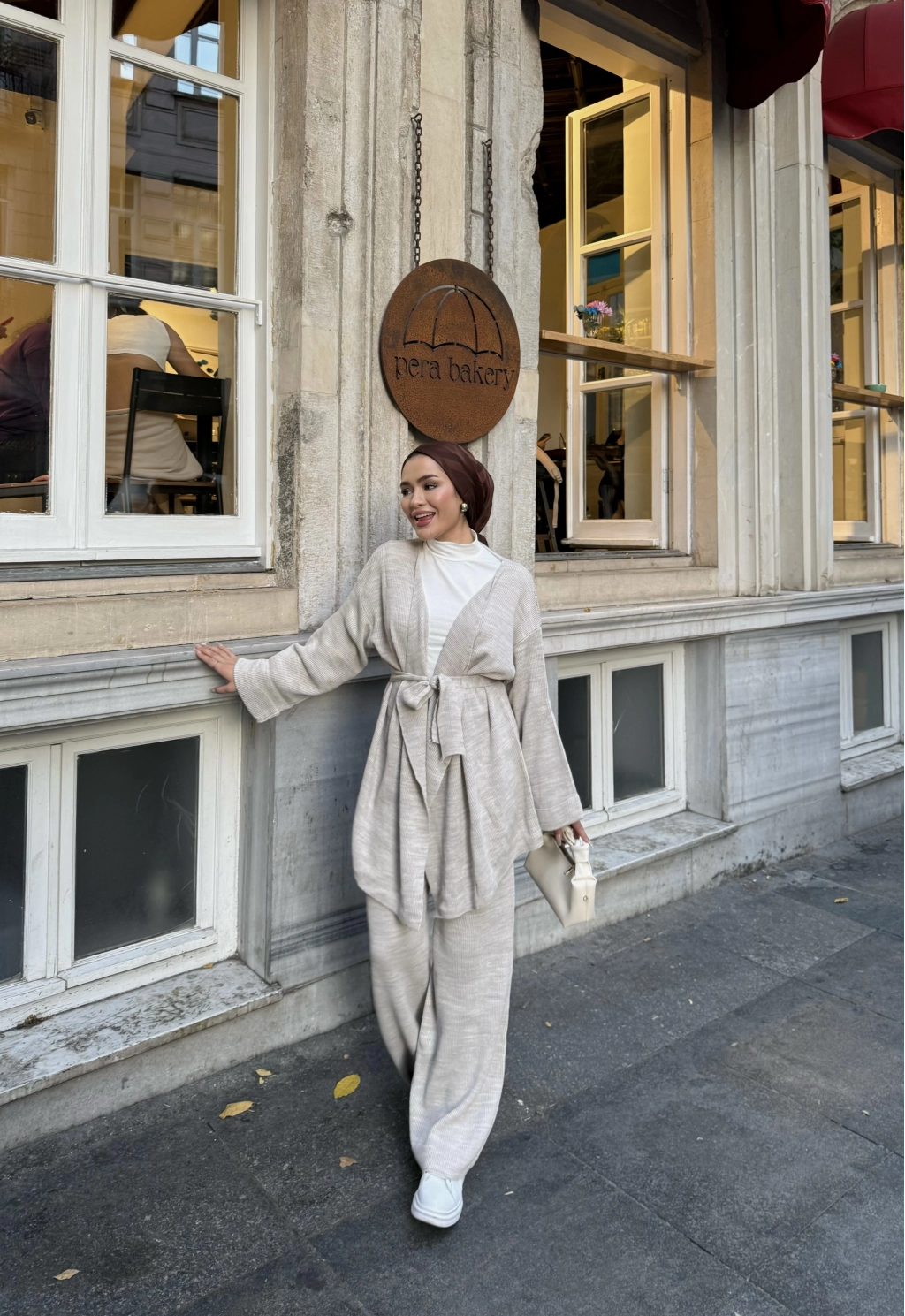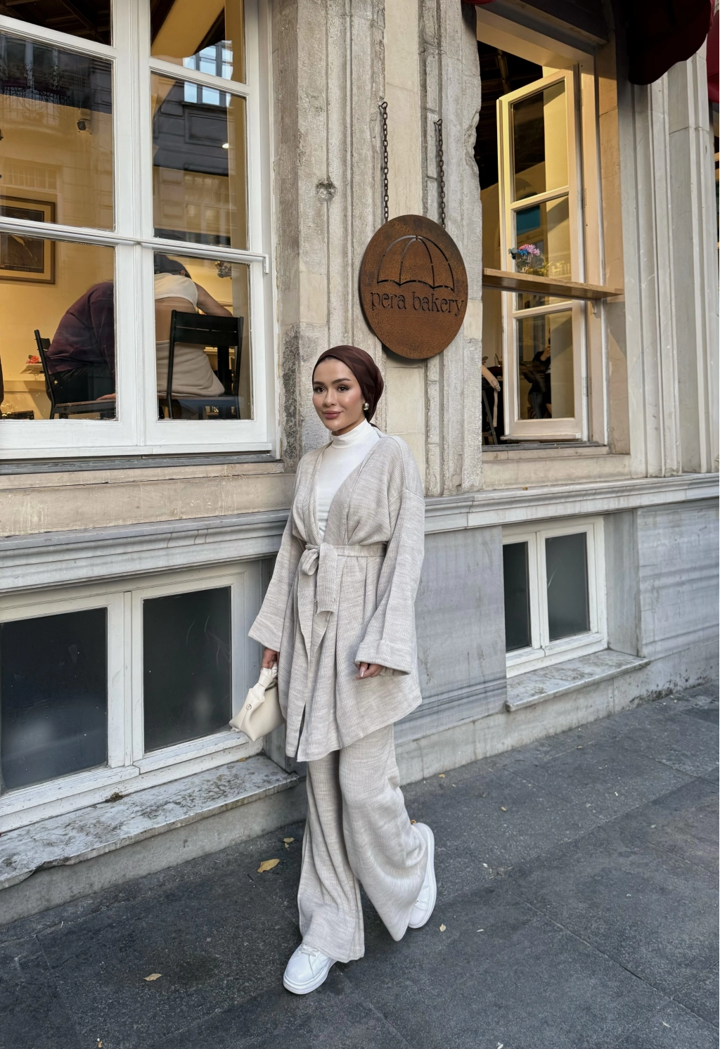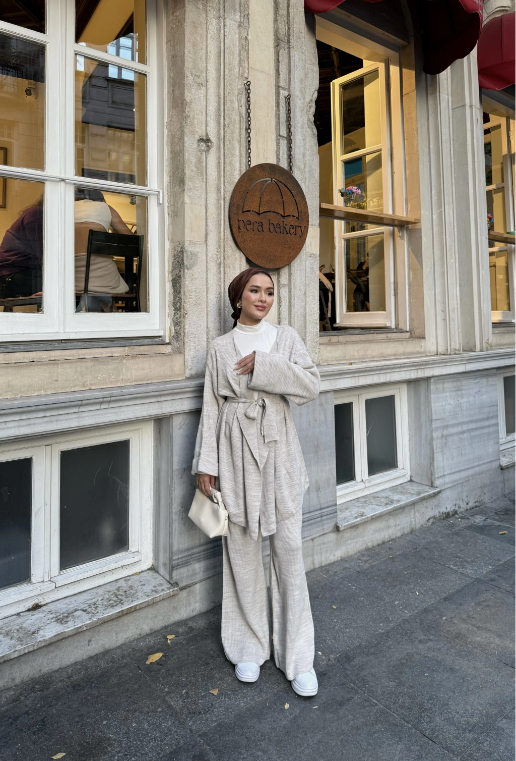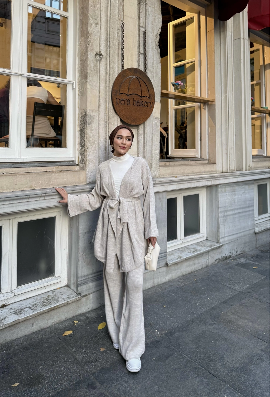 Kuşaklı Triko Takım - Bej