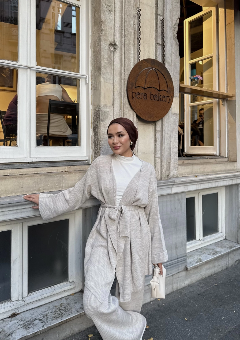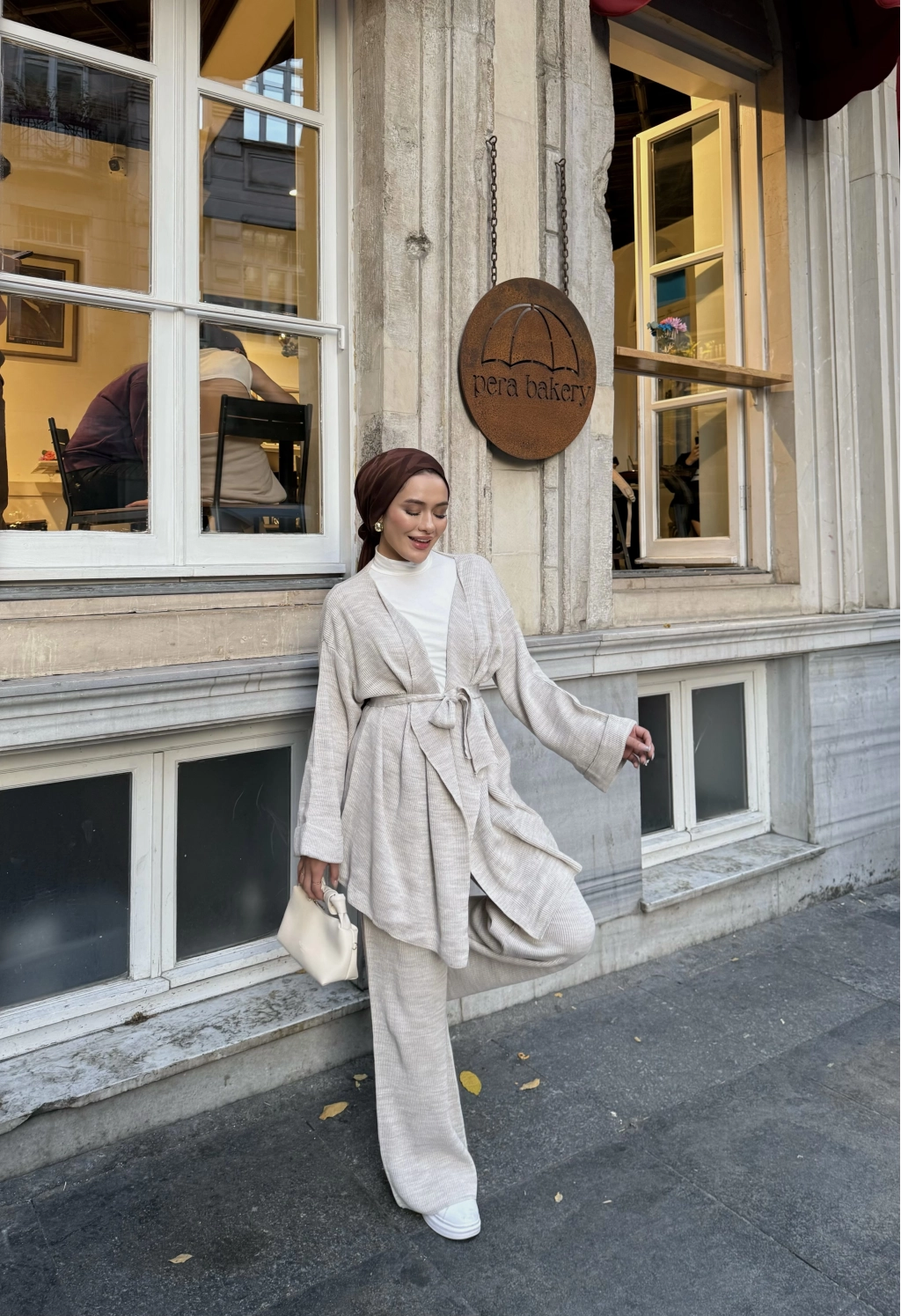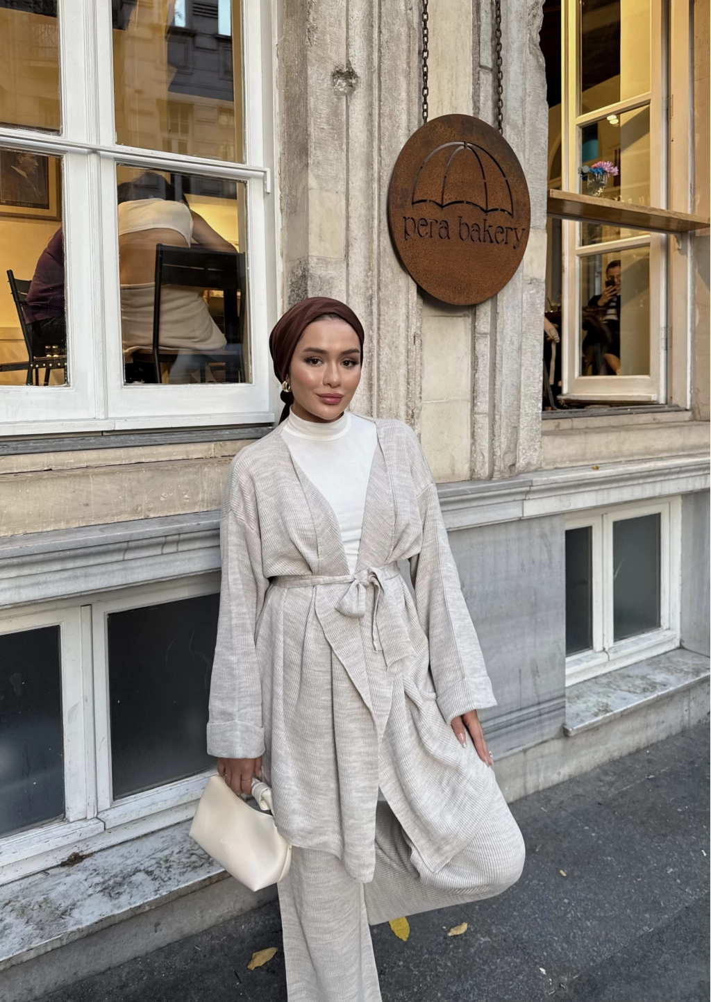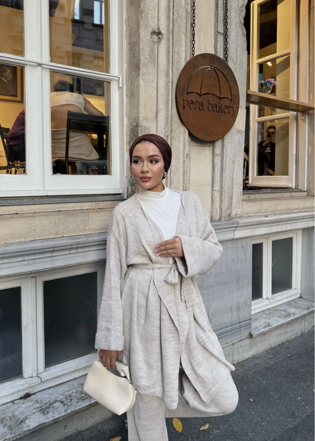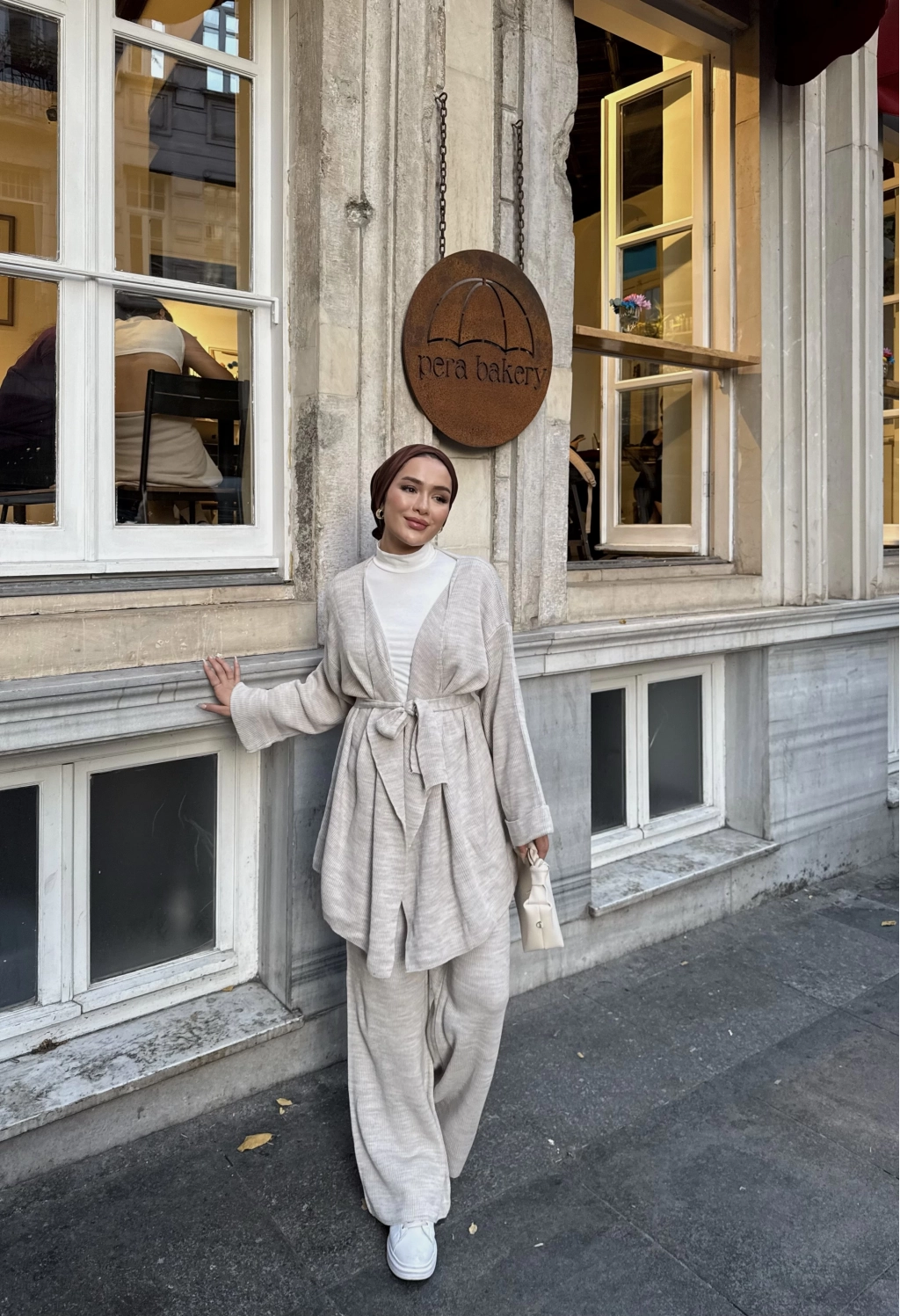 Kuşaklı Triko Takım - Bej