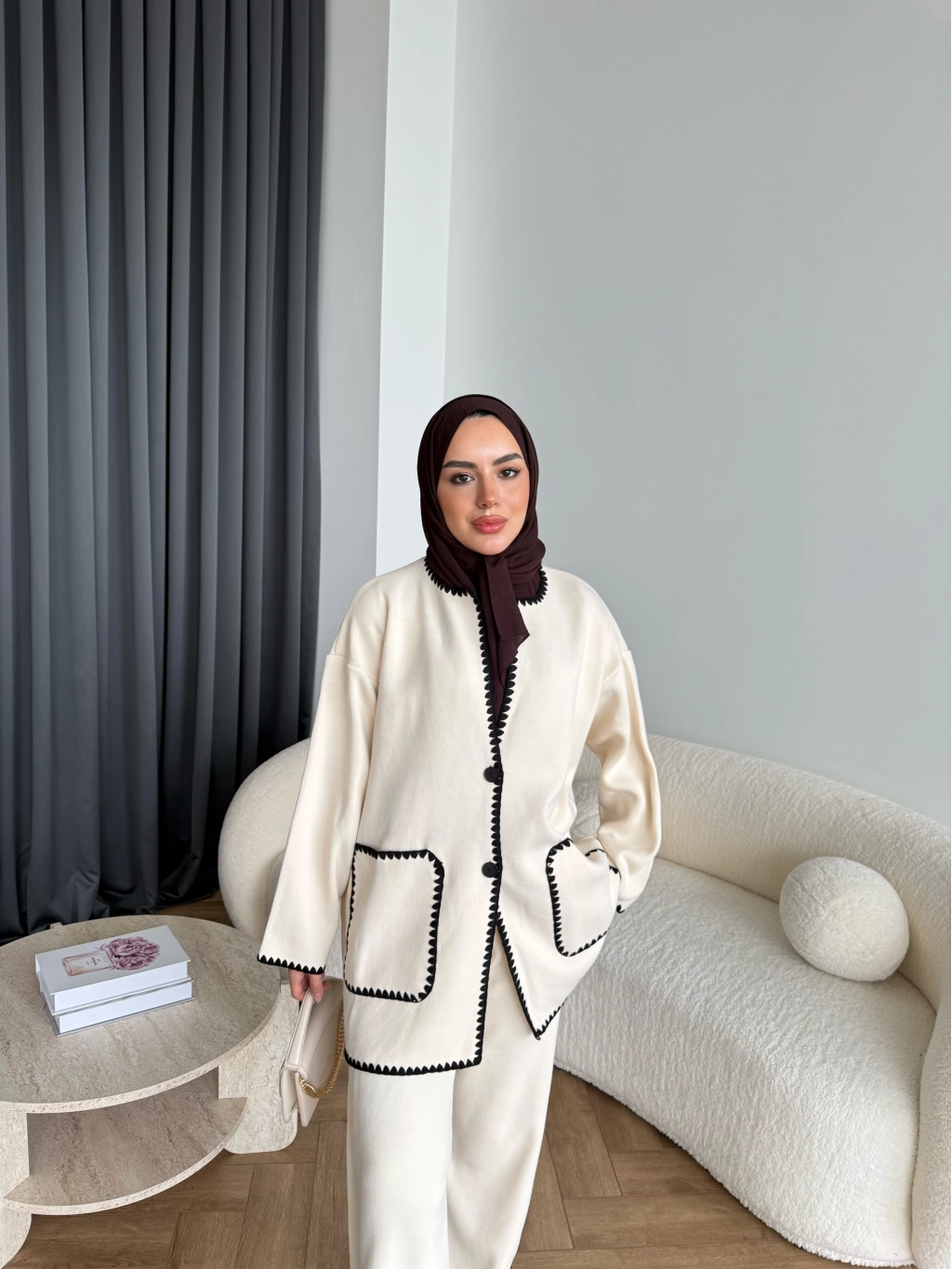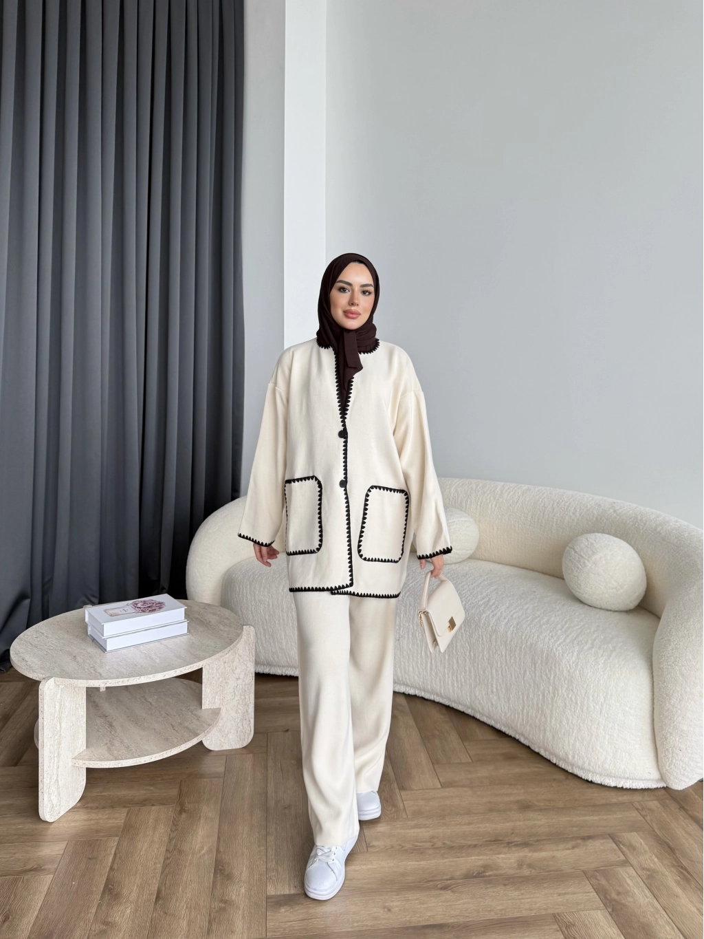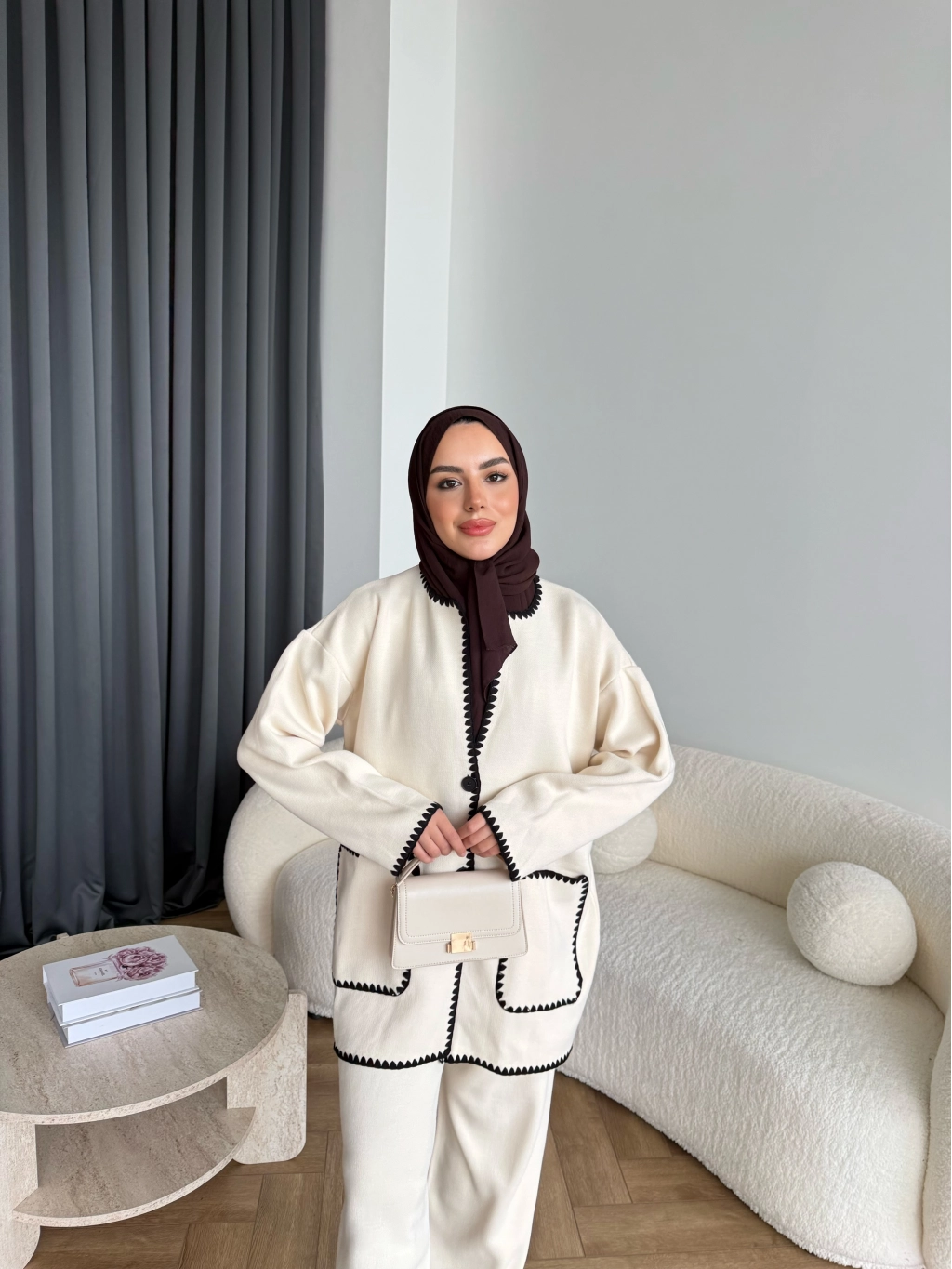 Kuzy Cepli Triko Takım - Bej