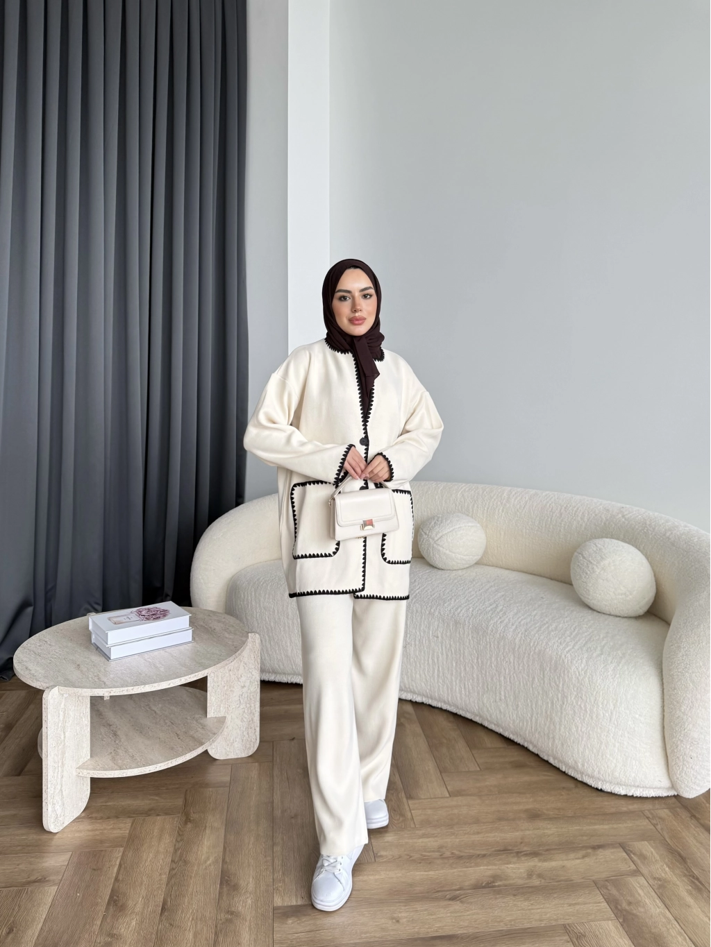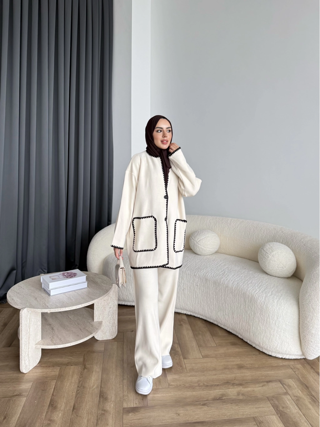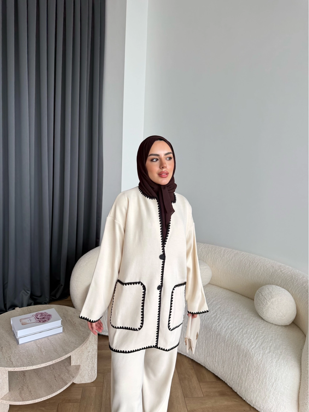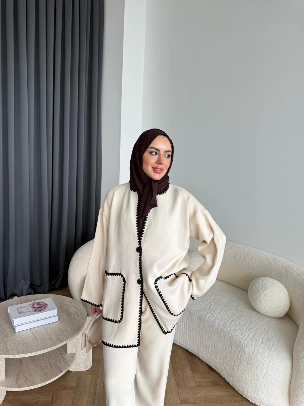 Kuzy Cepli Triko Takım - Bej