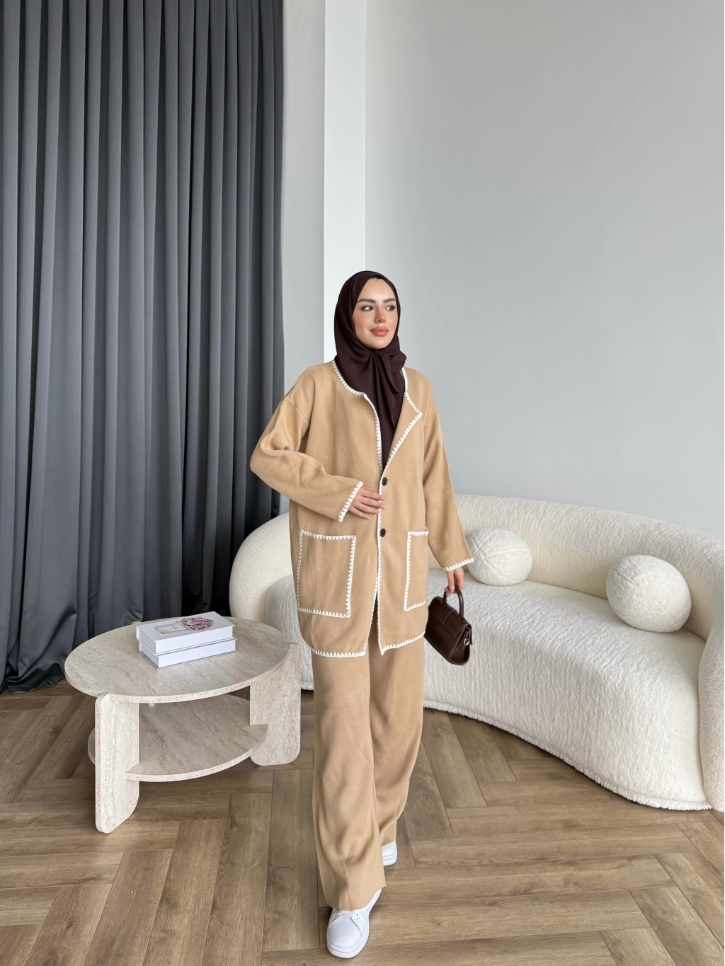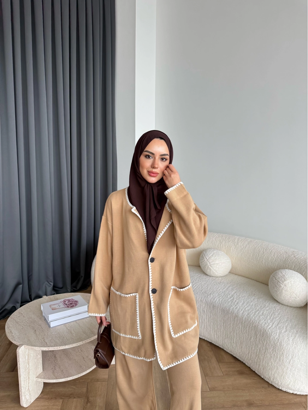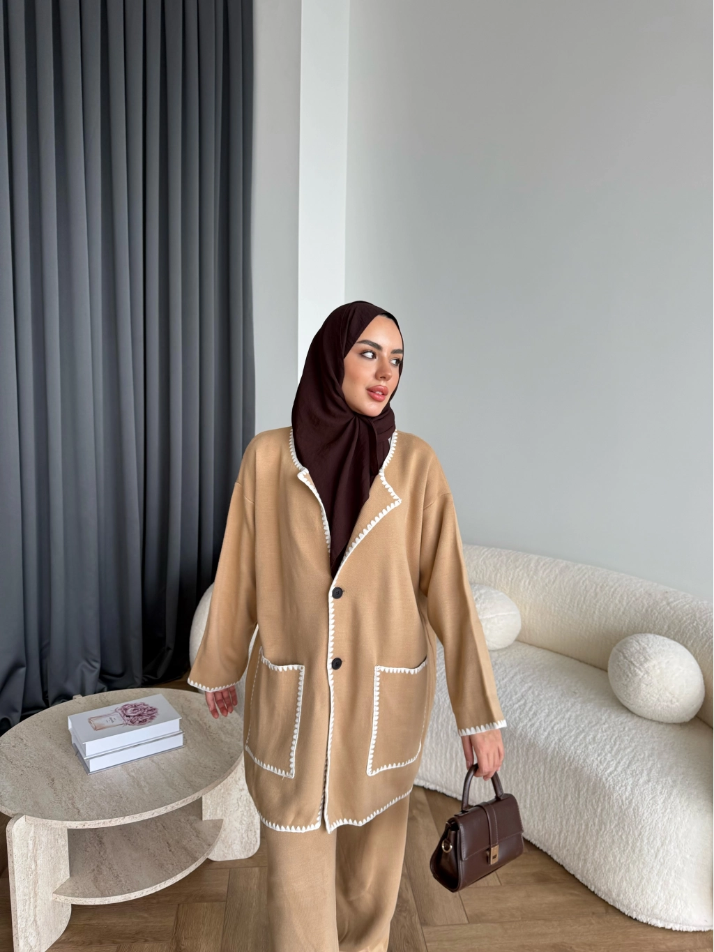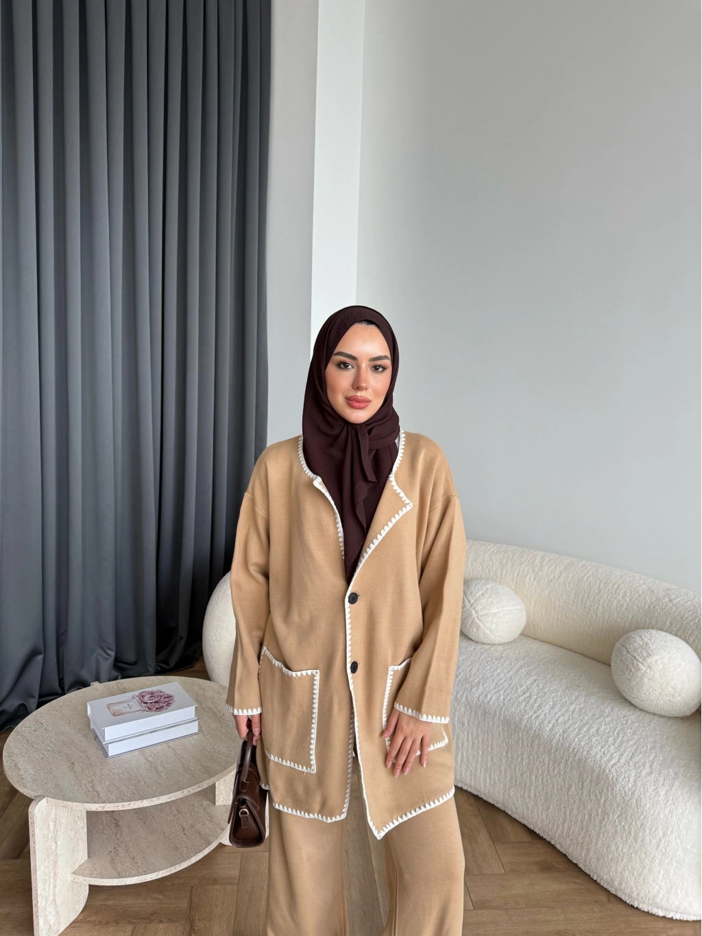Kuzy Cepli Triko Takım - Camel