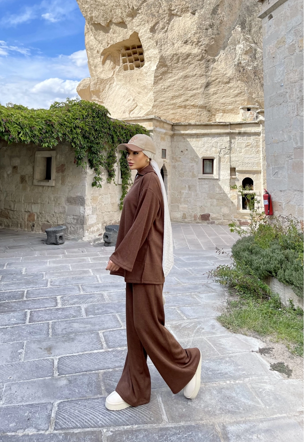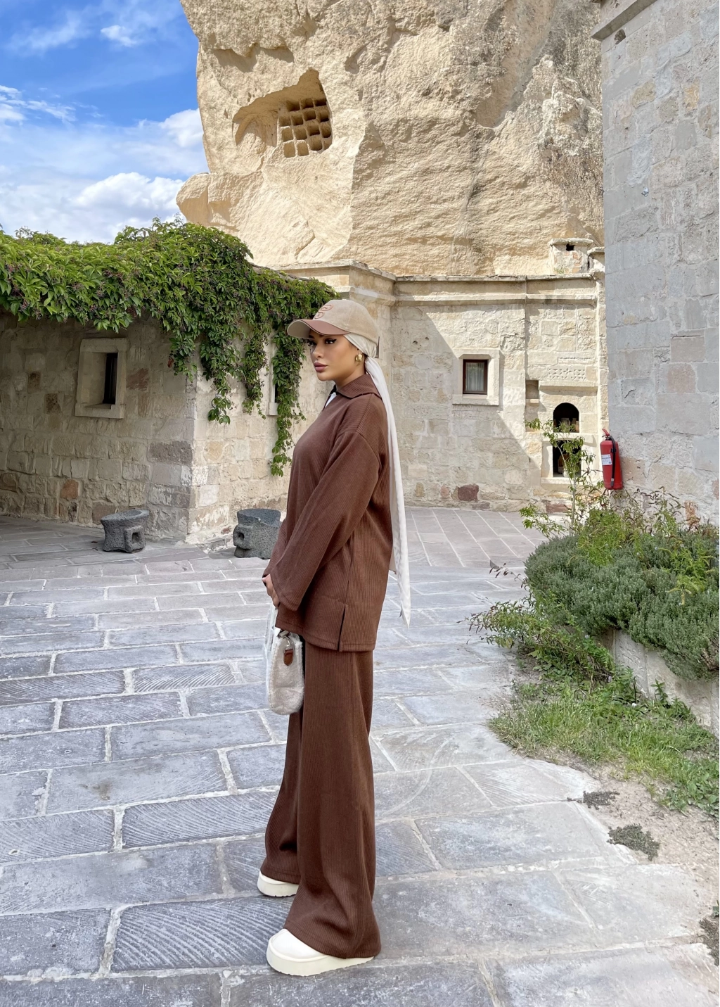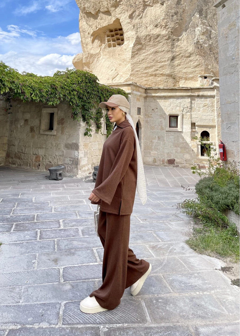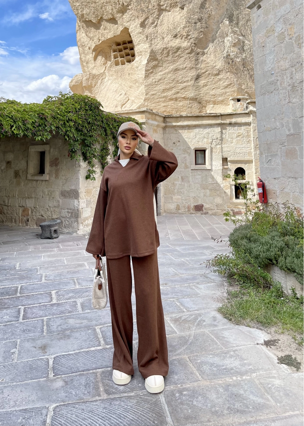 Mb - Atkı Örgü Etekli Takım - Acı Kahve