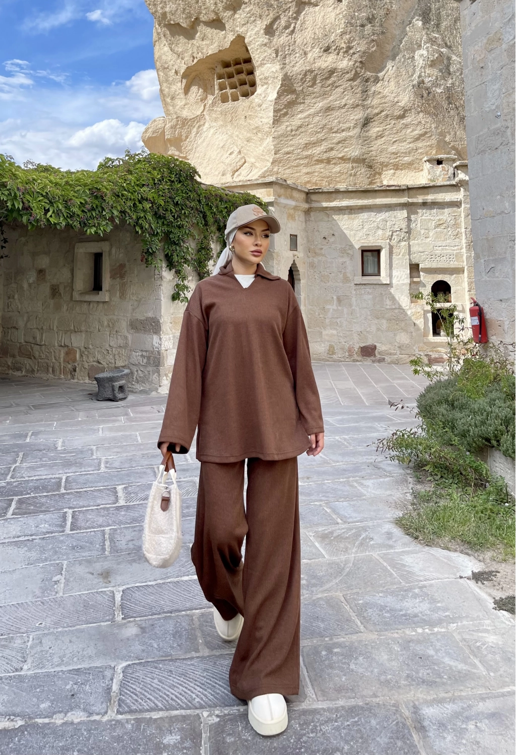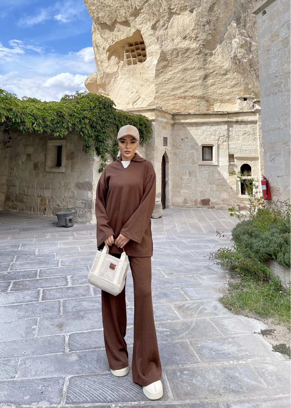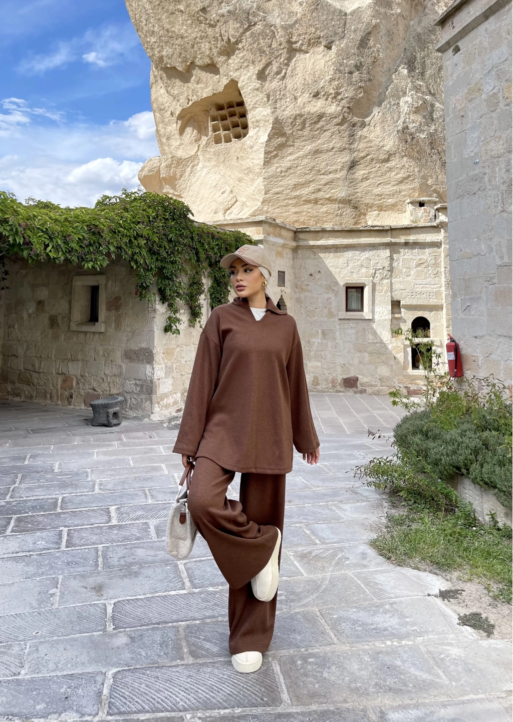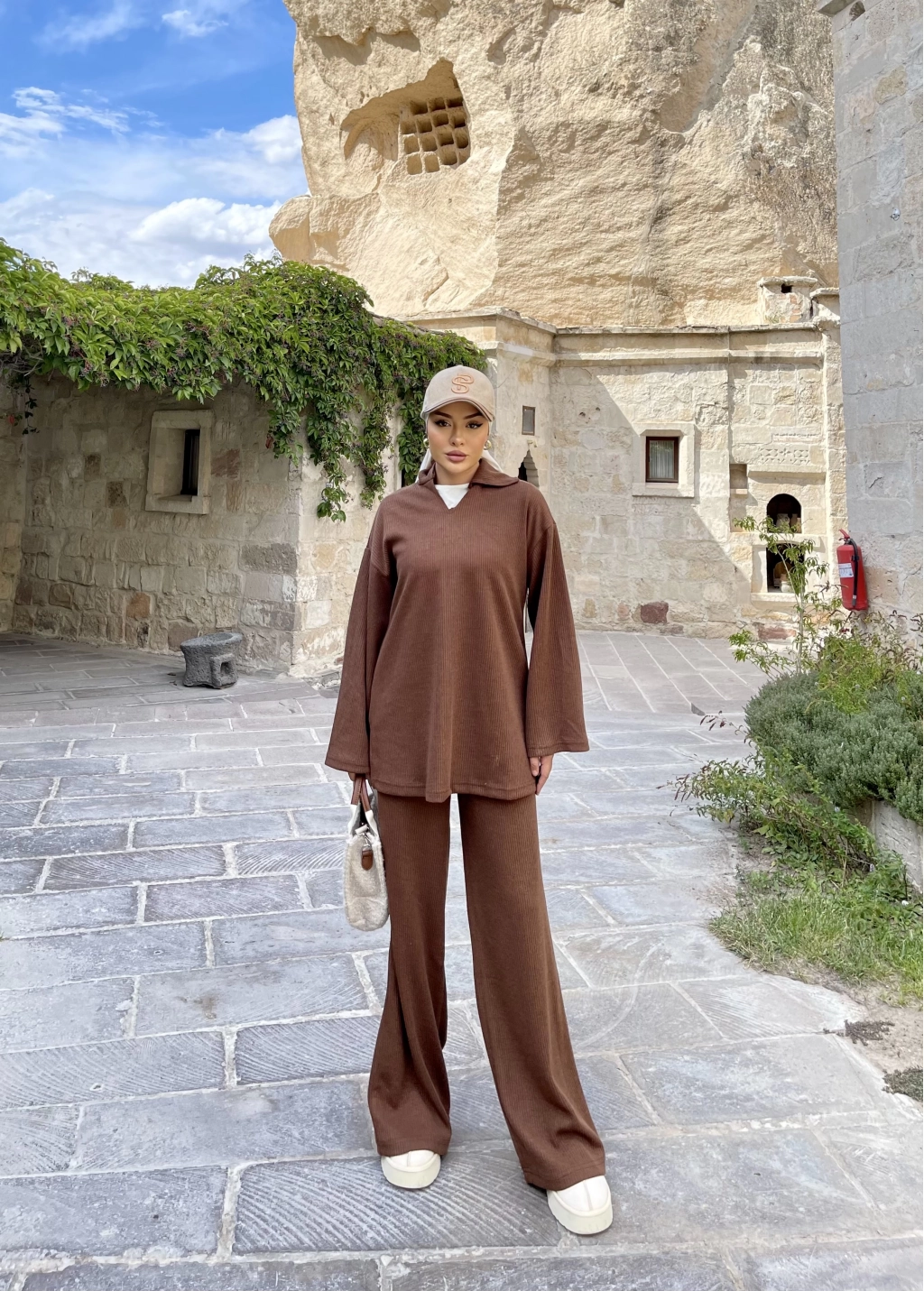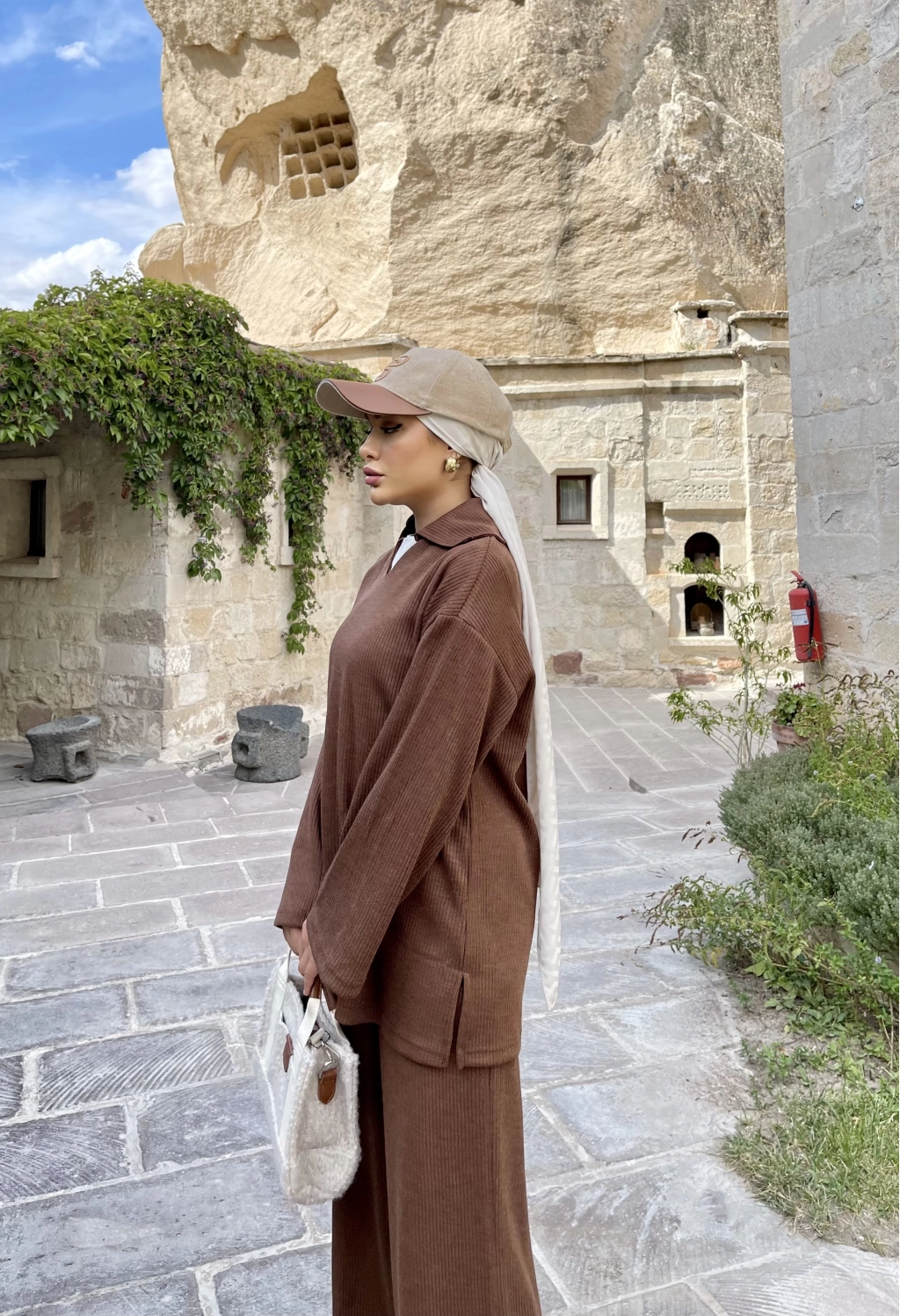 Mb - Atkı Örgü Etekli Takım - Acı Kahve