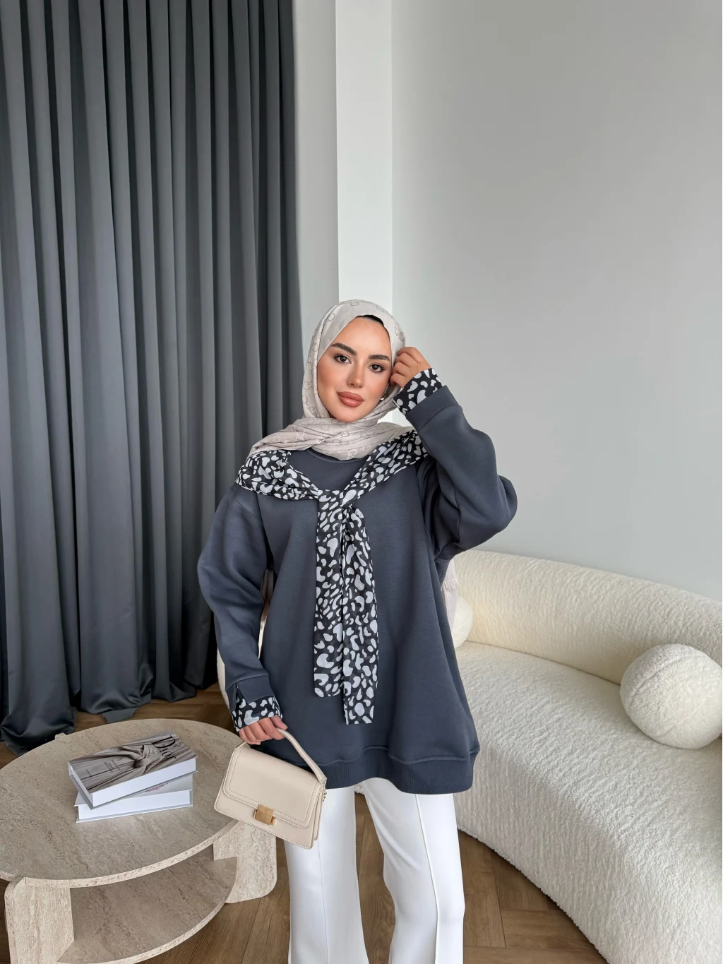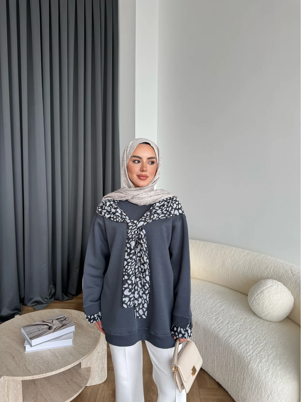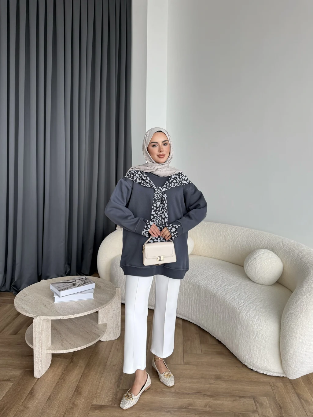 Yanı Kesik Paça Scuba Pantolon - Gri