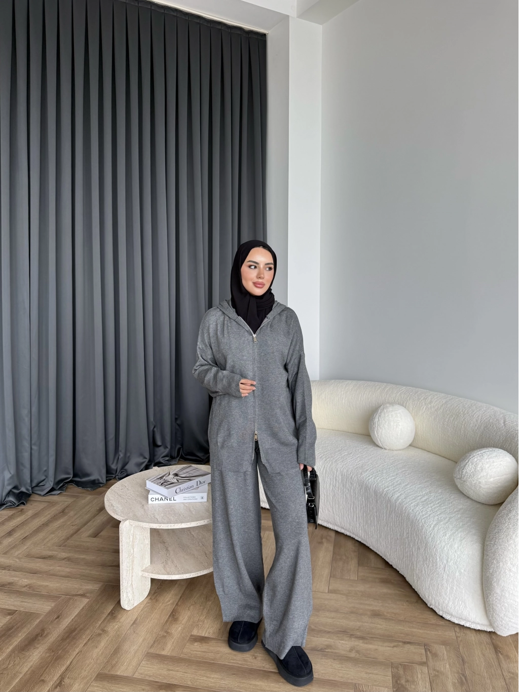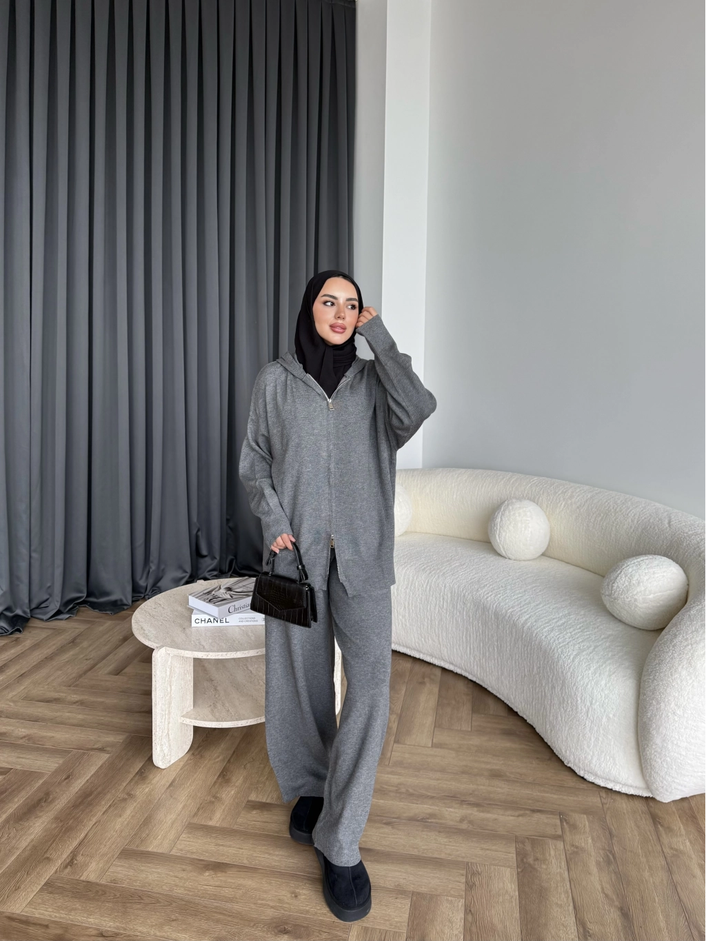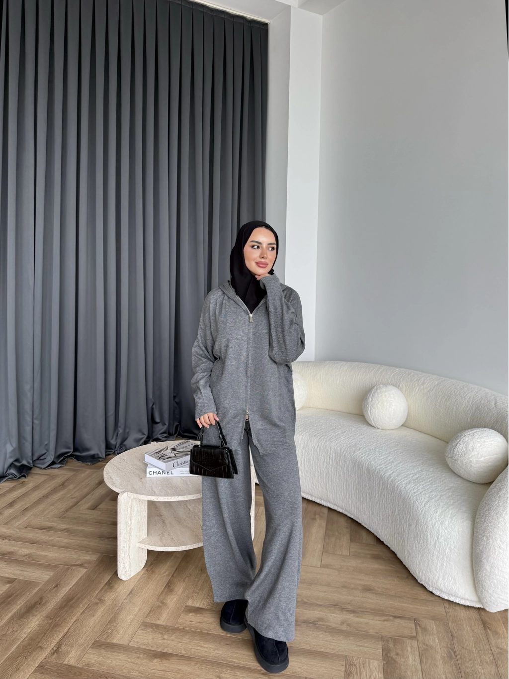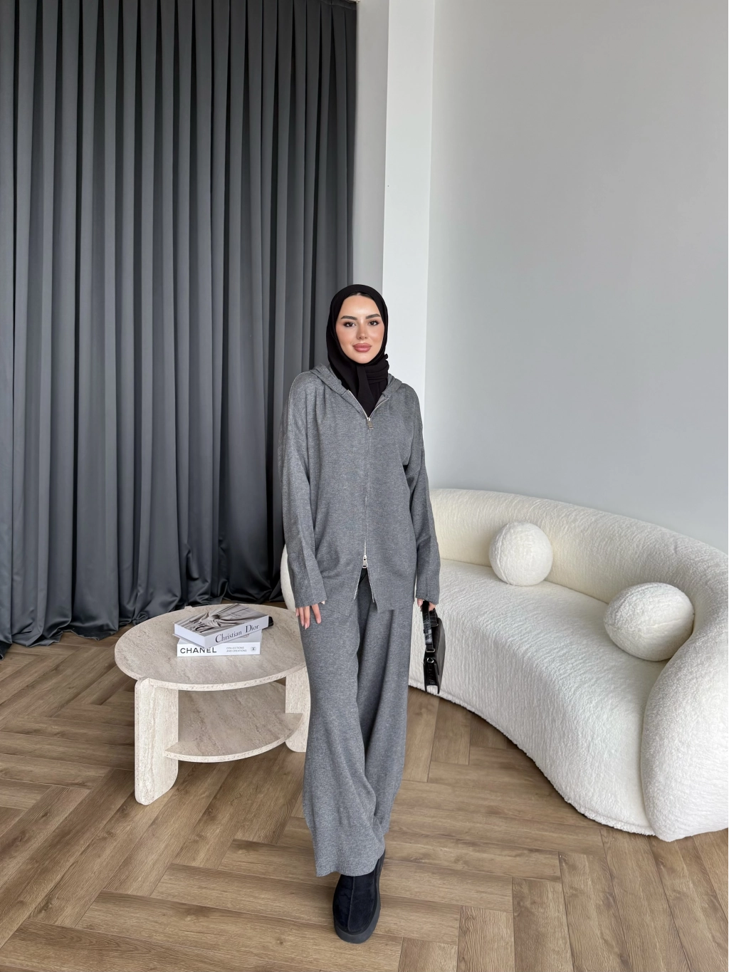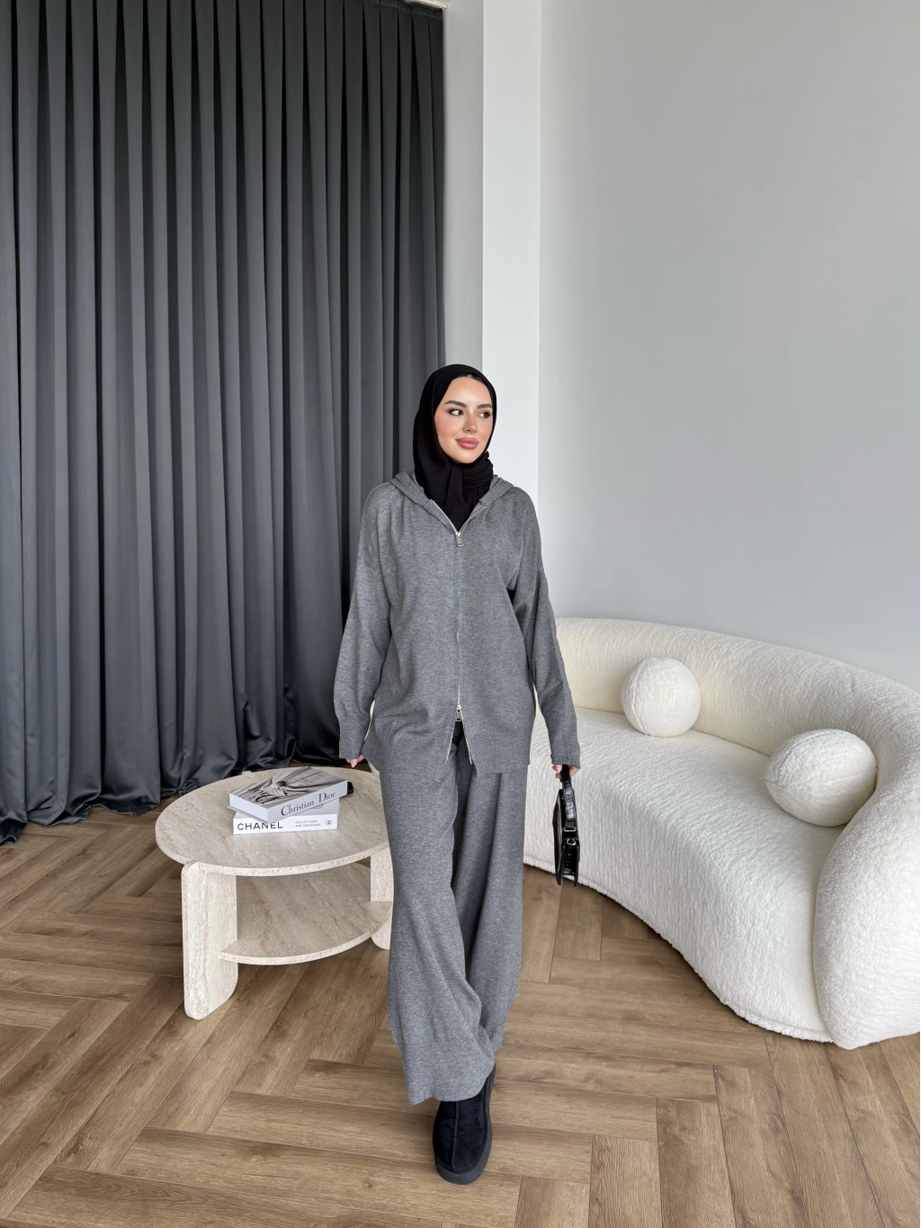 Leyans Fermuarlı Takım - Gri