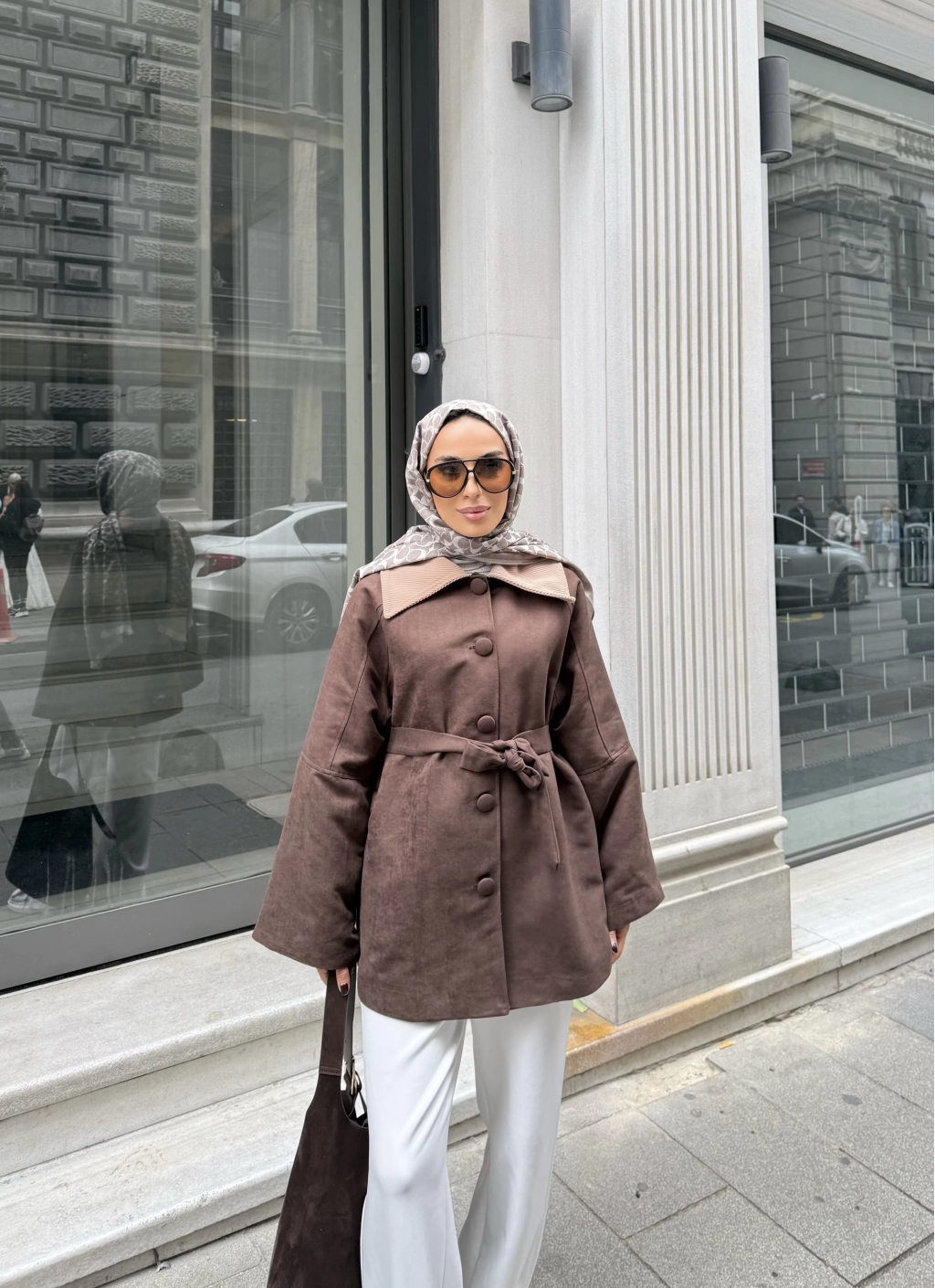 Lezya Yaka Detay Ceket - Acı Kahve