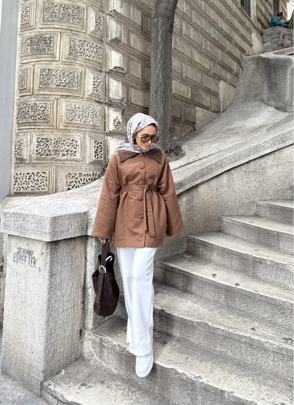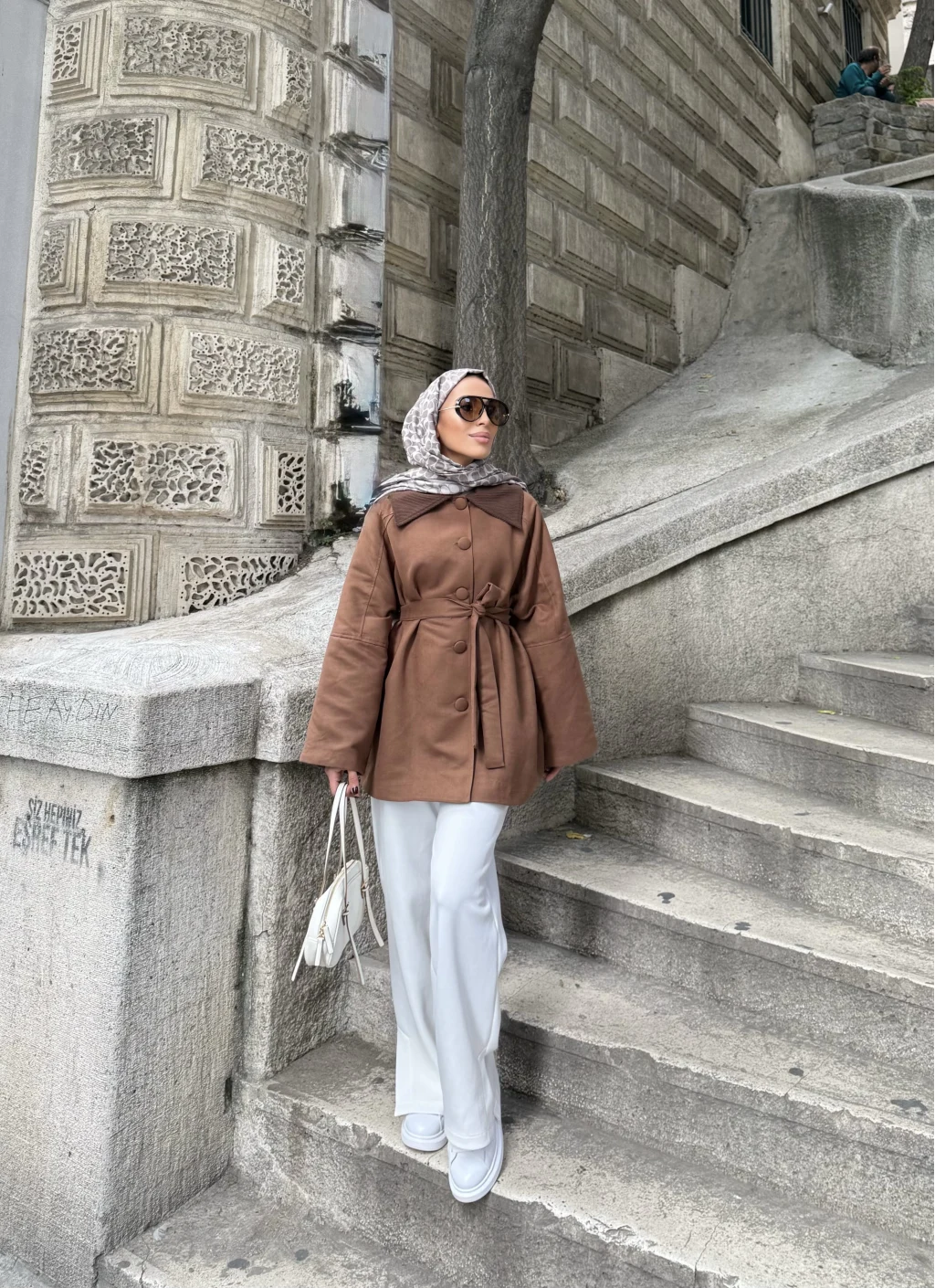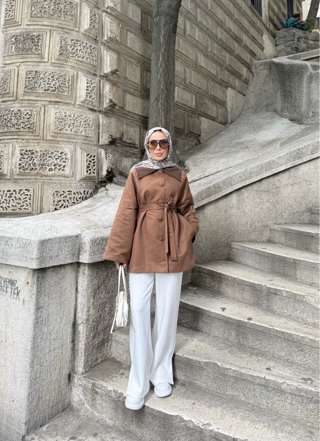 Polo Yaka Örgü Triko Takım - Acı Kahve