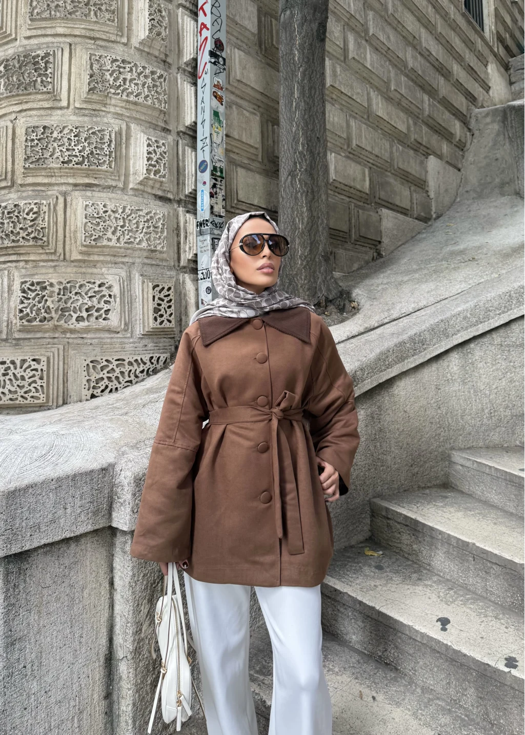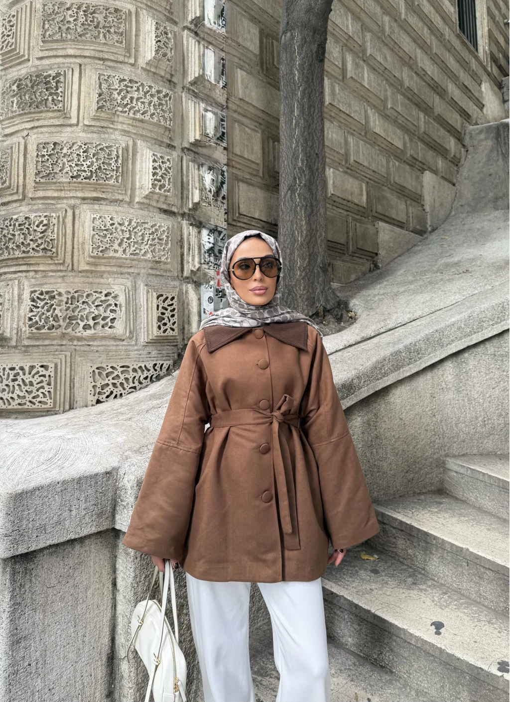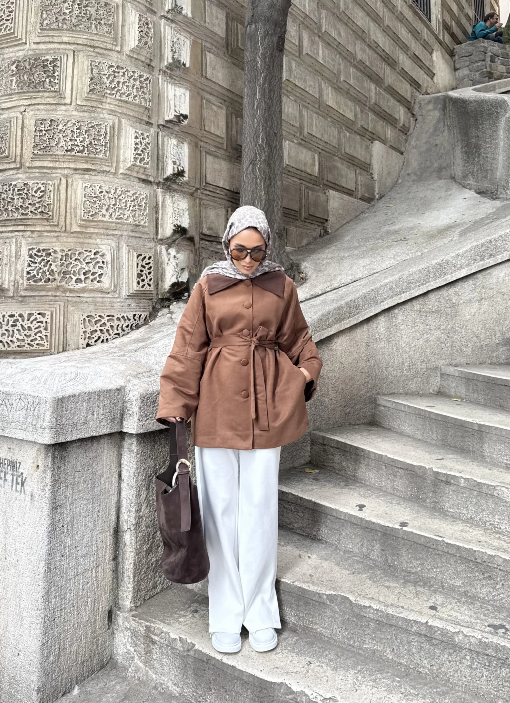 Polo Yaka Örgü Triko Takım - Acı Kahve
