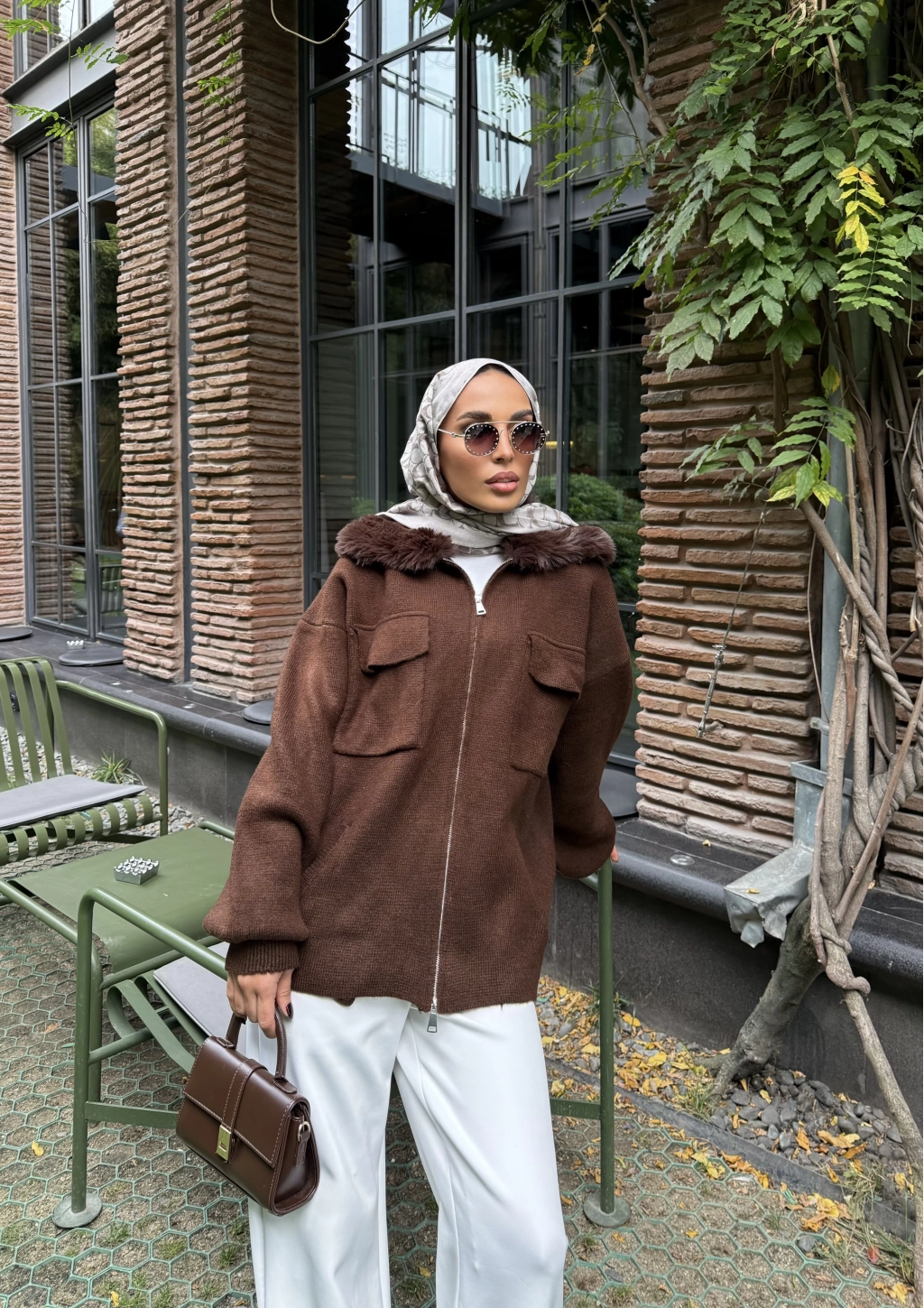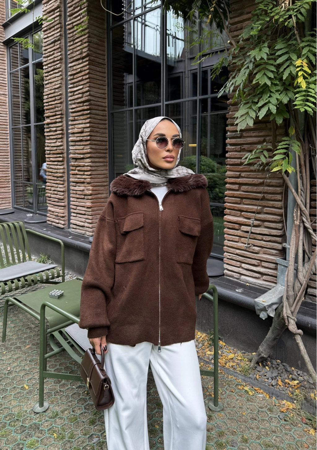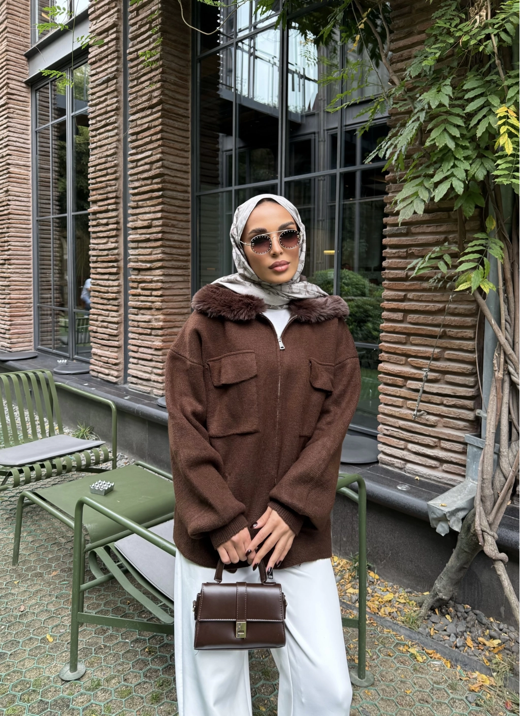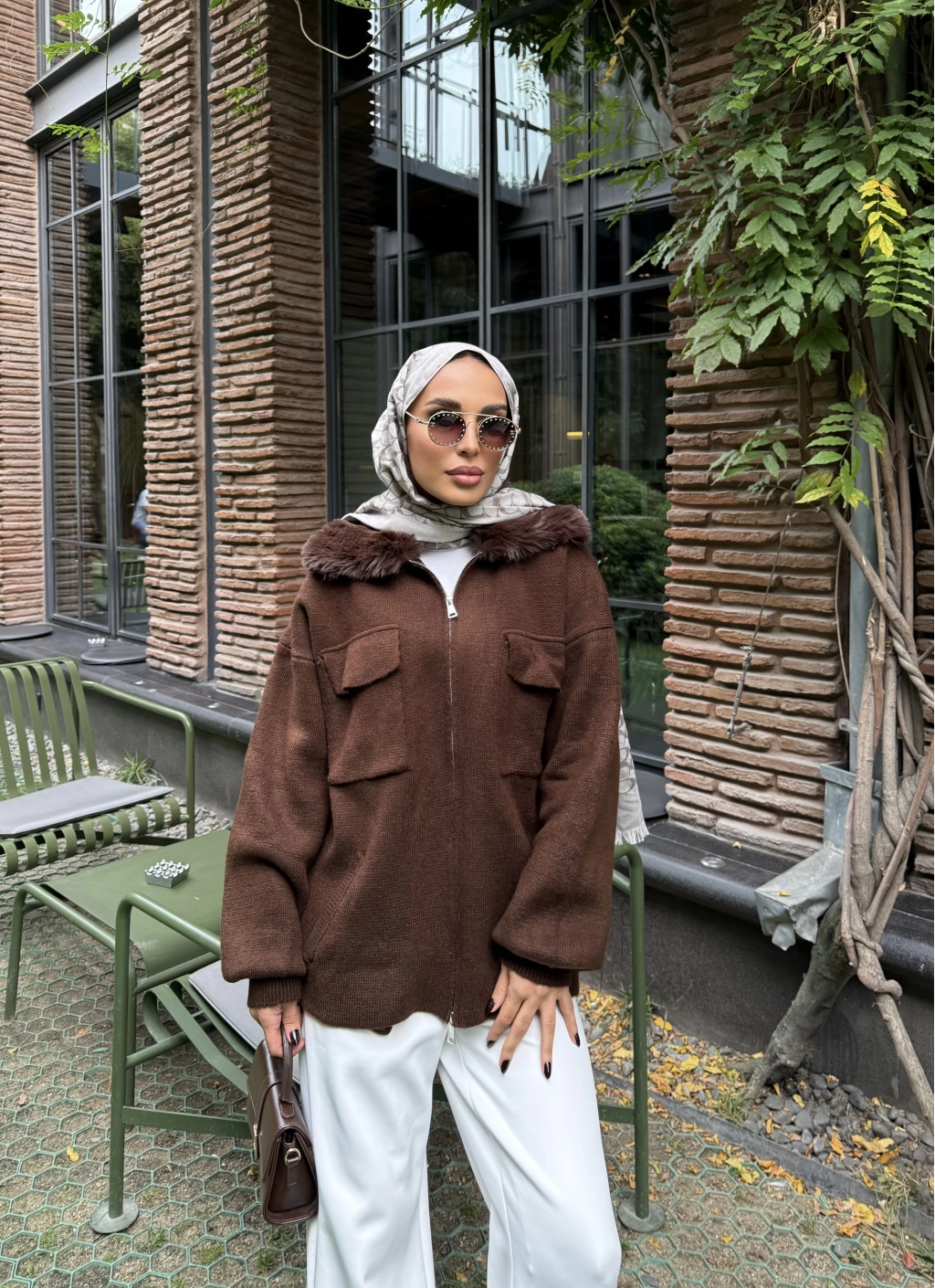Loris Kürk Detaylı Triko Kap - Acı Kahve
