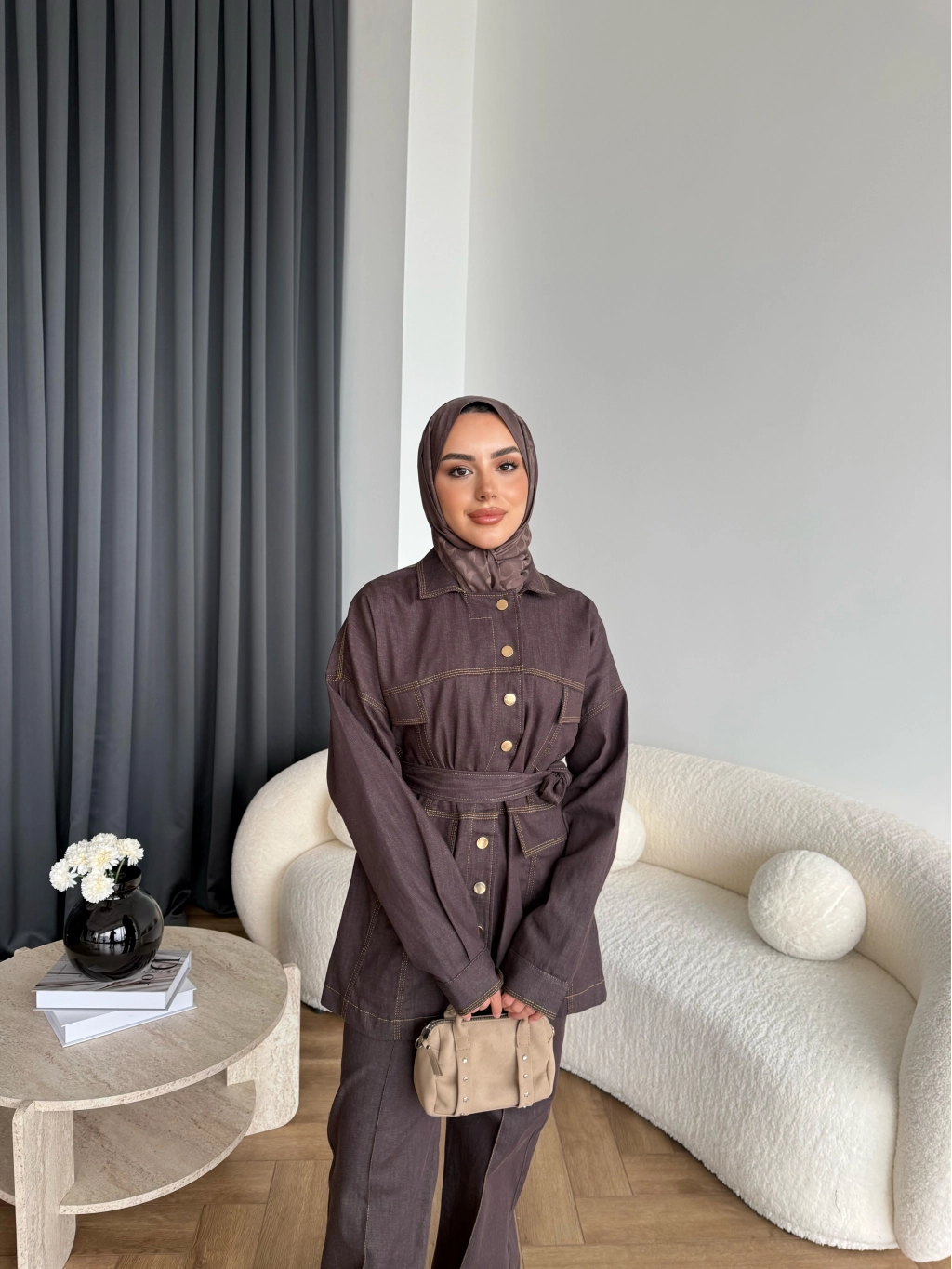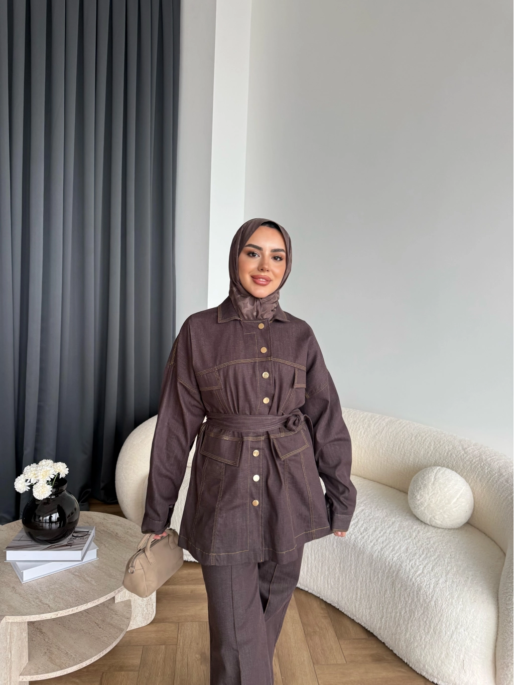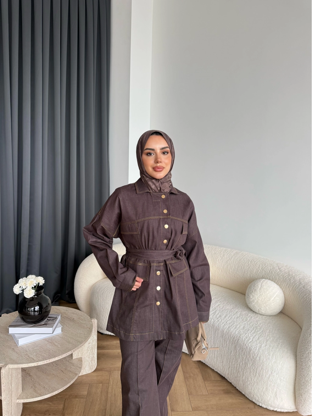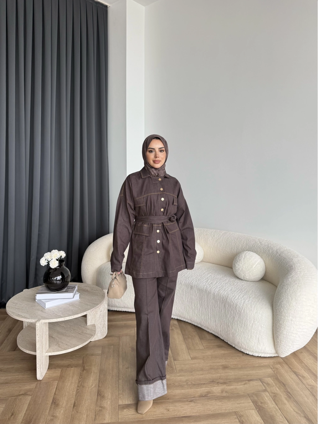 Duq - Gofre Çizgili Takım - Kahve