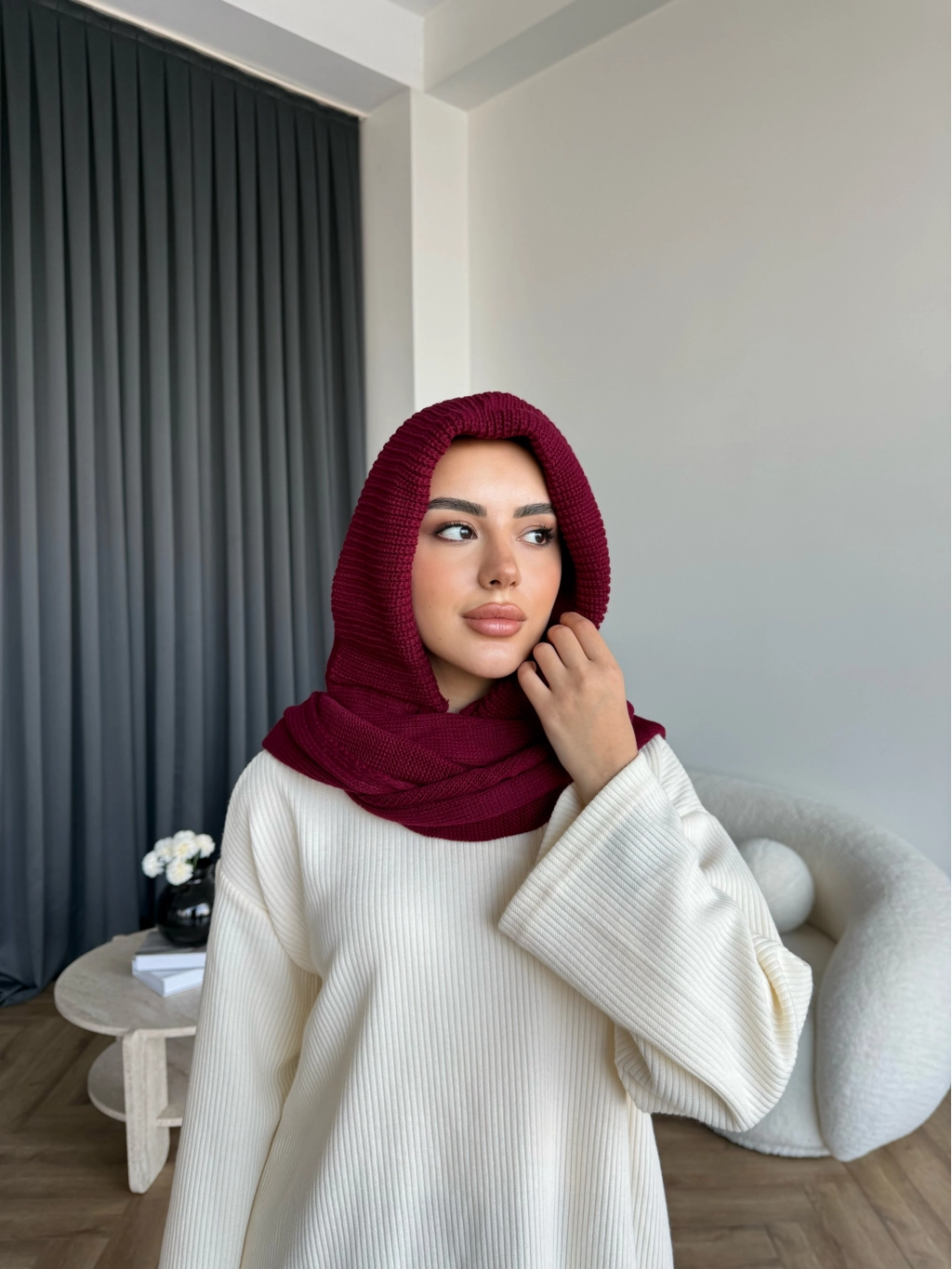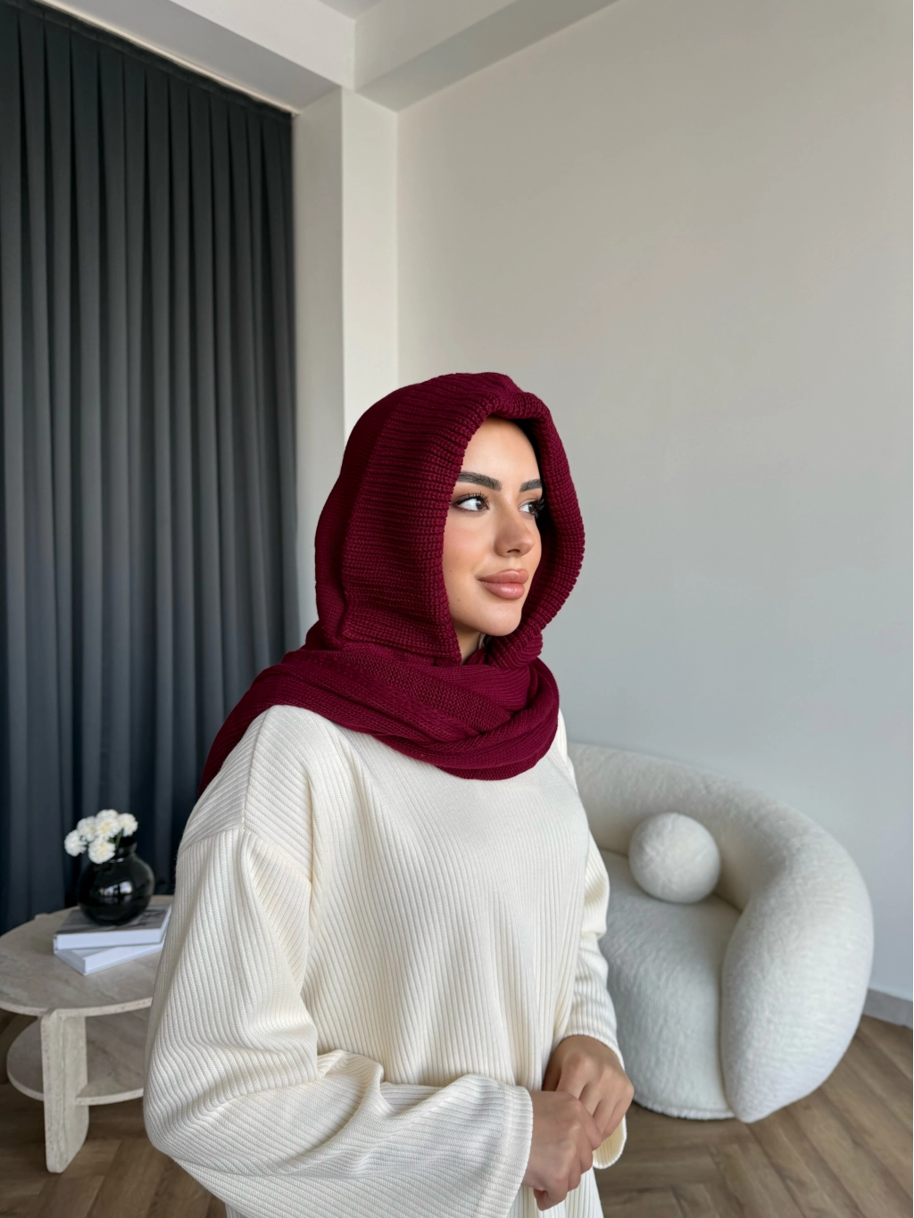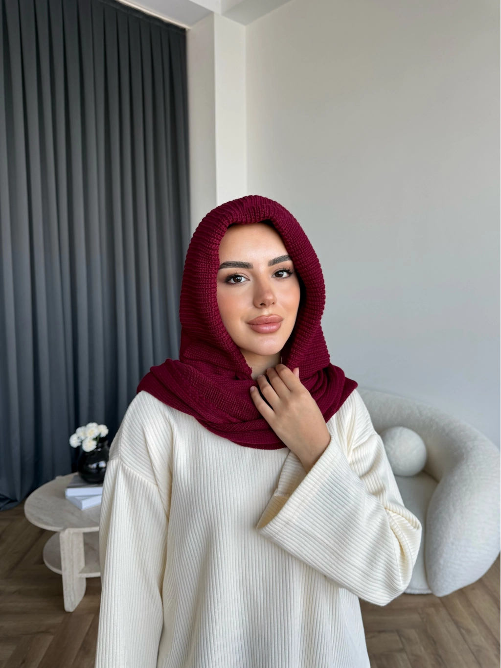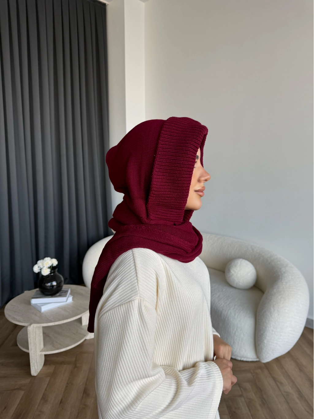 Mb - Balaklava Kapişonlu Bere - Bordo