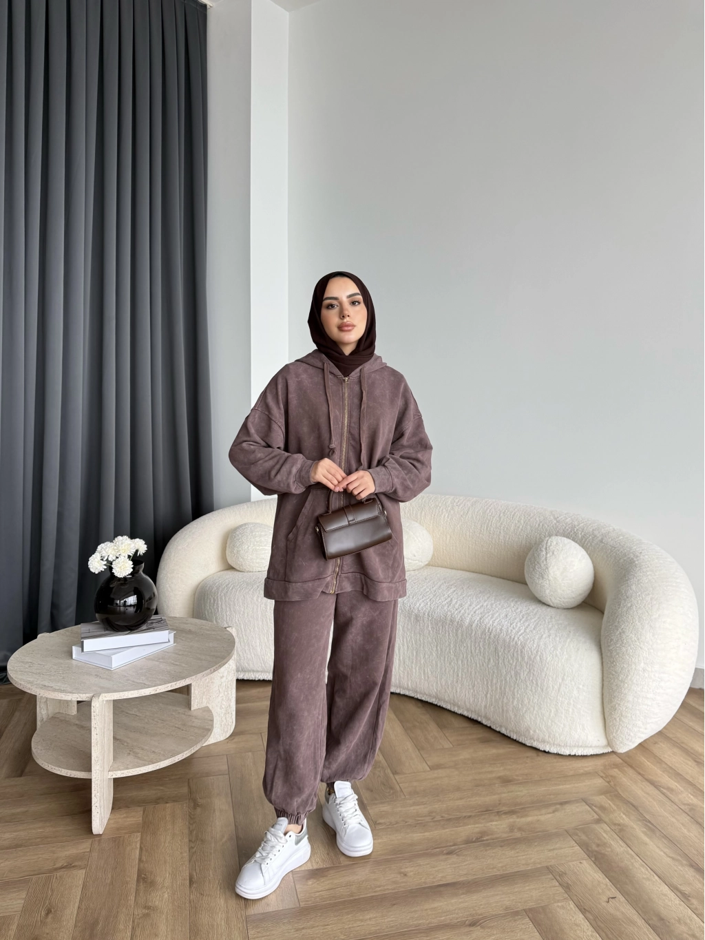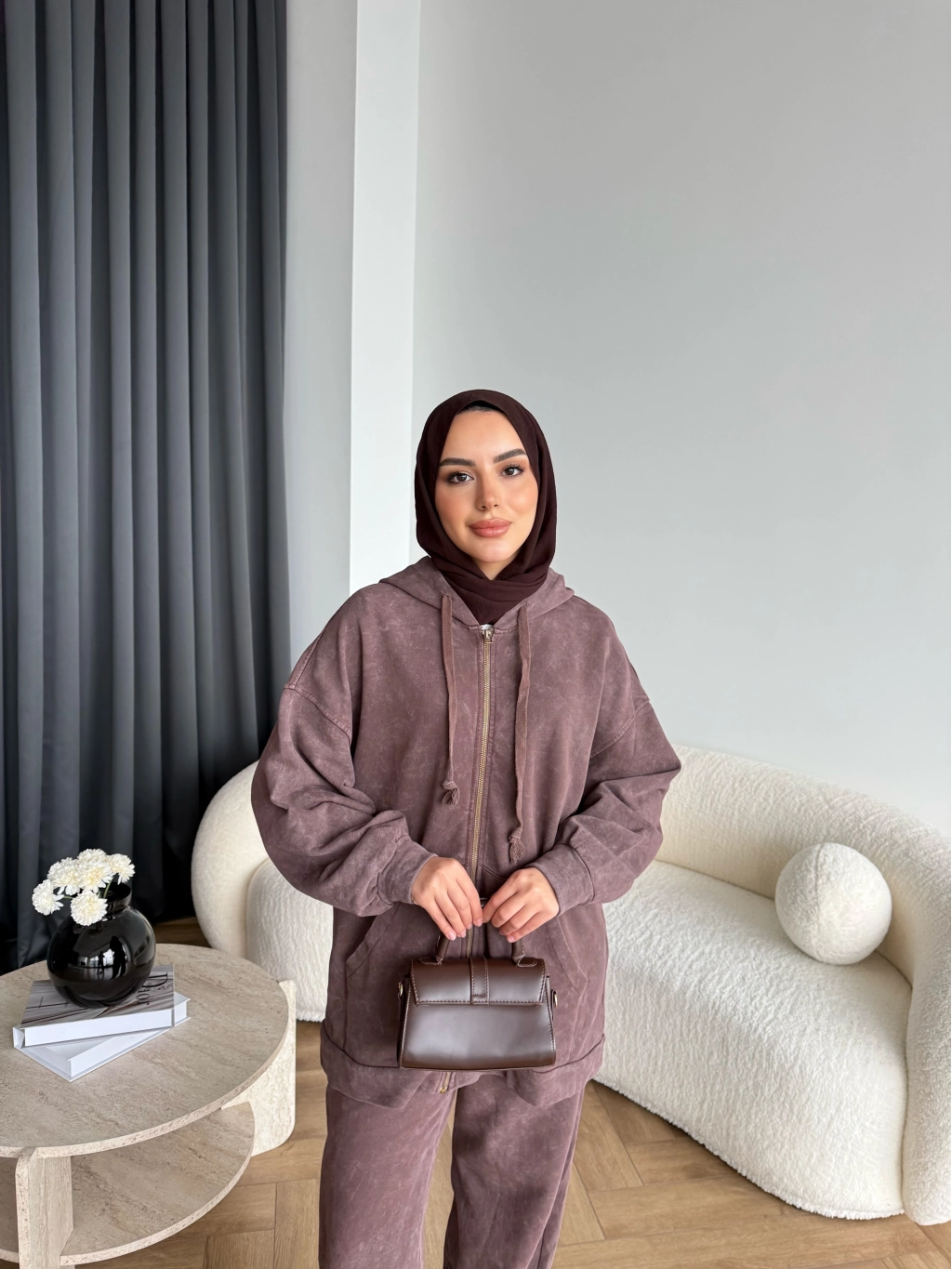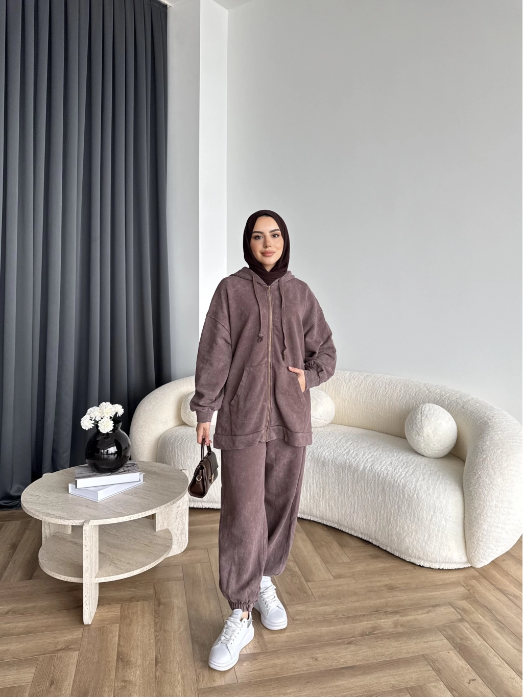 Mb - Fermuar Detay Yıkamalı Takım - Kahve