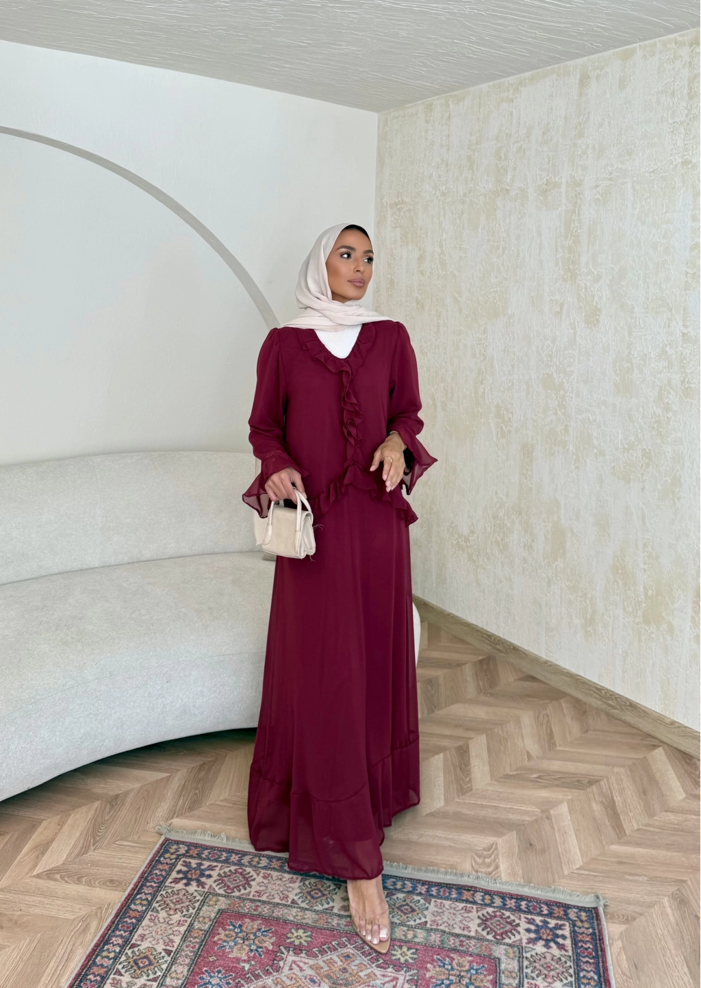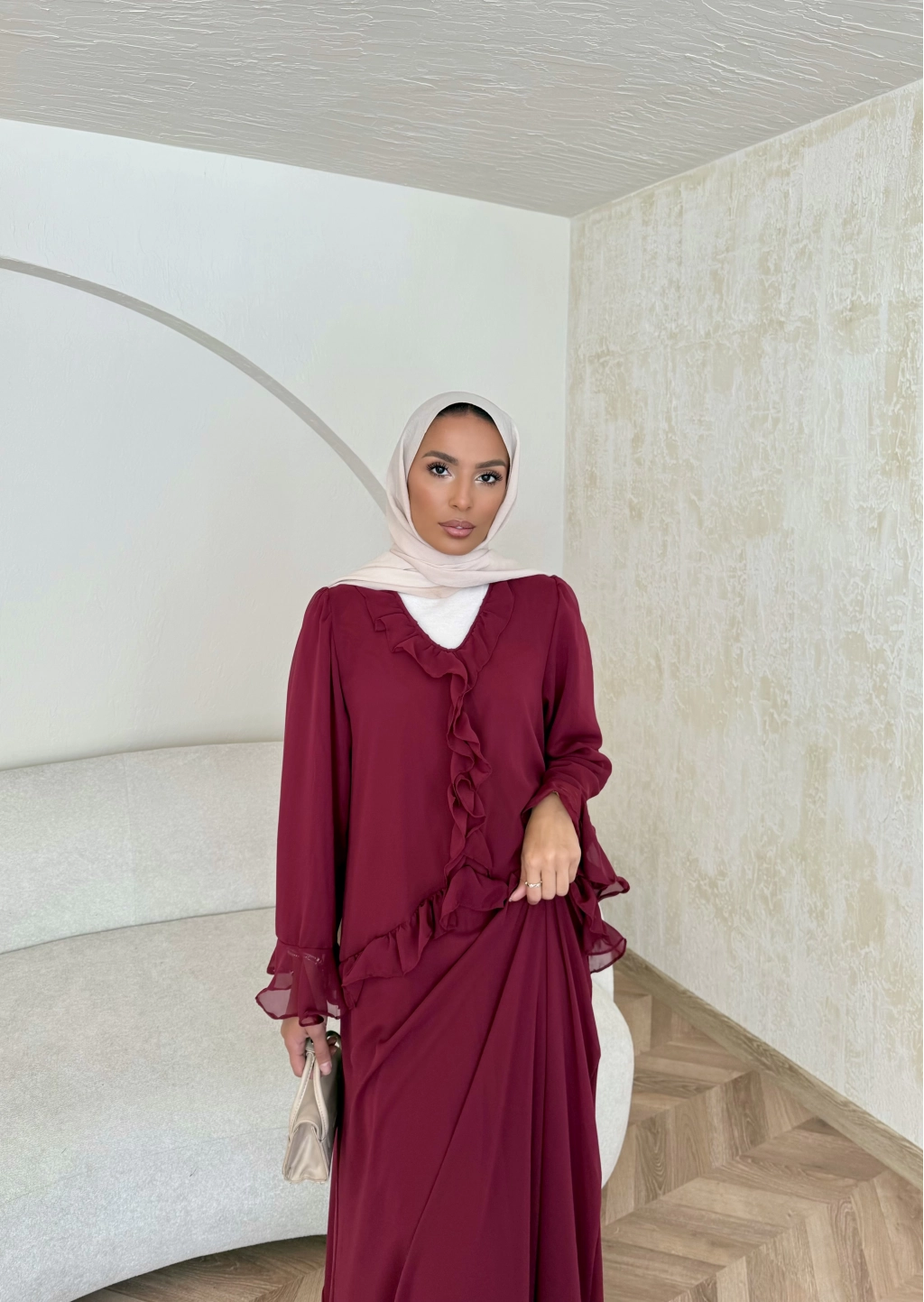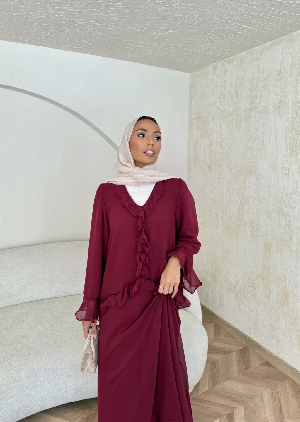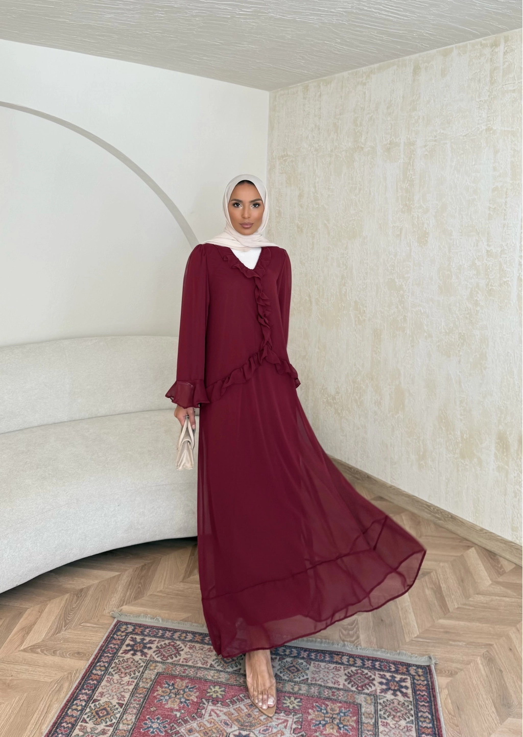 Meslen Şifon Elbise - Bordo