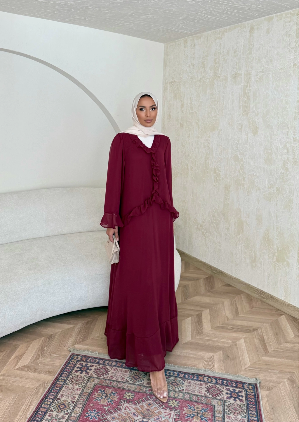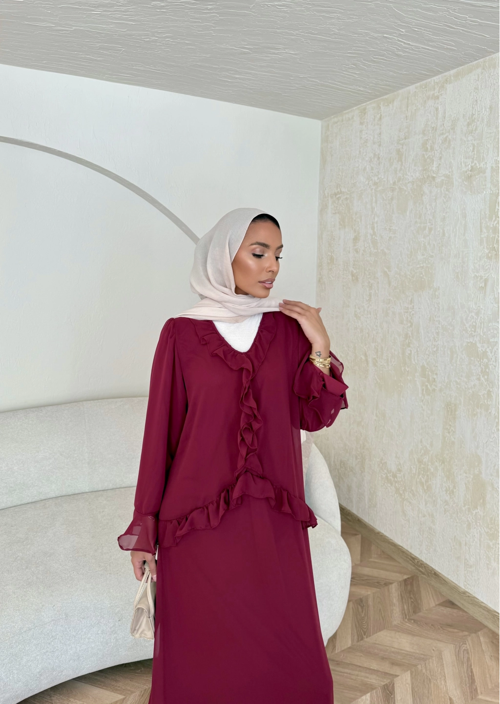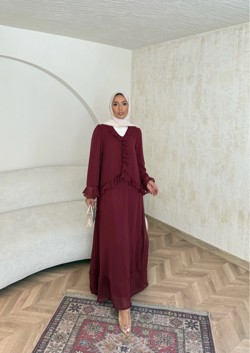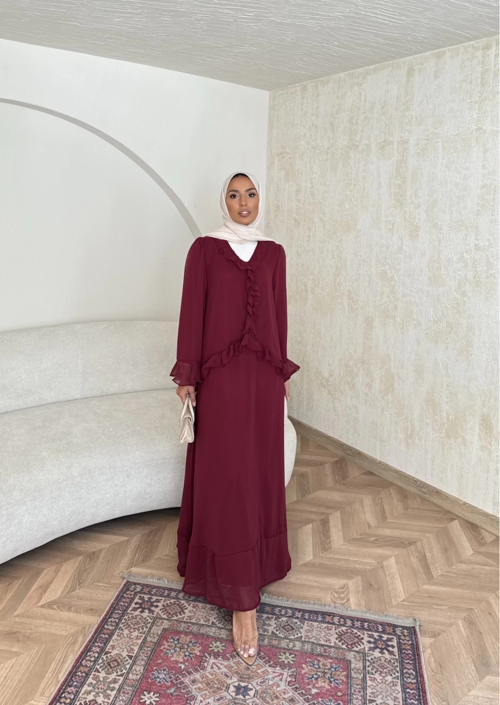 Meslen Şifon Elbise - Bordo