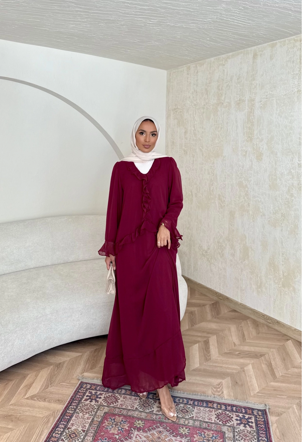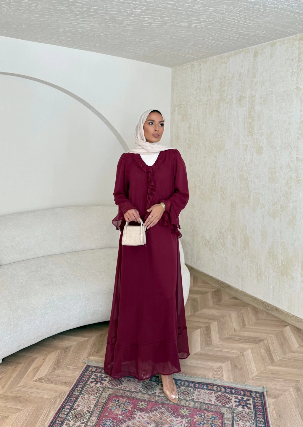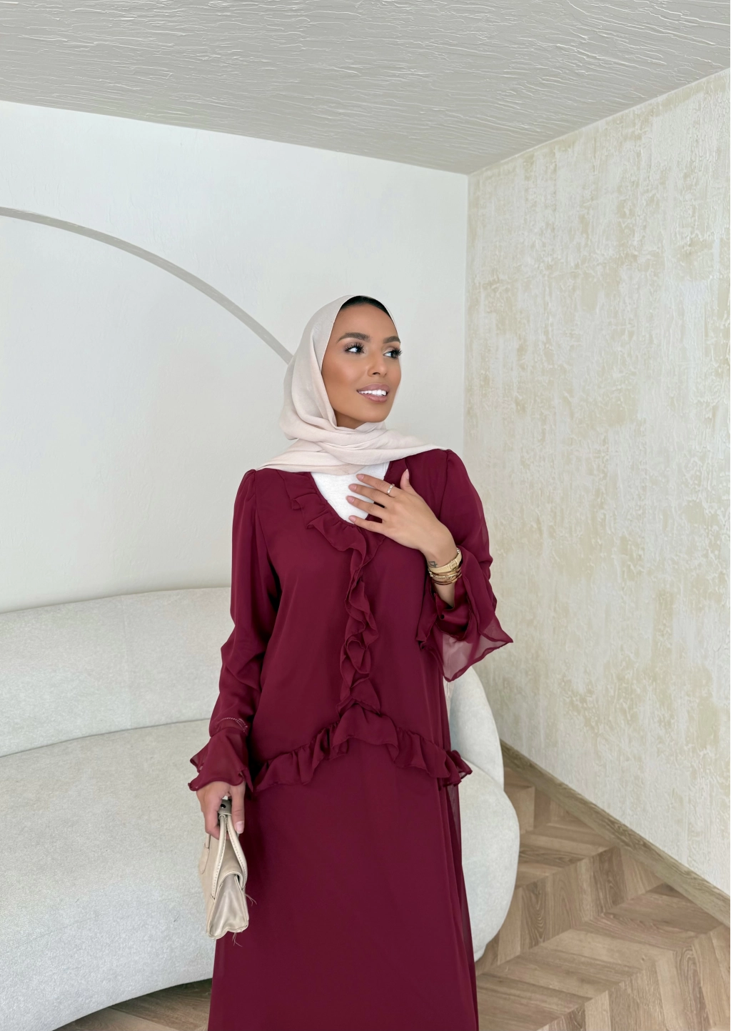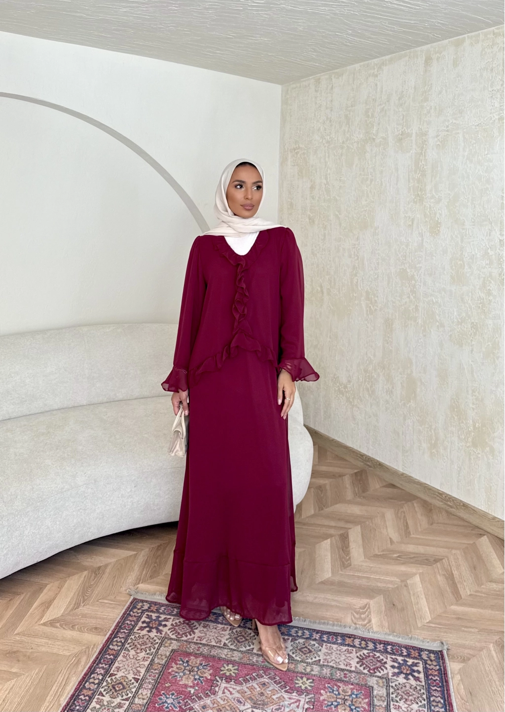 Meslen Şifon Elbise - Bordo