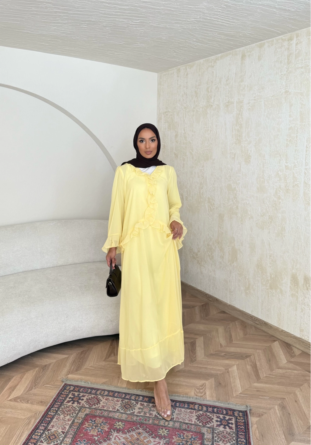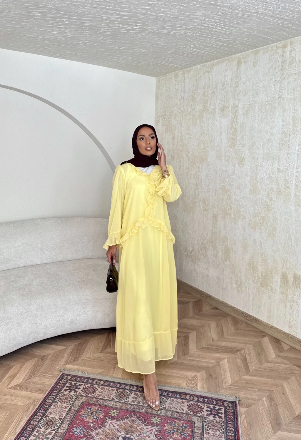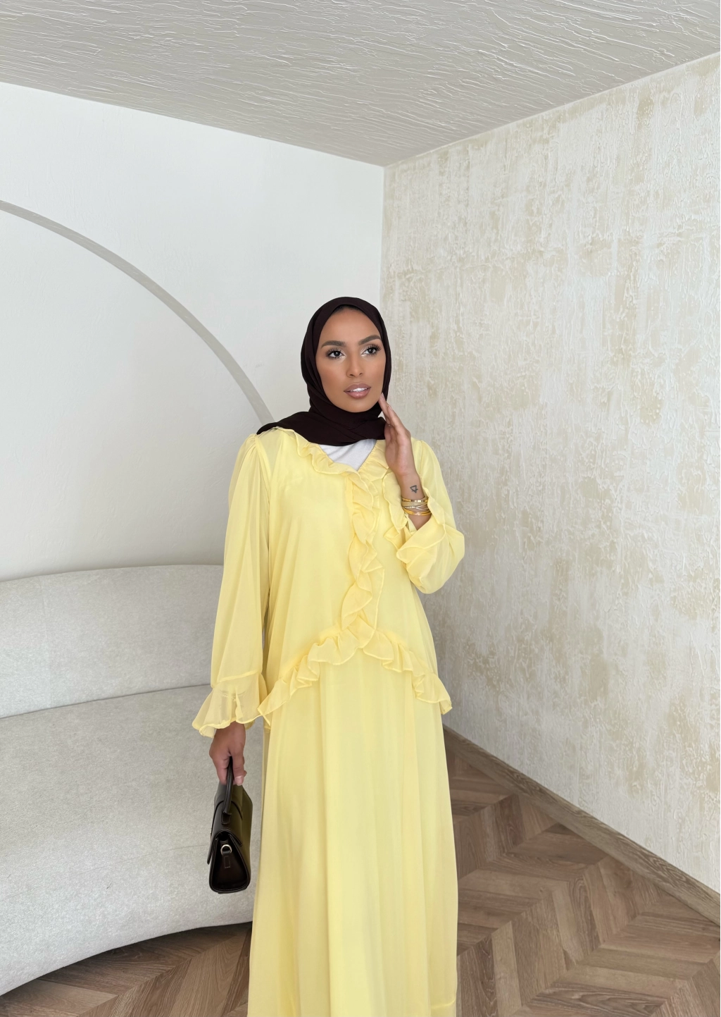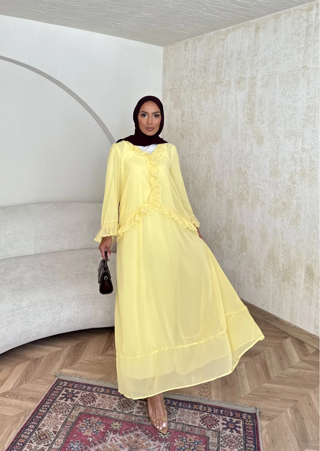 Meslen Şifon Elbise - Sarı
