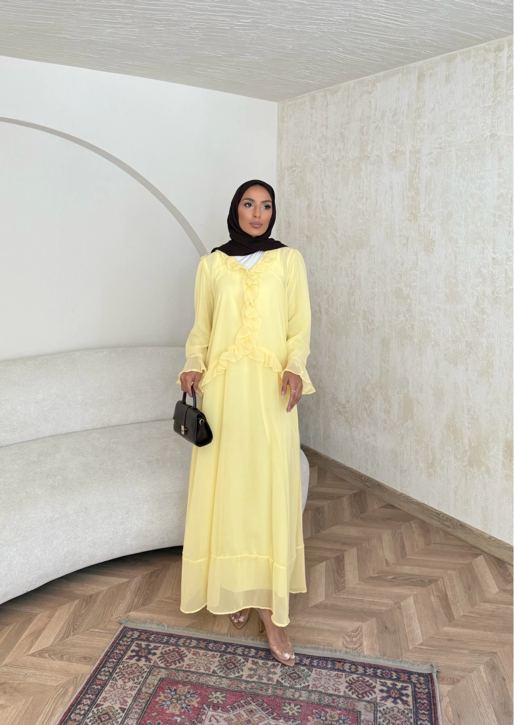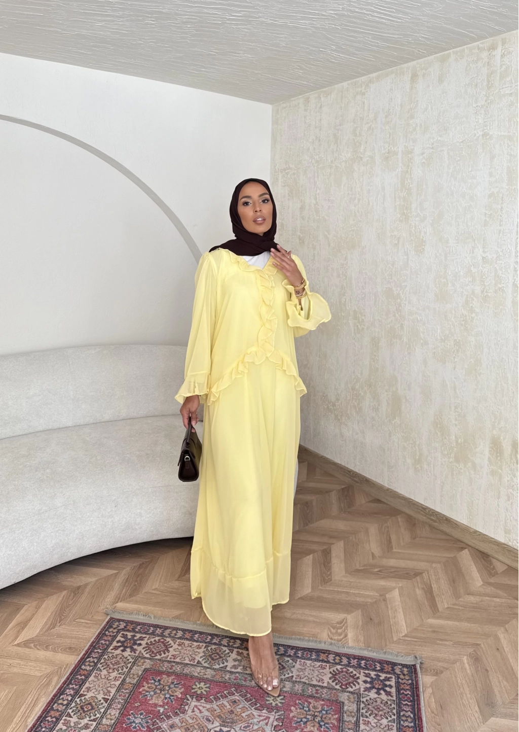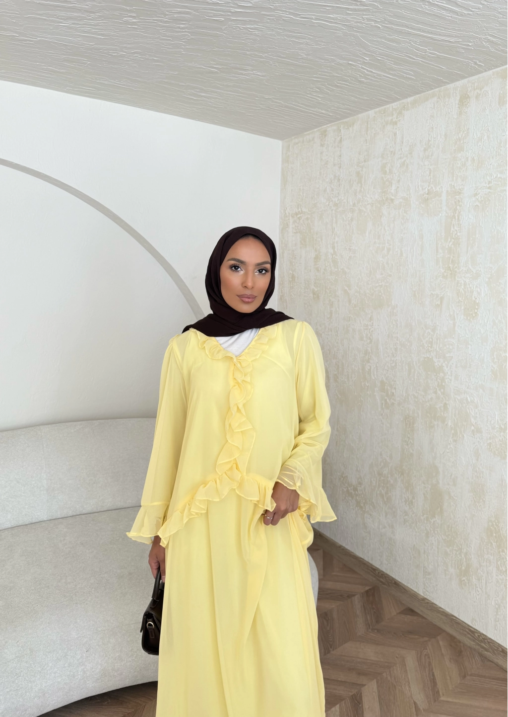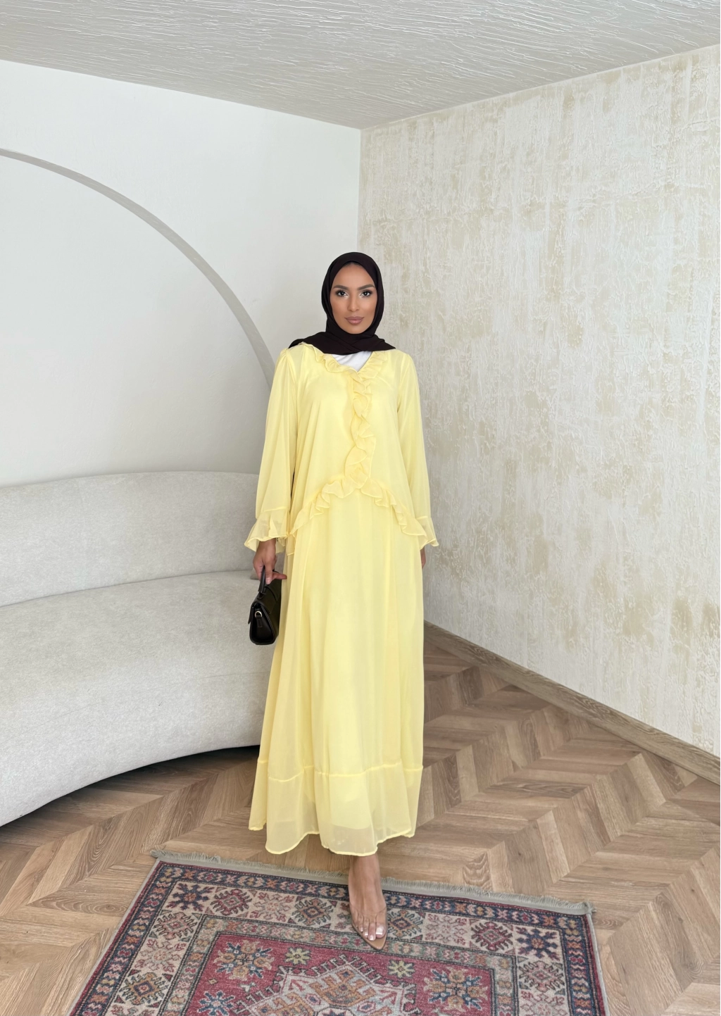 Meslen Şifon Elbise - Sarı