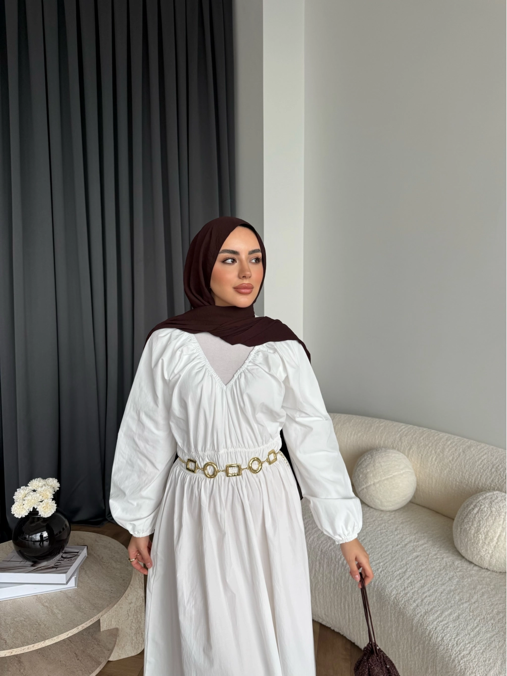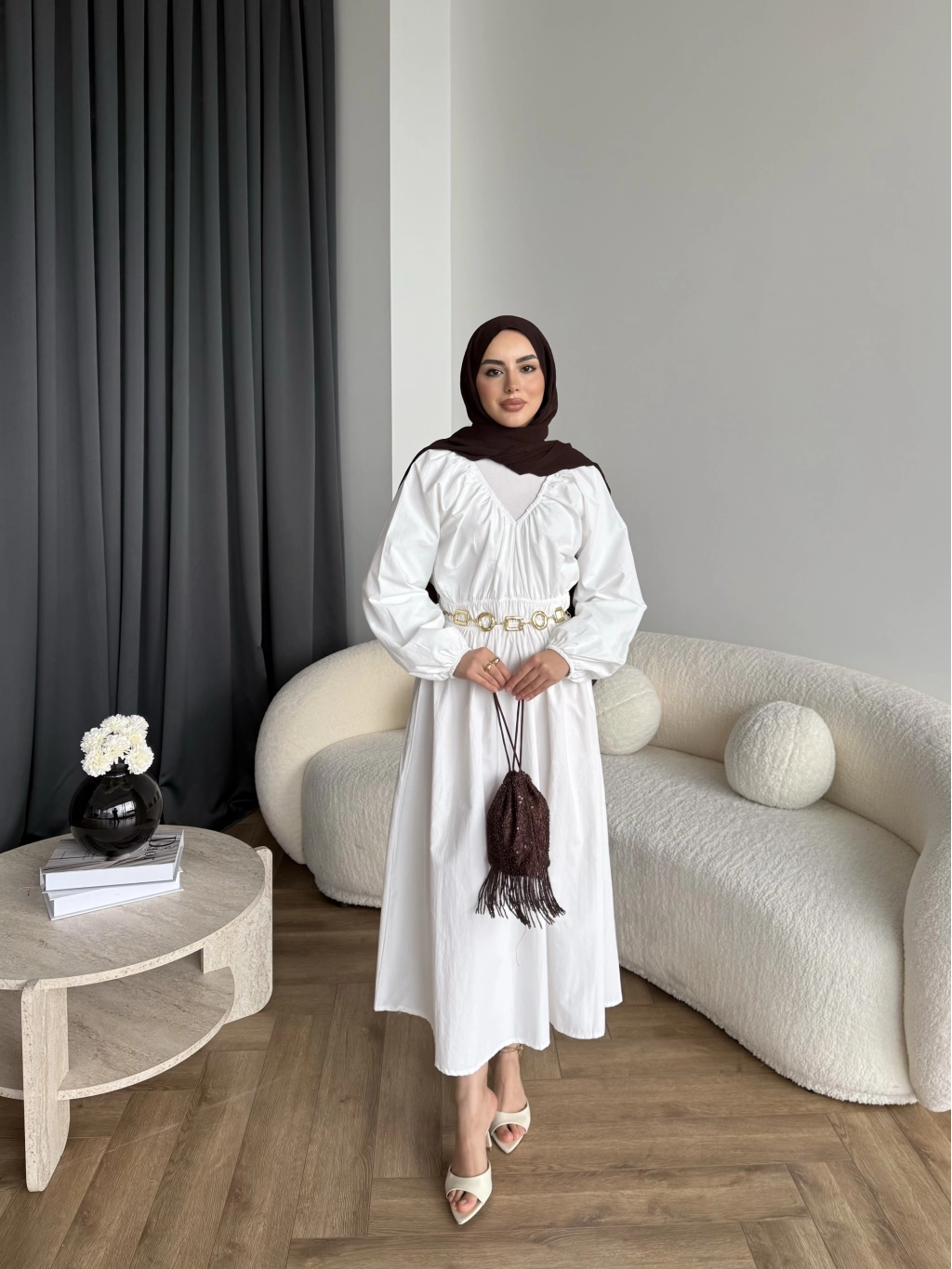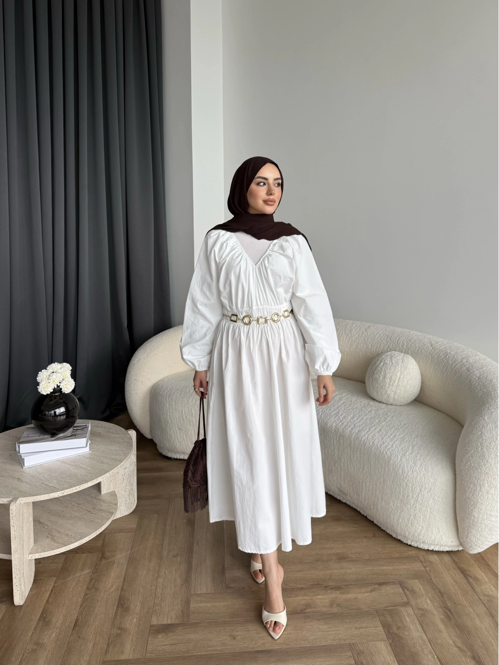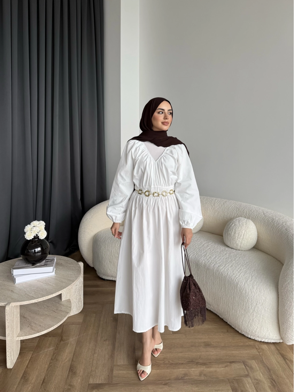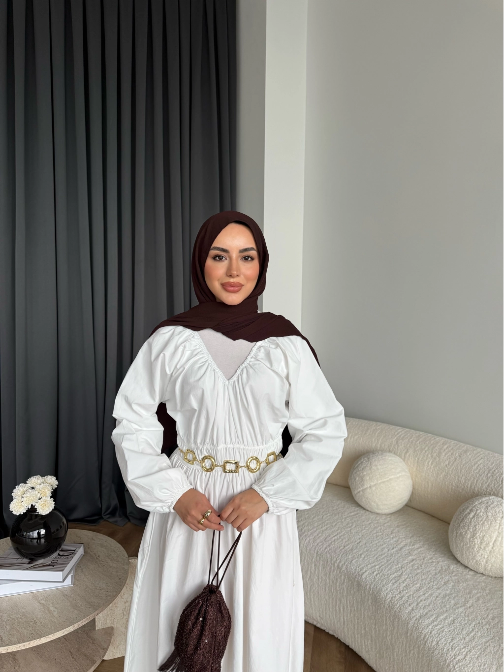 Hen - Luzy Şifon Elbise - Kahve