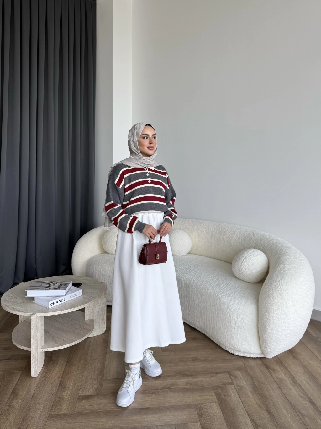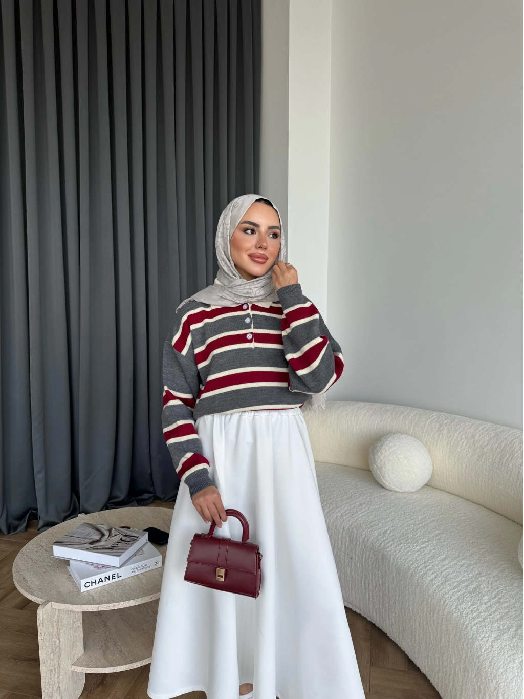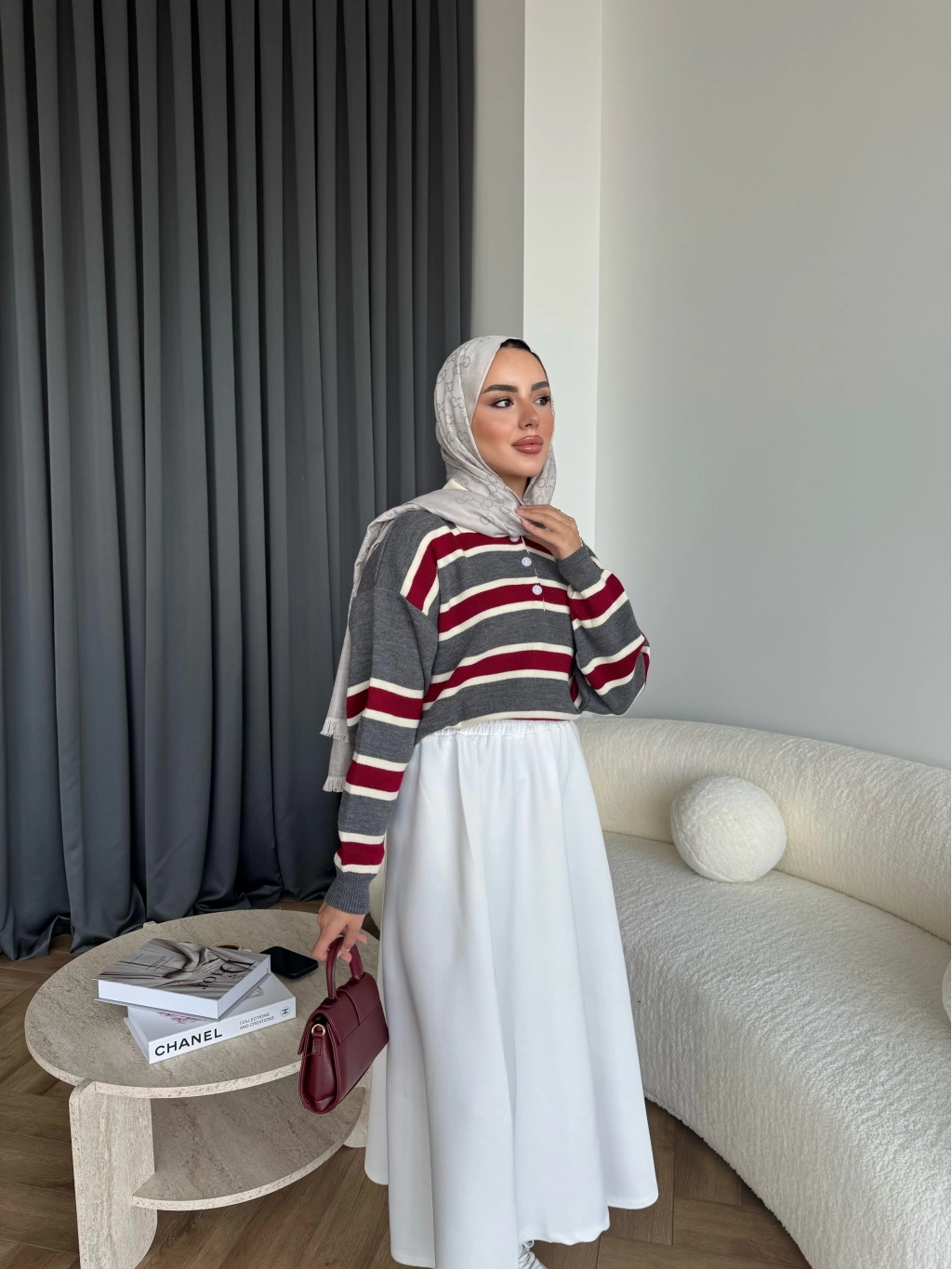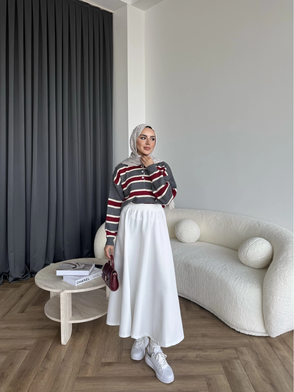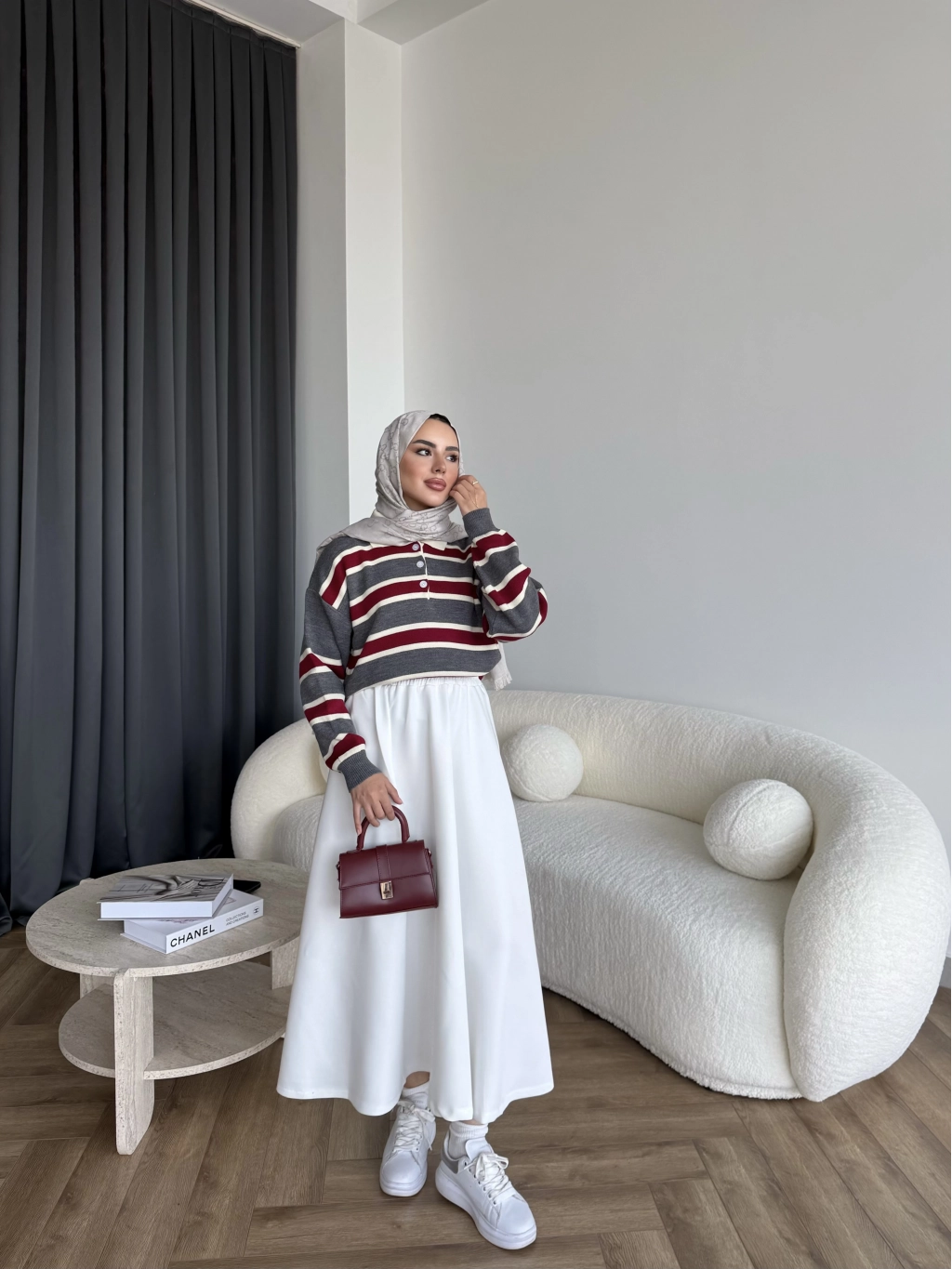 Duq - Gofre Çizgili Takım - Bordo