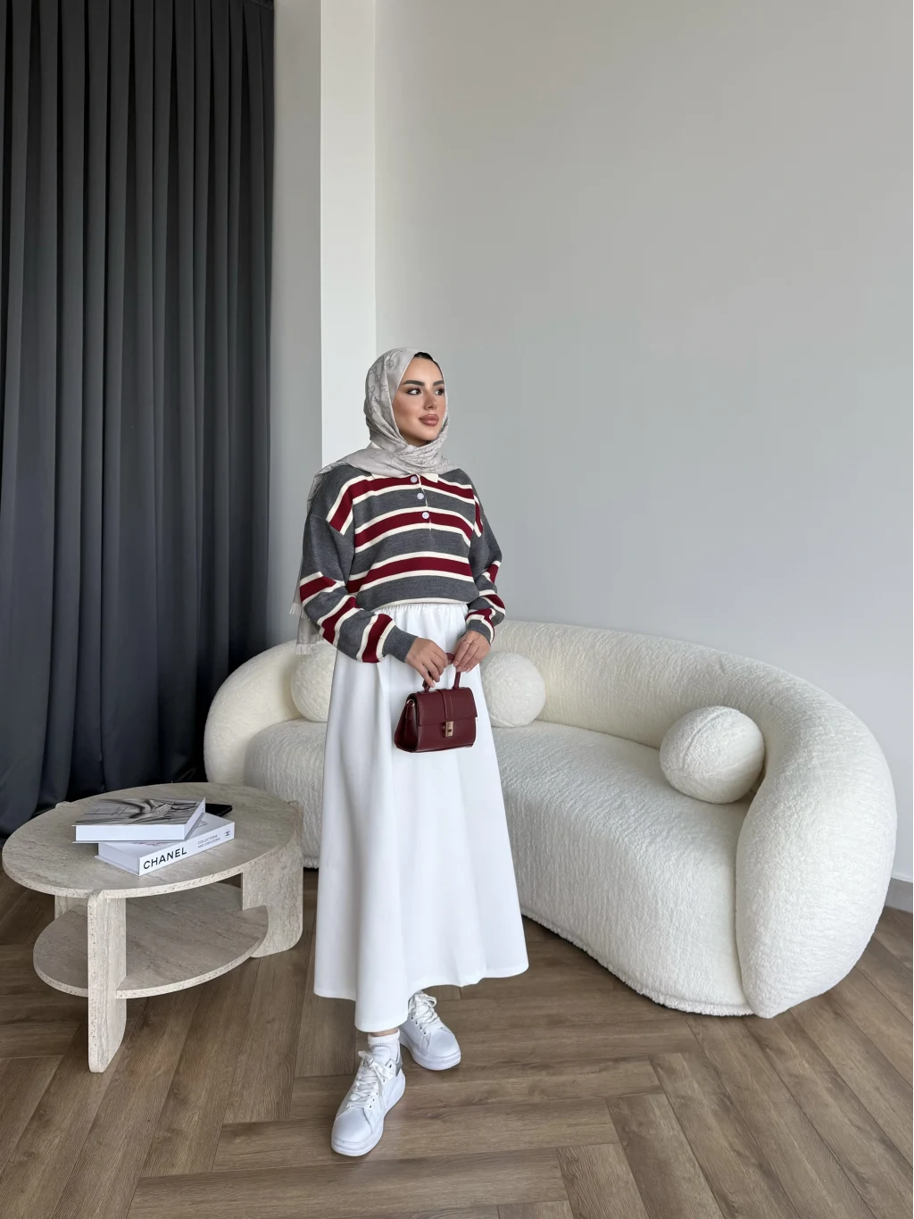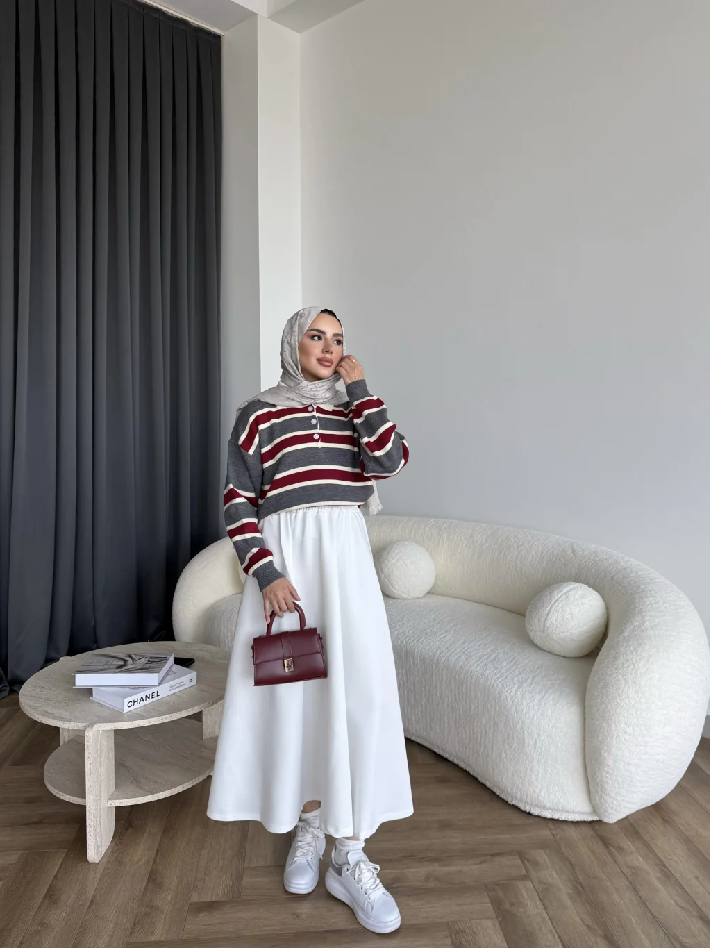 Mirlan Çizgi Detaylı Triko Kazak - Gri