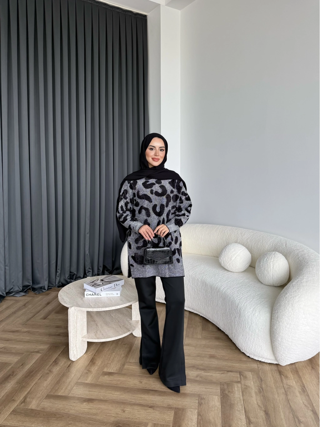 Miya Desenli Kazak - Siyah