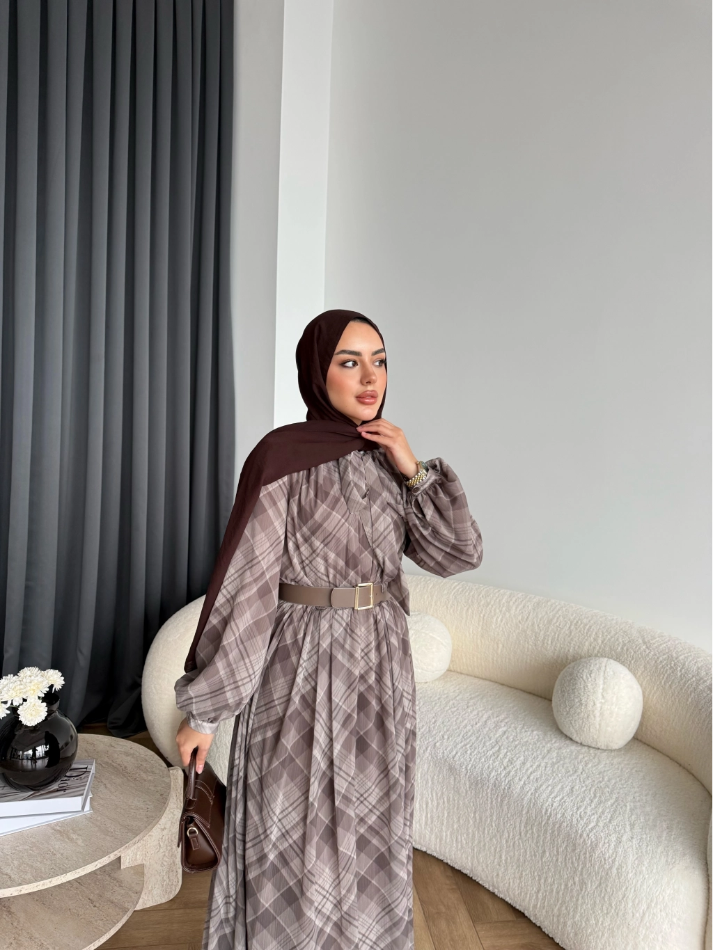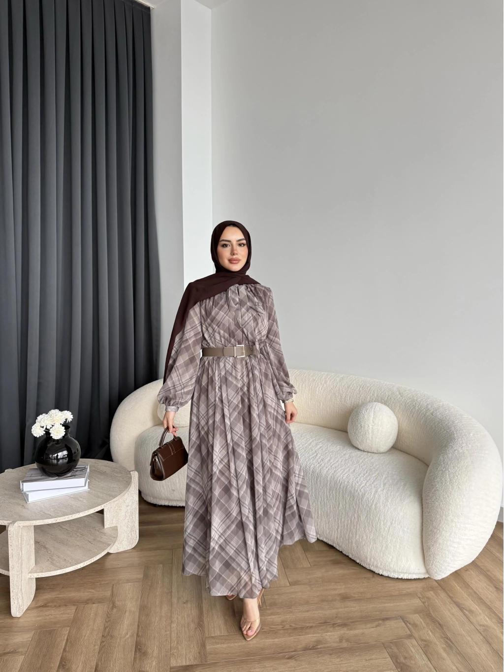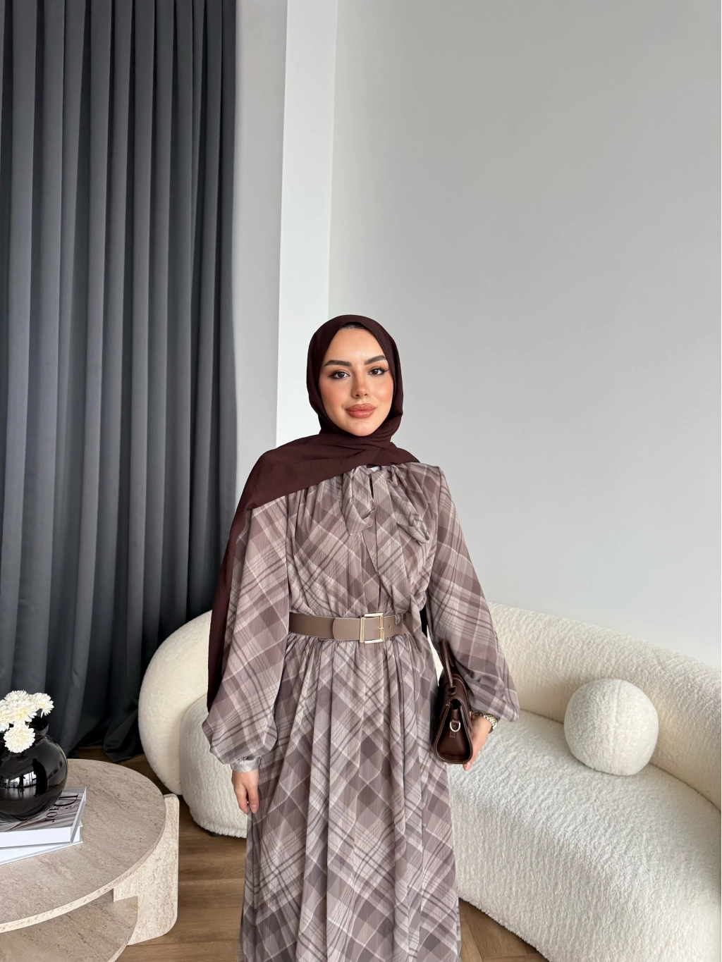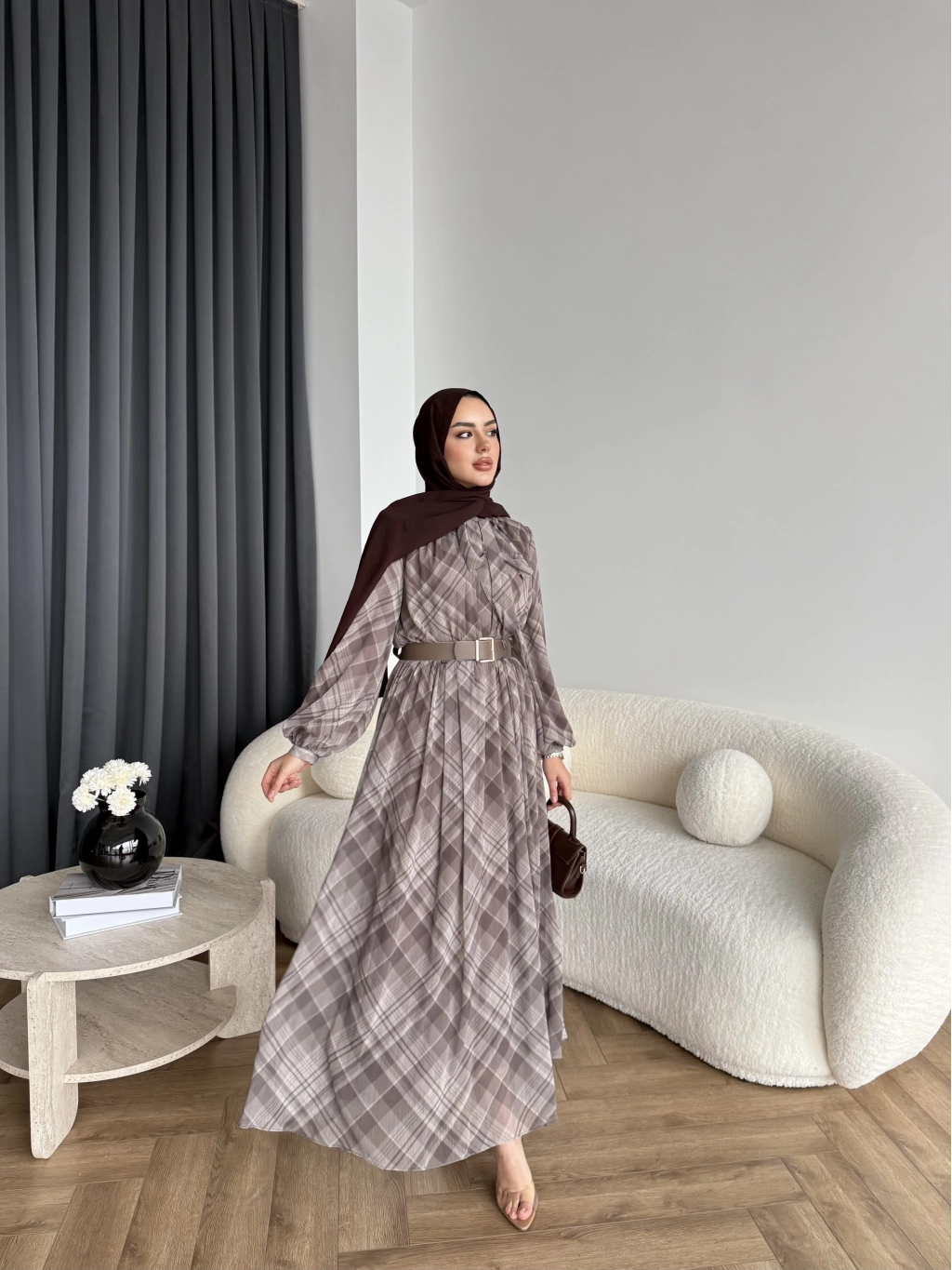 Hen - Luzy Şifon Elbise - Kahve