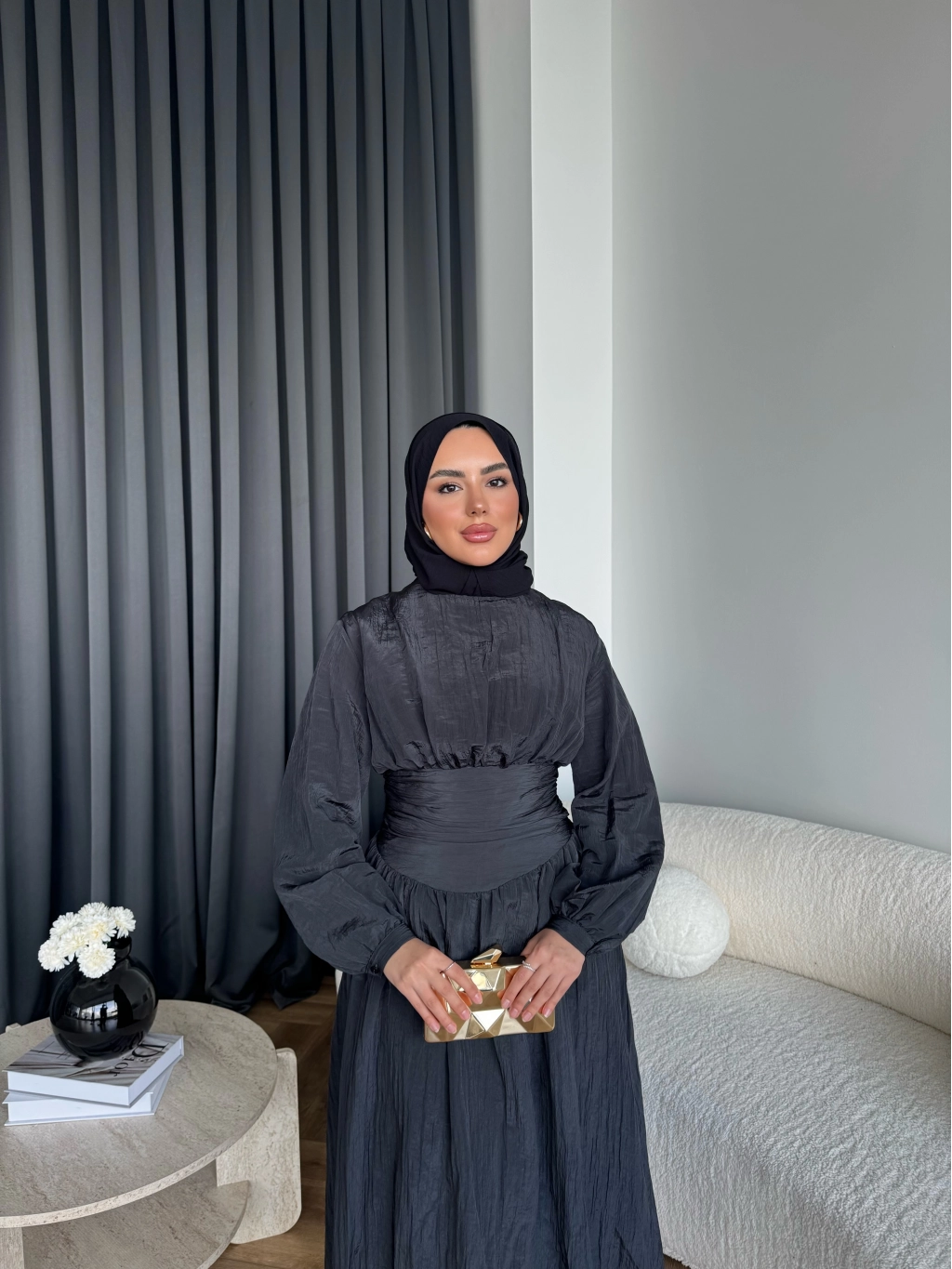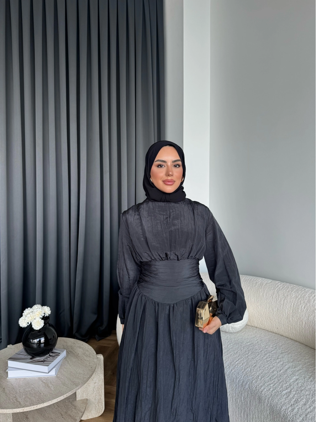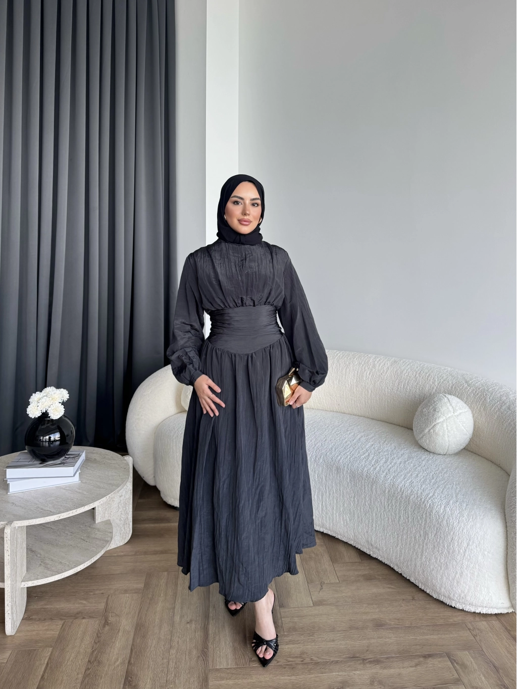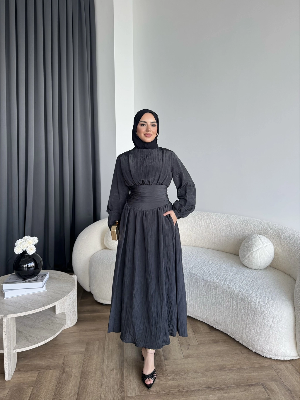 Moi - Özden Bel Detay Elbise - Siyah - ÖN SİPARİŞTİR