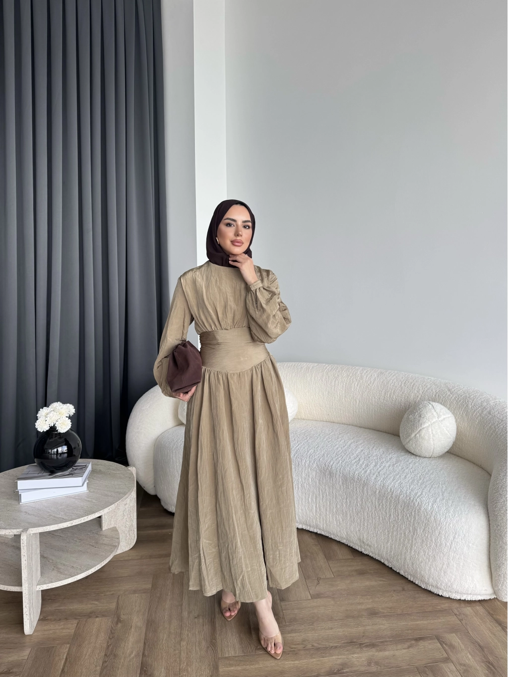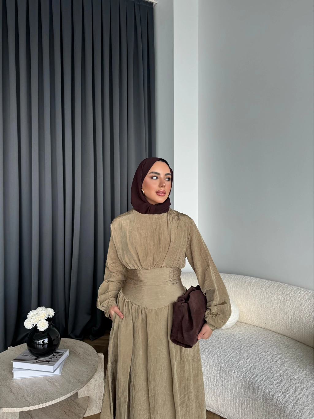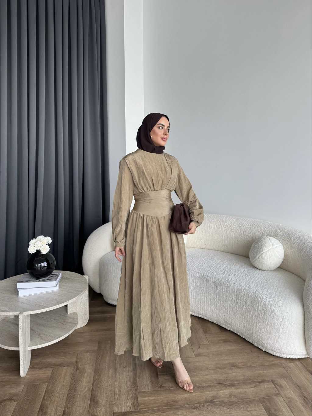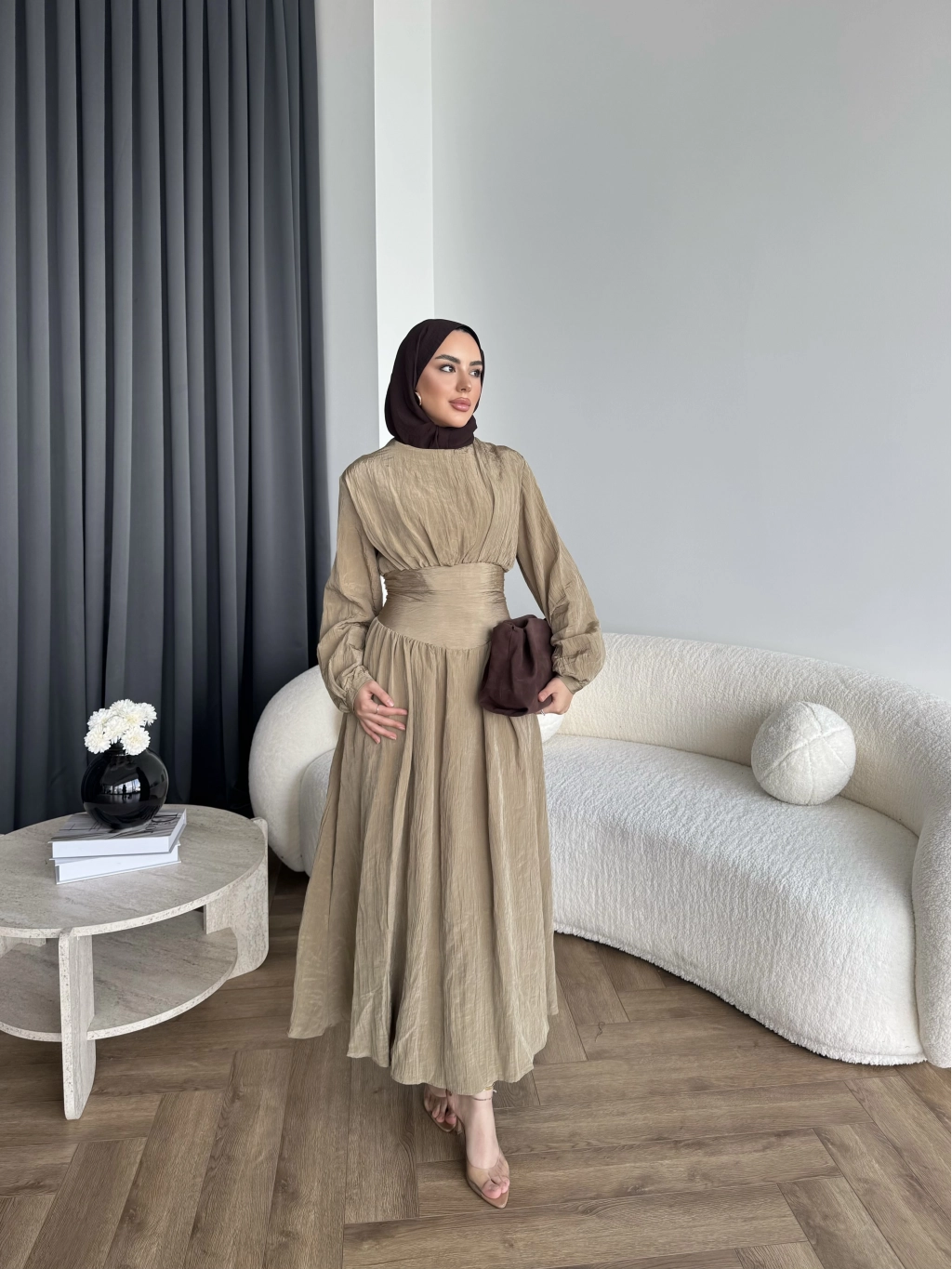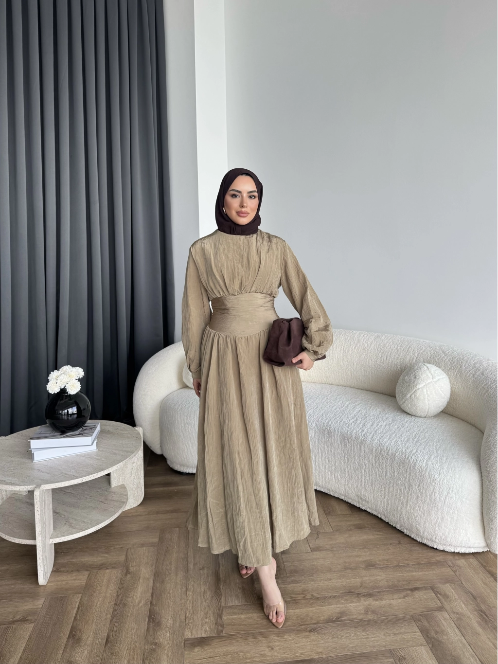 Tb - Dosha Fırfır Detay Elbise - Kahve