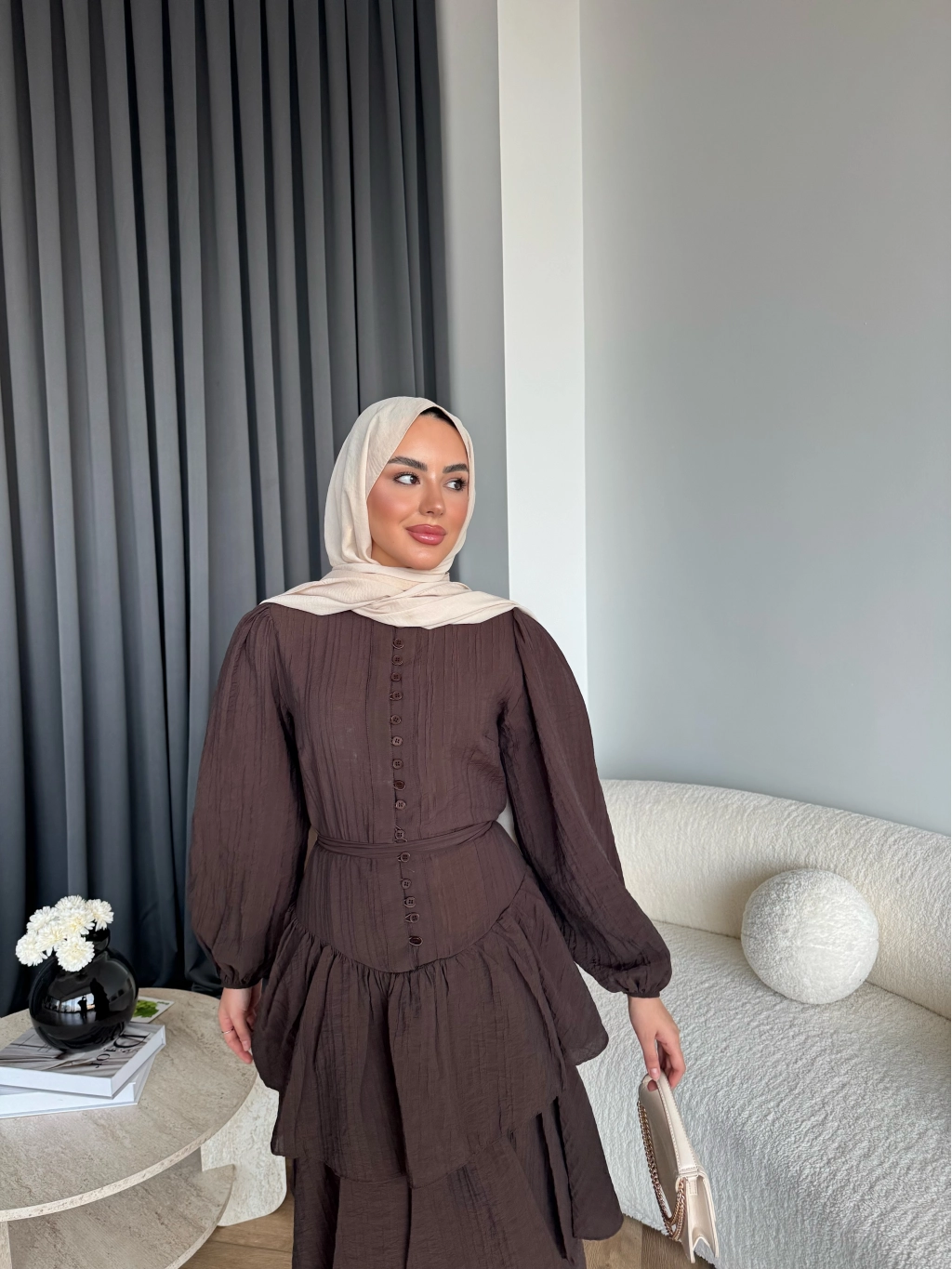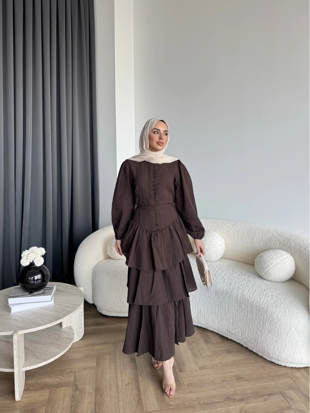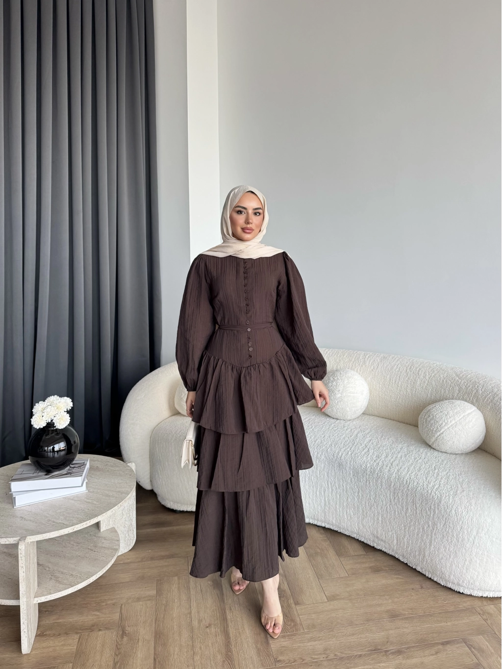 Moi - Selin Kat Kat Elbise - Acı Kahve